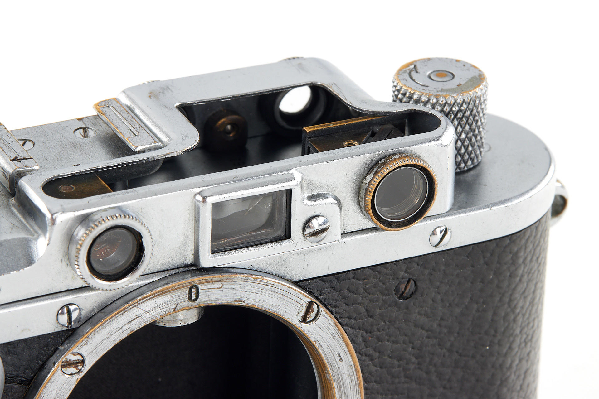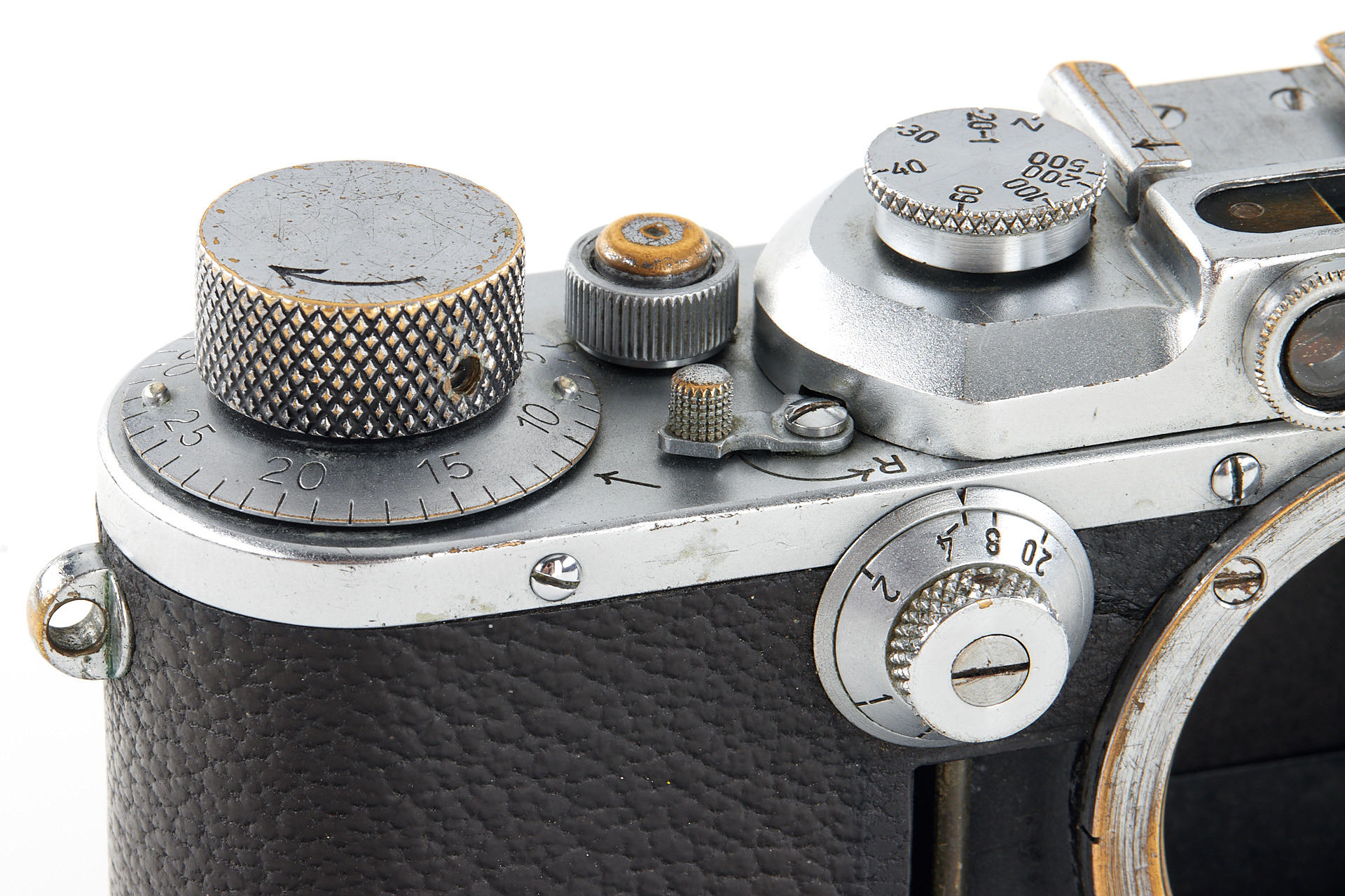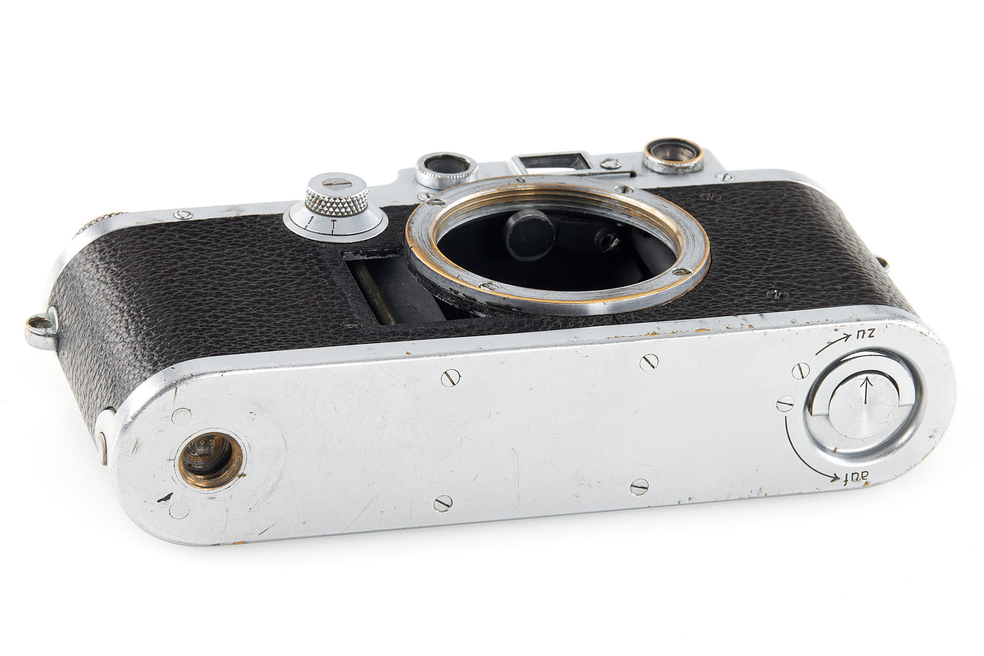 A very rare, original Leica III cut-away model, engraved on the top plate (inside of the rangefinder bay) with number '299', in very good condition and working order, an article in Vidom no.5 reveals an interesting history of this rare camera - the cut-aways have been once covered by the previous owner, to be able to use the camera for actual photography, it is now reversed to its original condition