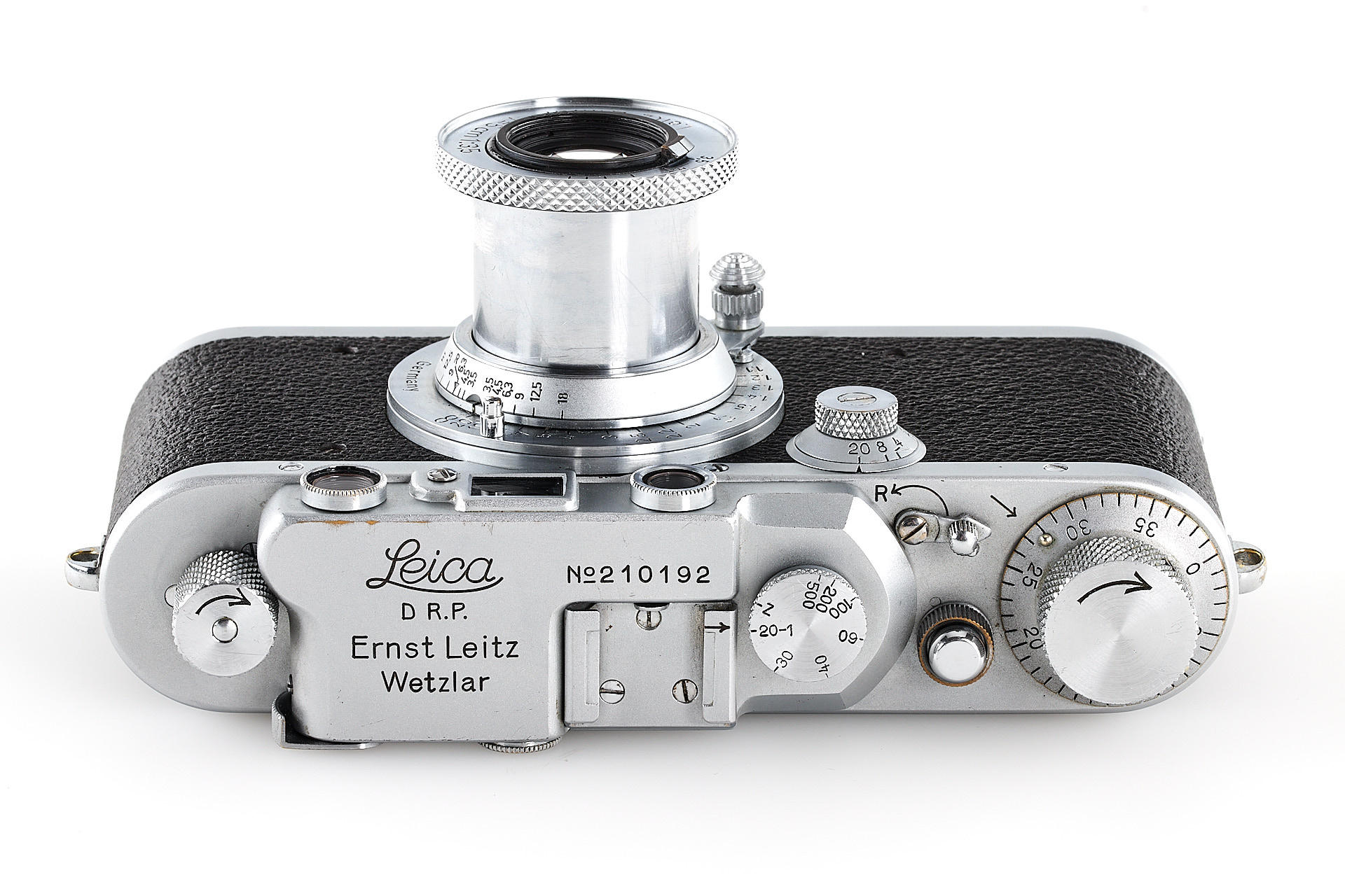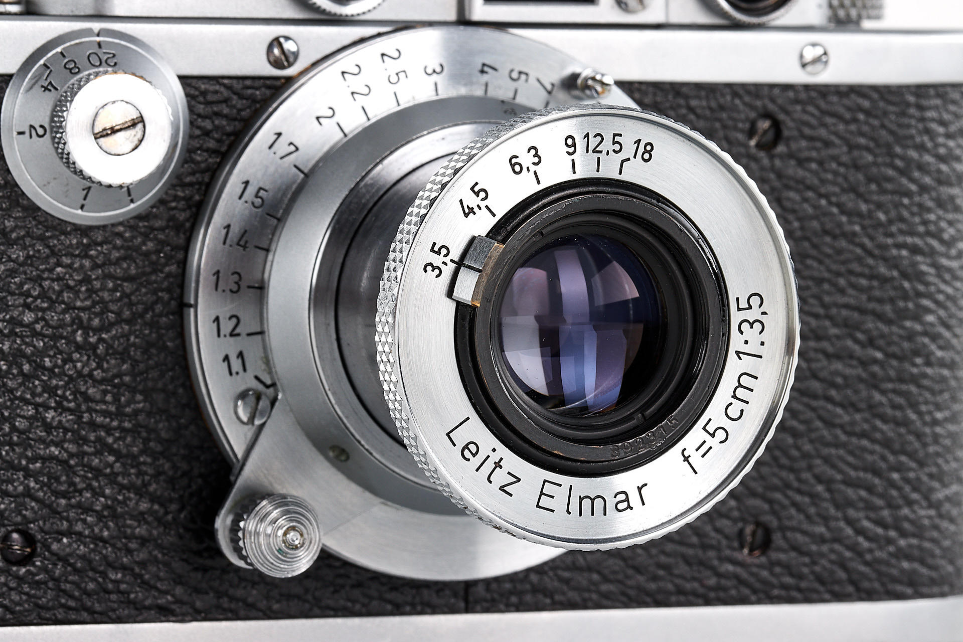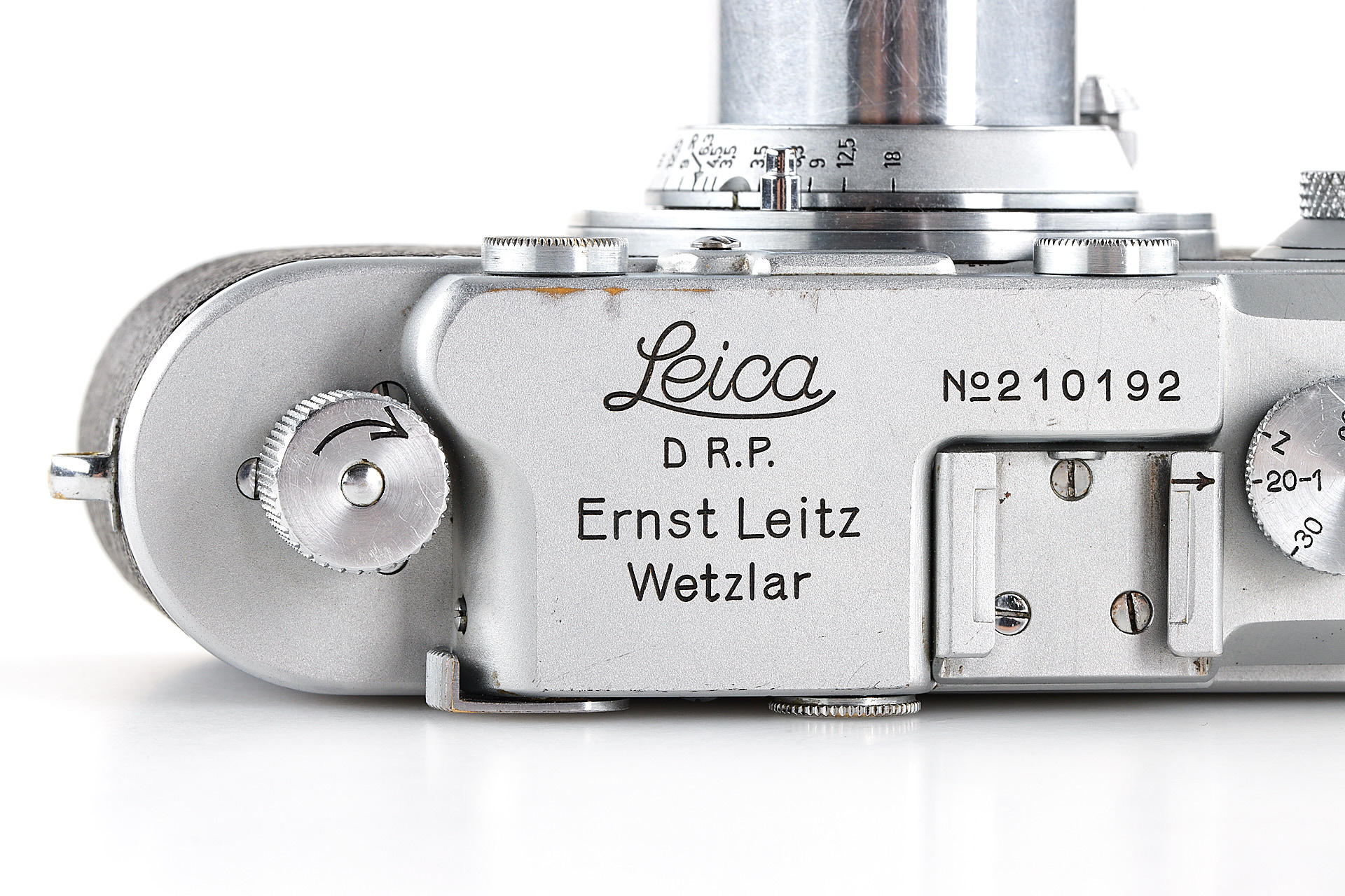 a chrome Leica III in excellent condition, missing one dot in the 'D.R.P.' engraving, with coated Elmar 3.5/5cm no.392315 (very good optics), cap