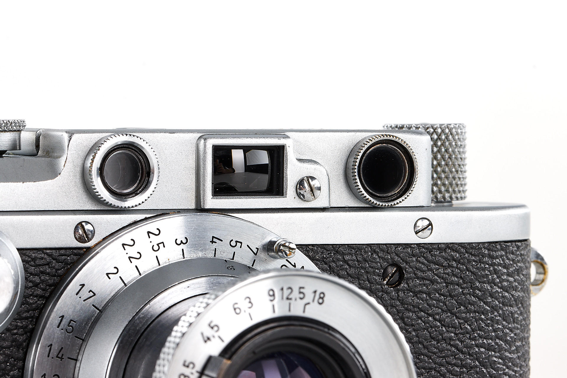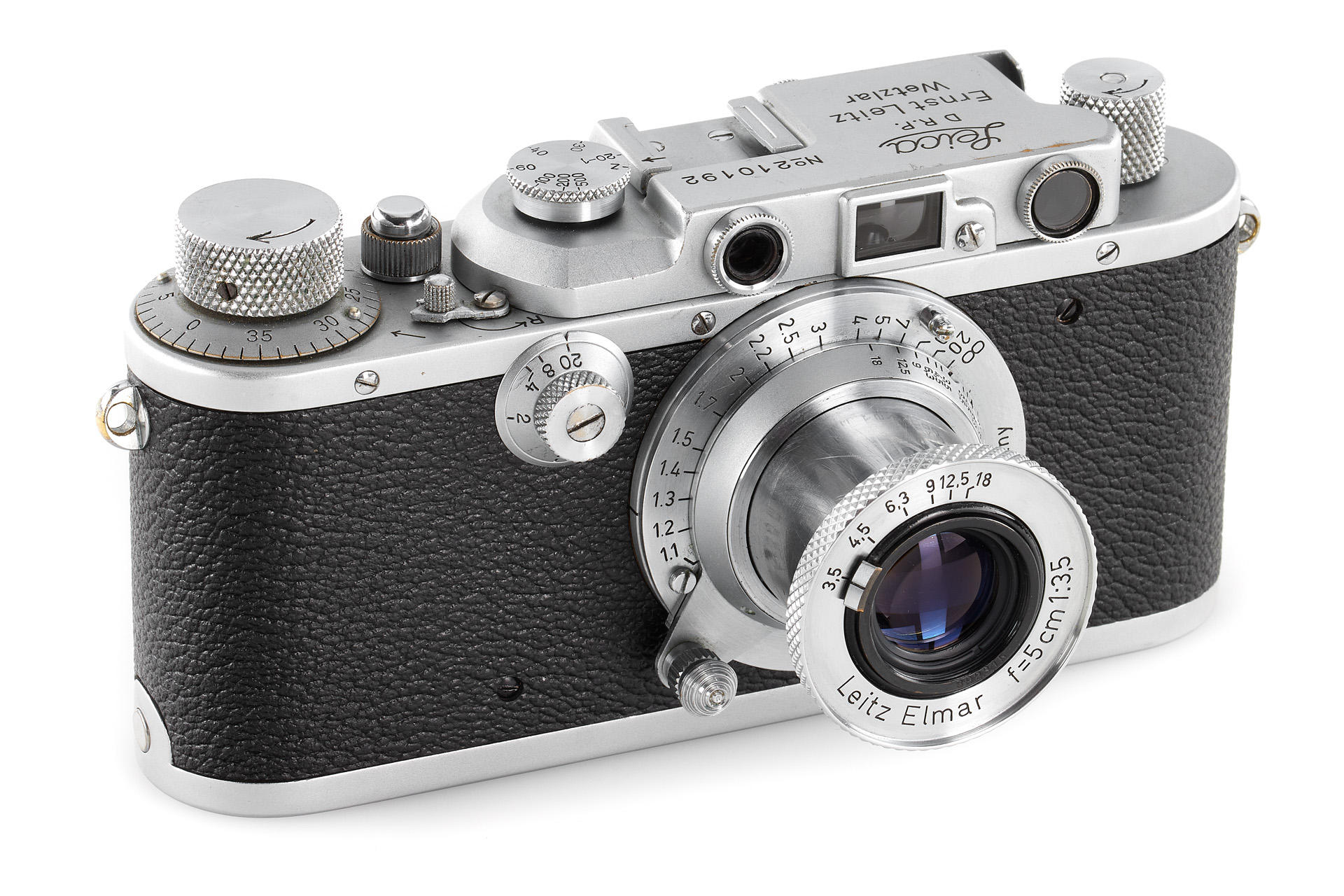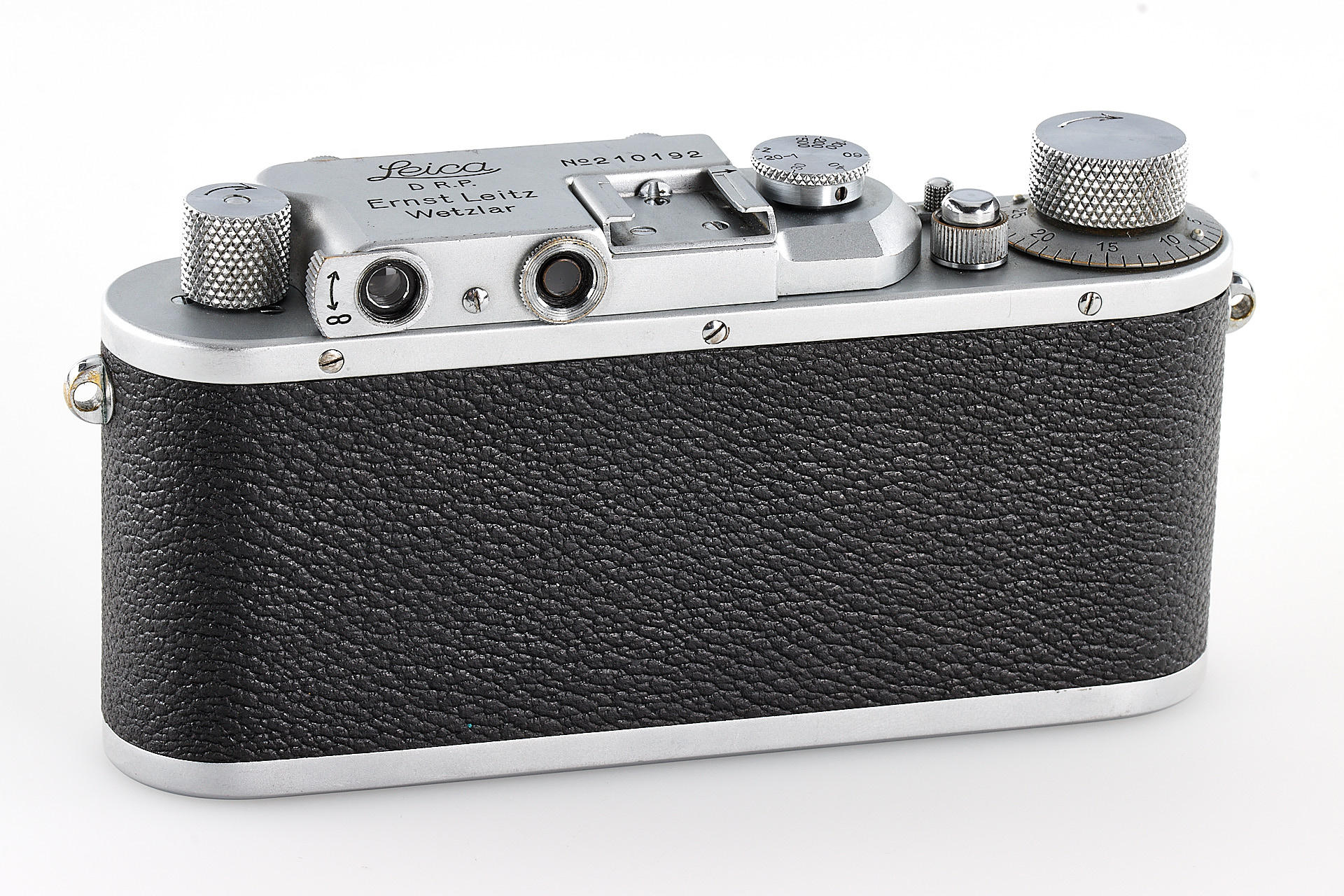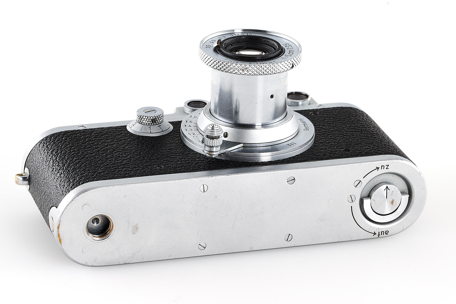 a chrome Leica III in excellent condition, missing one dot in the 'D.R.P.' engraving, with coated Elmar 3.5/5cm no.392315 (very good optics), cap