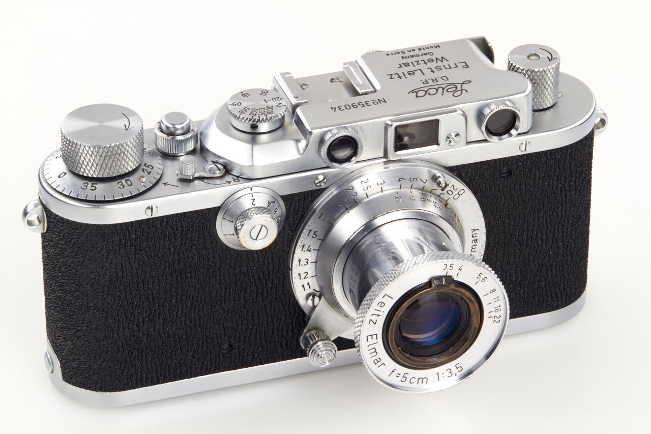 near mint, rare and 100% original camera with sharkskin covering in perfect working condition with matching Elmar 3.5/5cm no.743369, cap - this is one of the best examples of this special camera we have seen so far!