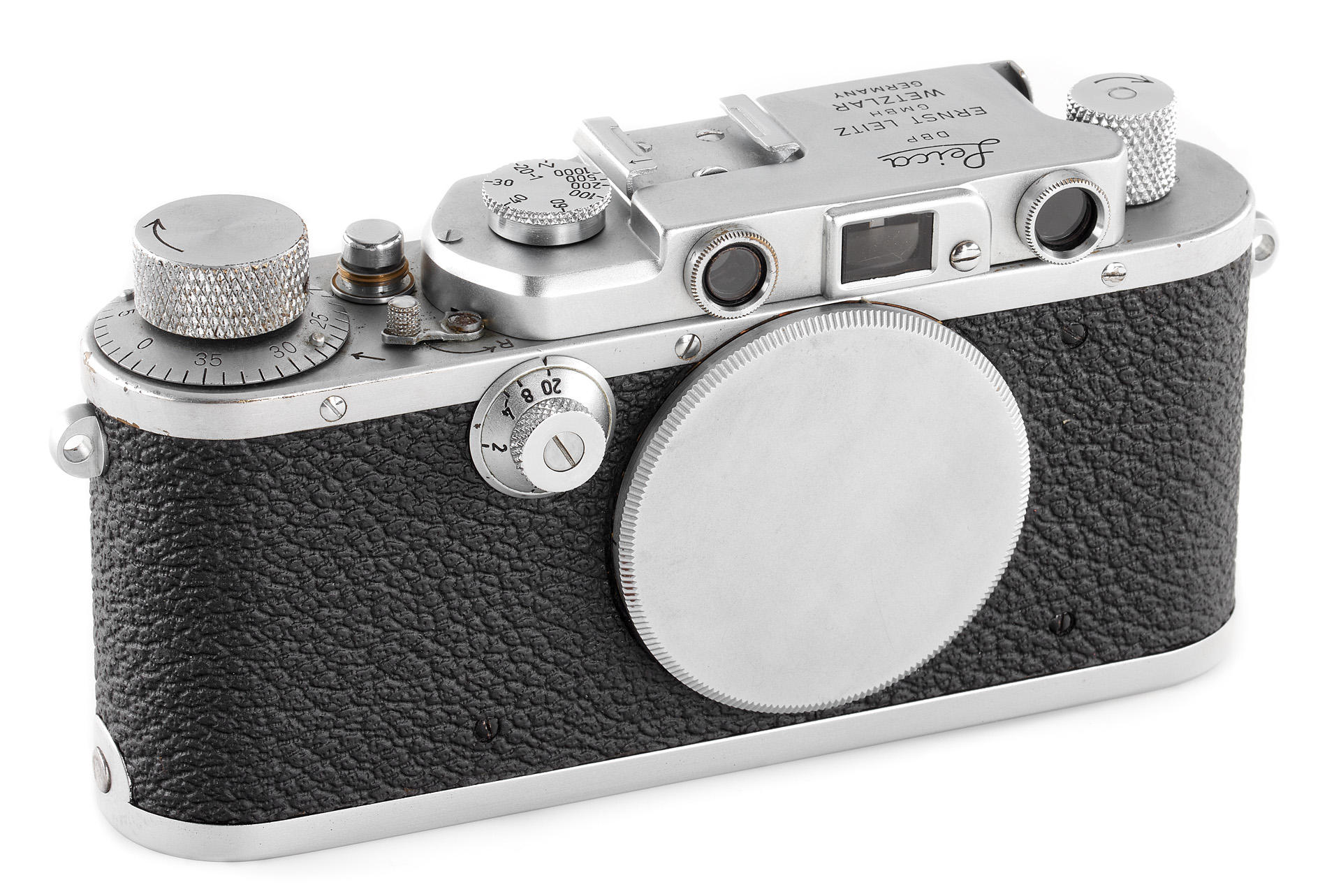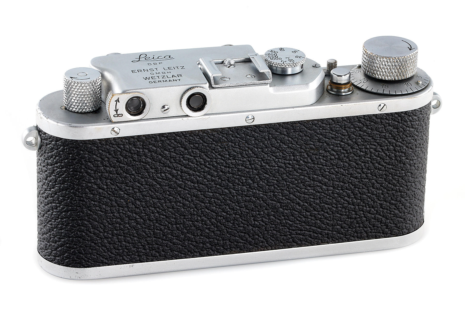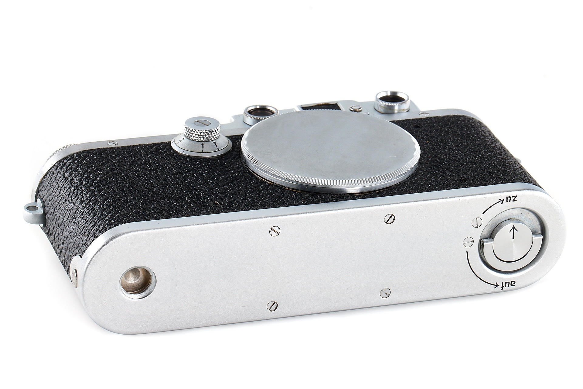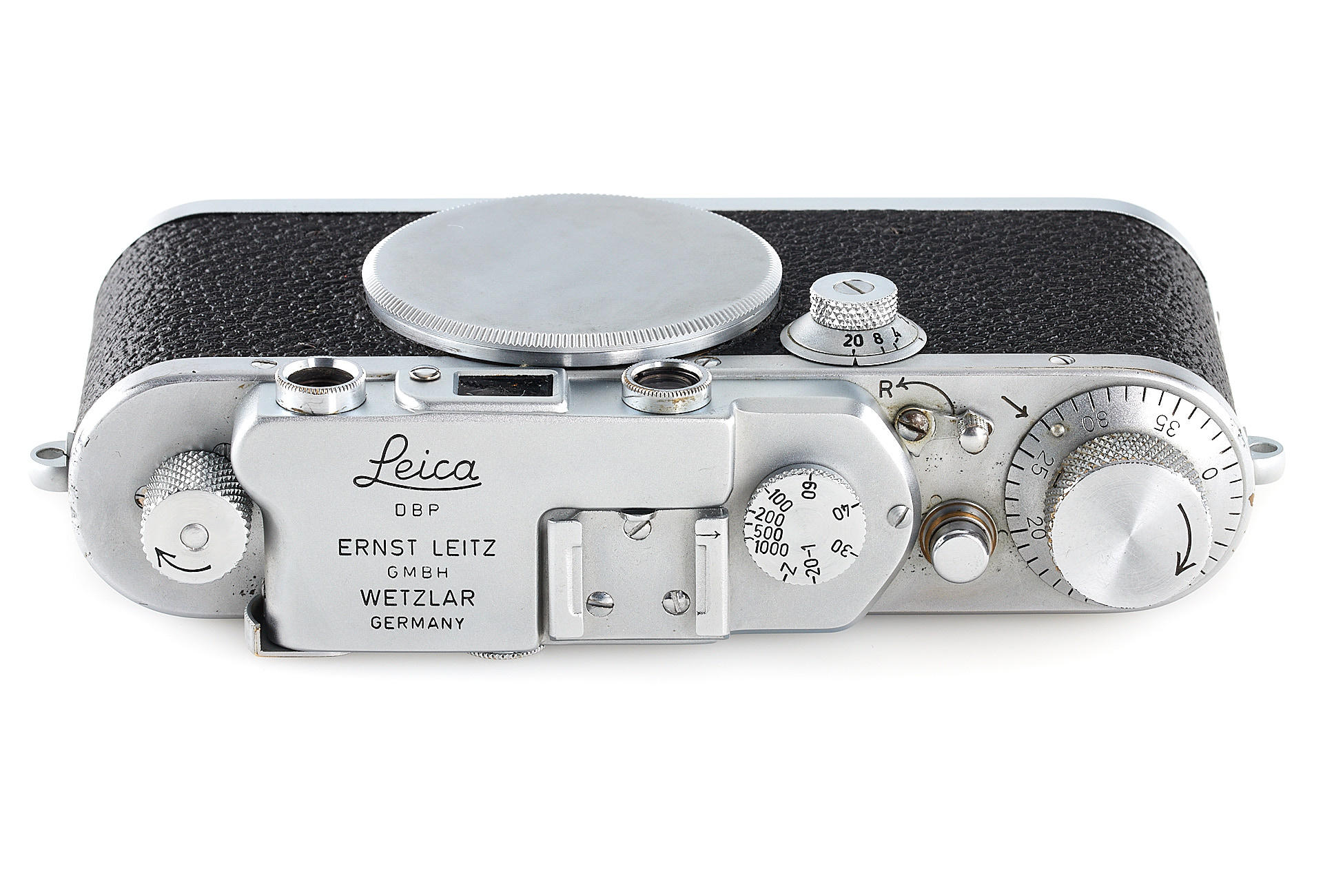 very interesting body which has been repaired with a spare top plate (unusual type mostly seen on later sync. versions) without the serial number engraving, which is still visible on the chassis underneath, in near mint condition with light dents above the strap lugs, in very good working order, with body cap