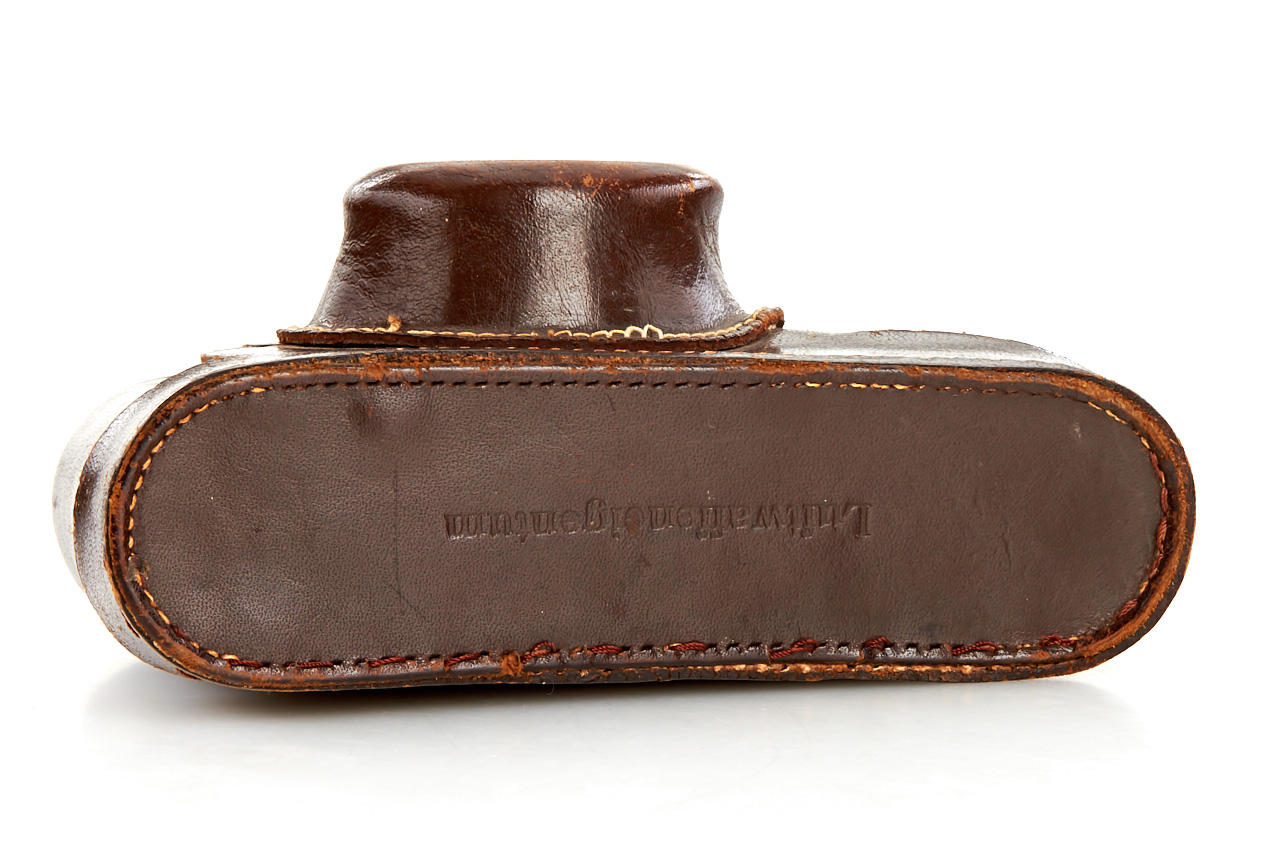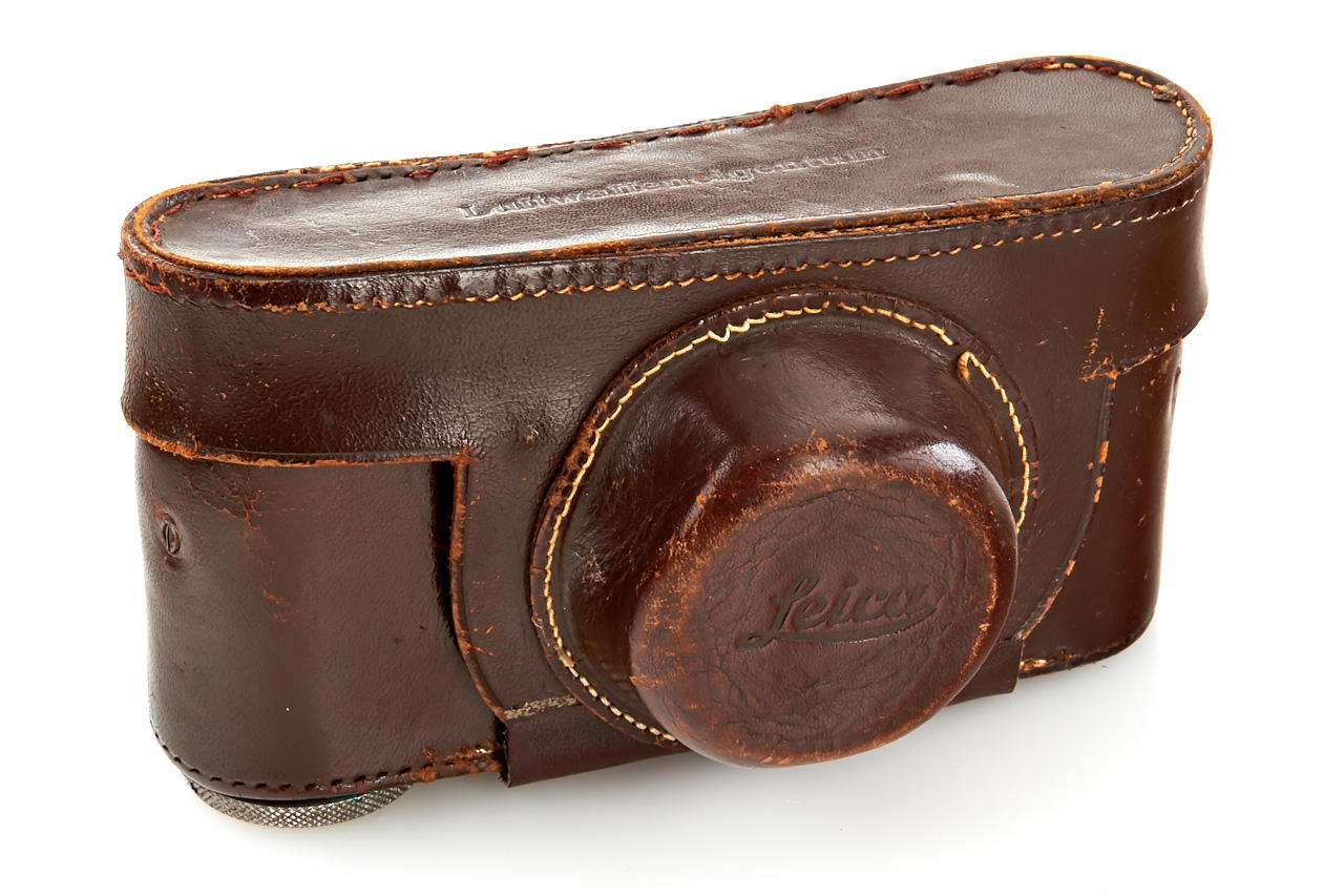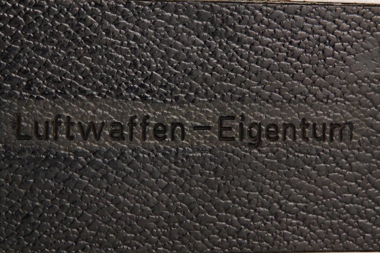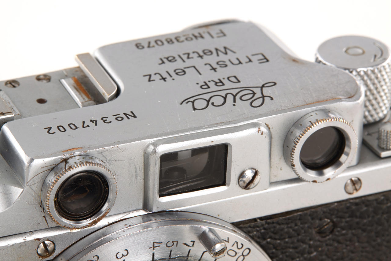 IIIb for German Air Force, top plate engraved 'FL No.38079', 'Luftwaffen-Eigentum' stamped on vulcanite, with Elmar 3.5/5cm no.533687 (cap), camera delivered as LEYOO to Luftwaffe BLN Berlin on February 26th, 1940 (delivery number 7989), with brown everready case 'Luftwaffeneigentum' - IIIb military cameras are much more rare than IIIc cameras