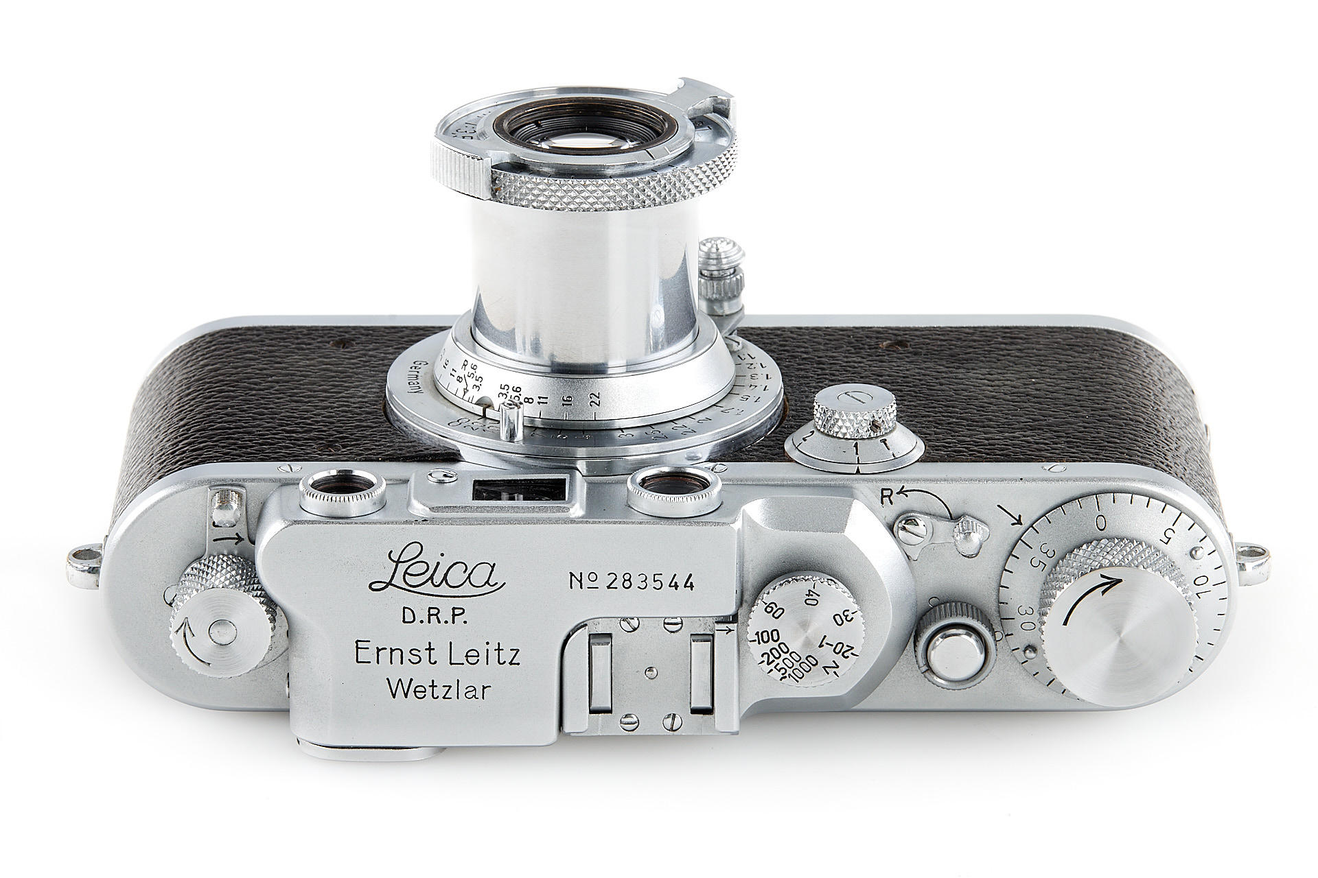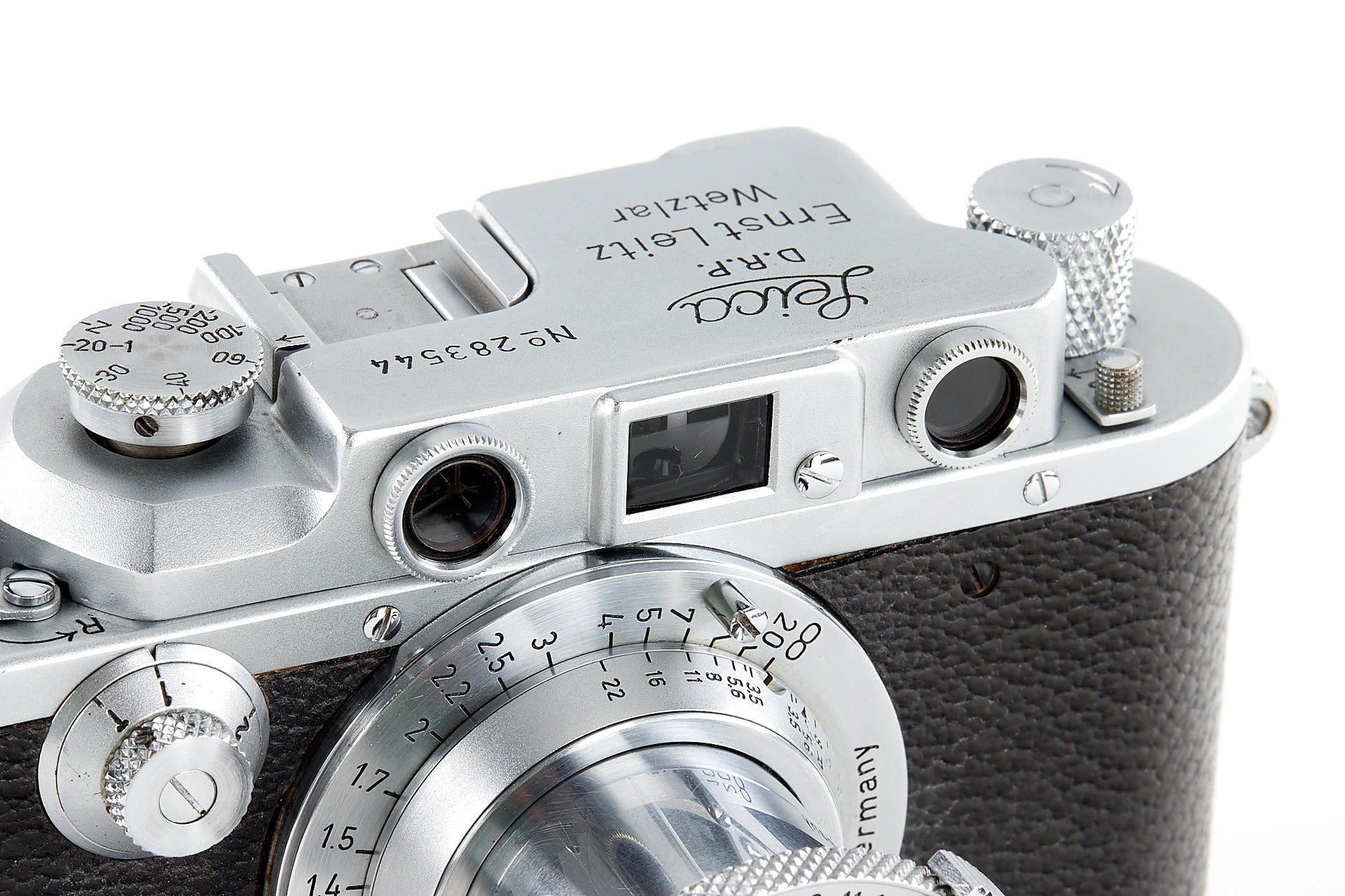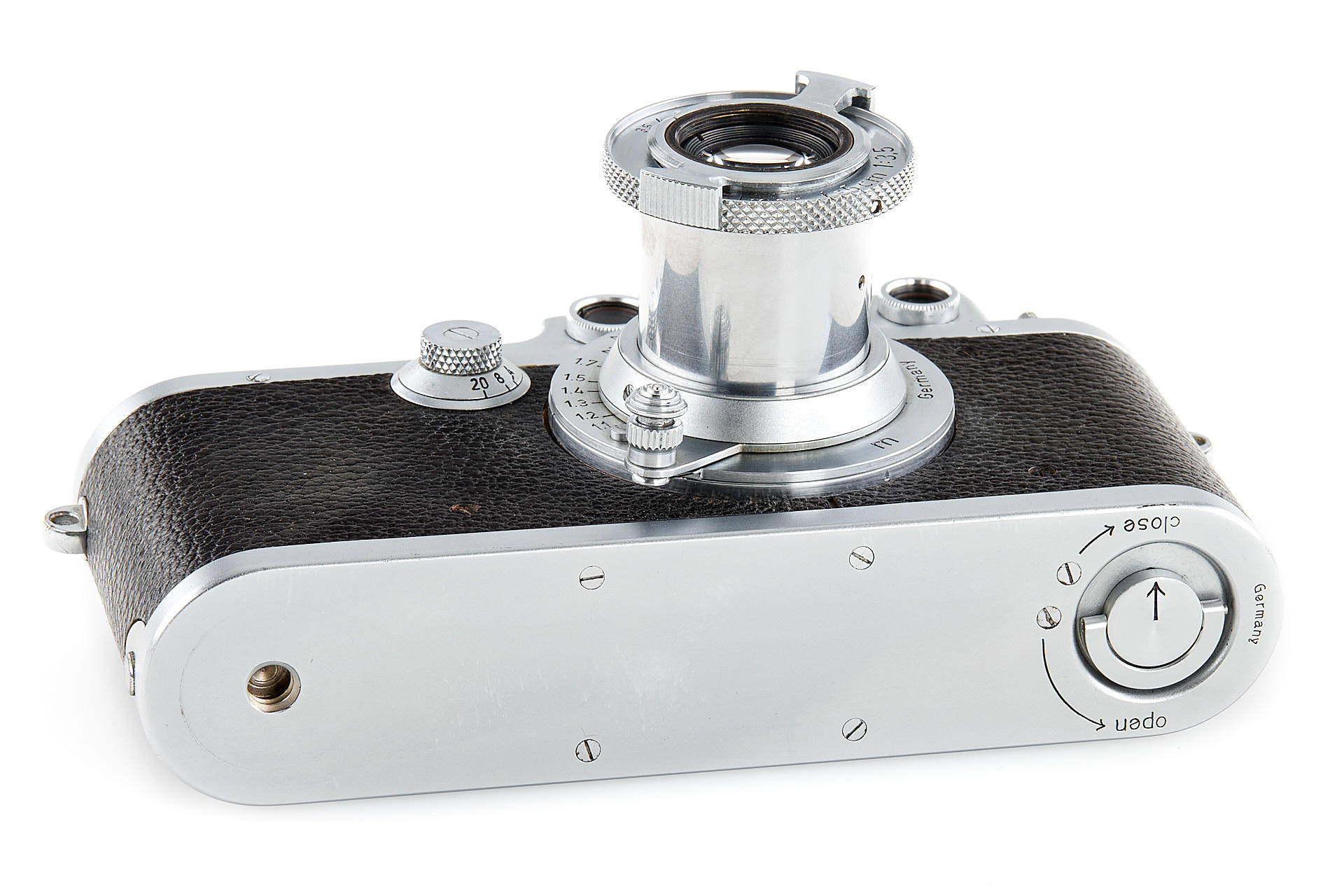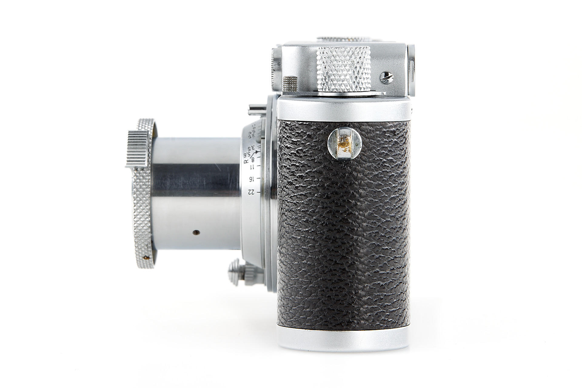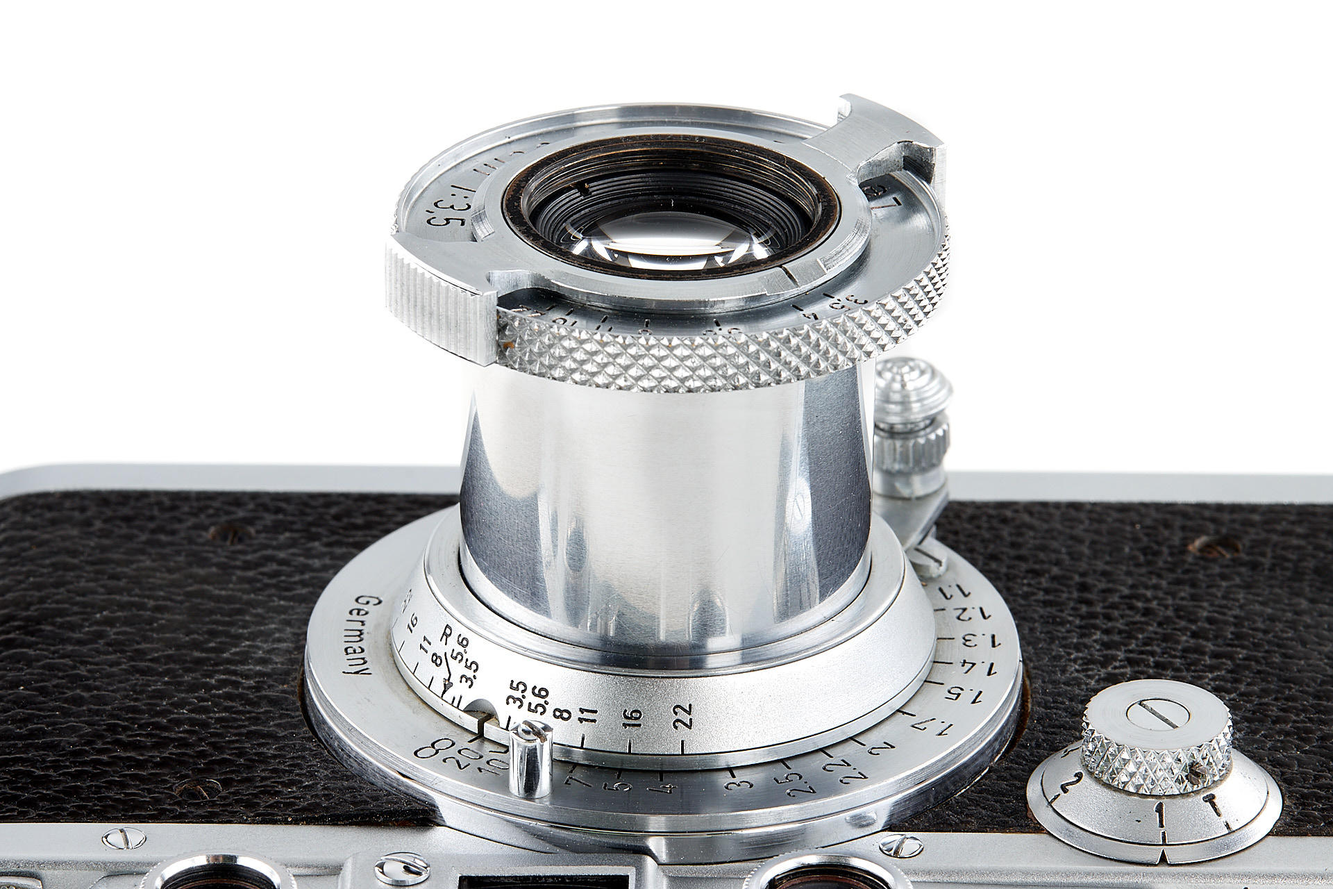 a beautiful, near-mint Leica IIIb body with unique Elmar 3.5/5cm prototype lens no.987933 equipped with special aperture control, we've included a similar prototype in our last auction no.37