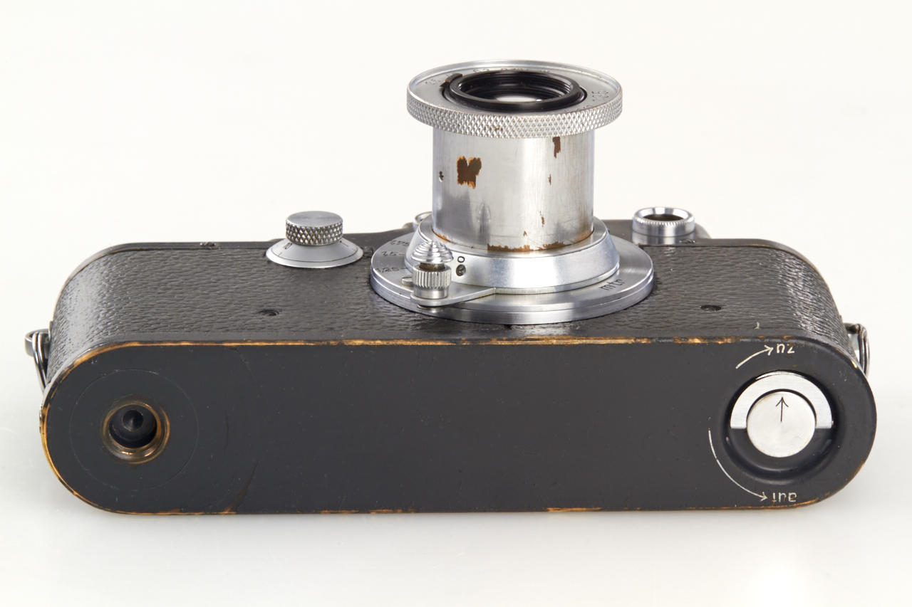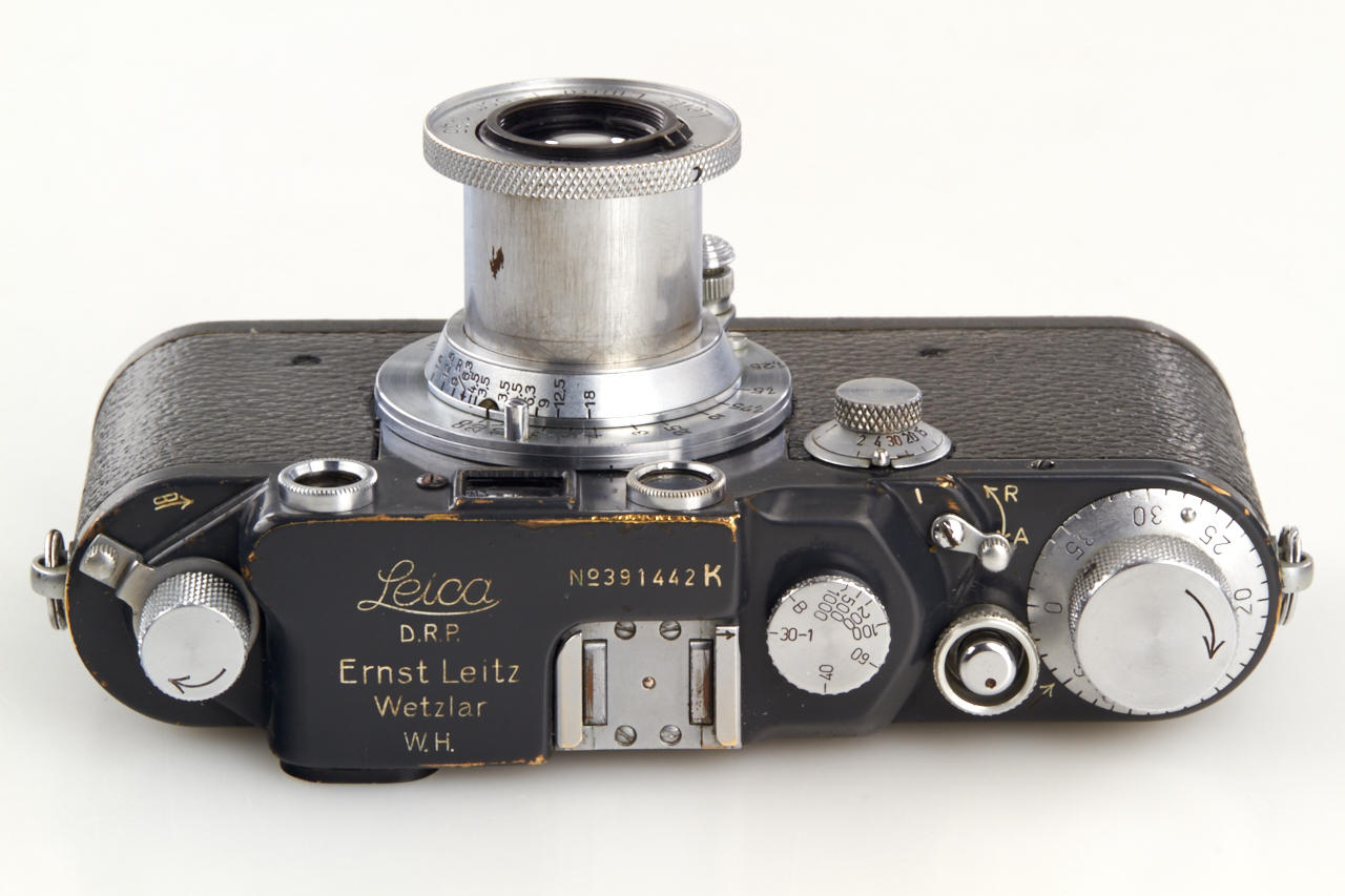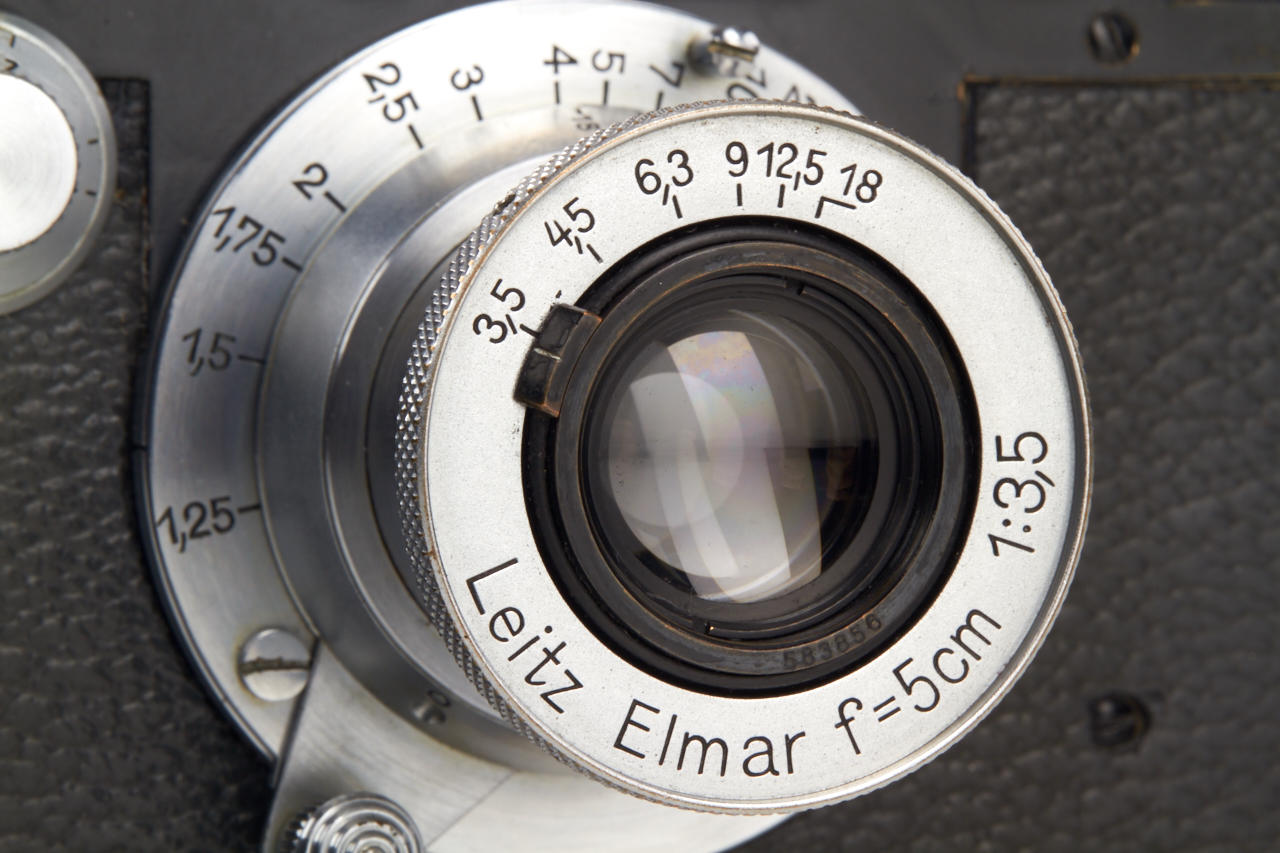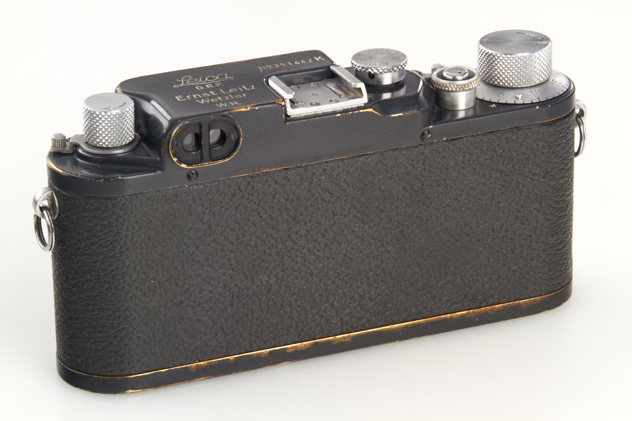 original 'Wehrmacht Heer' camera with grey leather covering, in very good original and working condition (original paint, perfect vulcanite, special fiducial film points inside removed), matching Elmar 3.5/5cm no.583856 (not engraved W.H.), both camera and lens were delivered on July 7th, 1943 to WH Berlin (Bln), delivery number no.9808