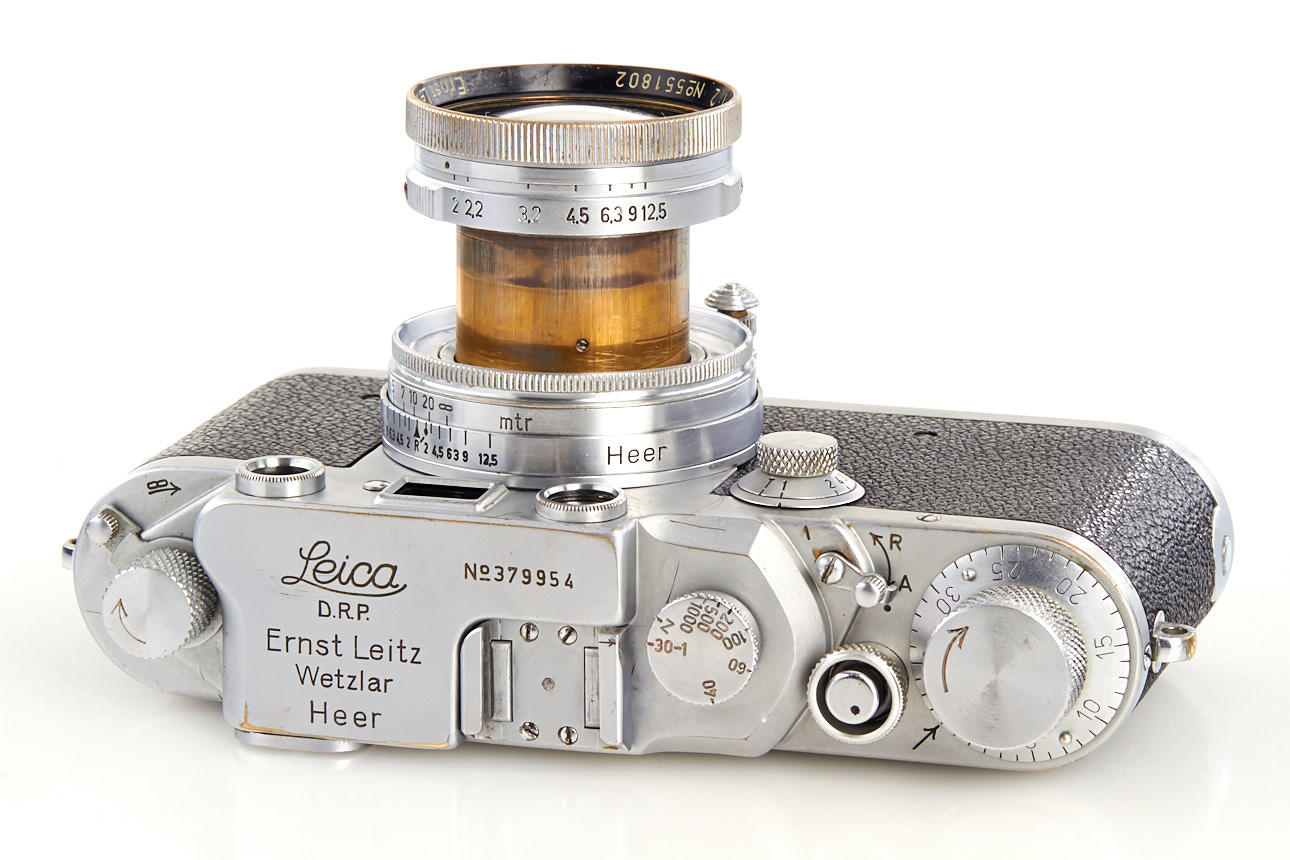 rare 100% original military camera in fine condition engraved 'Heer' on top plate with matching Summitar 2/5cm no.551802 engraved 'Heer' on barrel (cap), matching brown everready case stamped with 'Heer', camera and lens were shipped to Bln. on October 3rd, 1941 with delivery number 25994 !