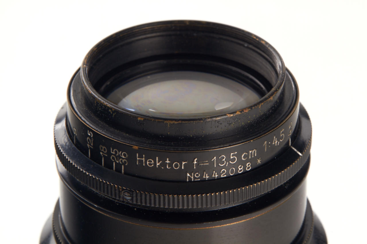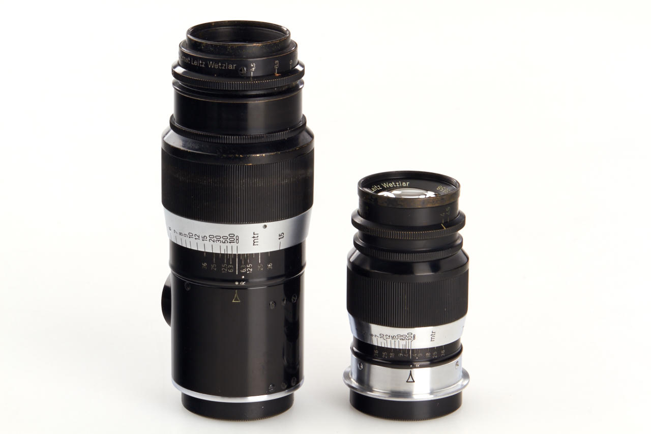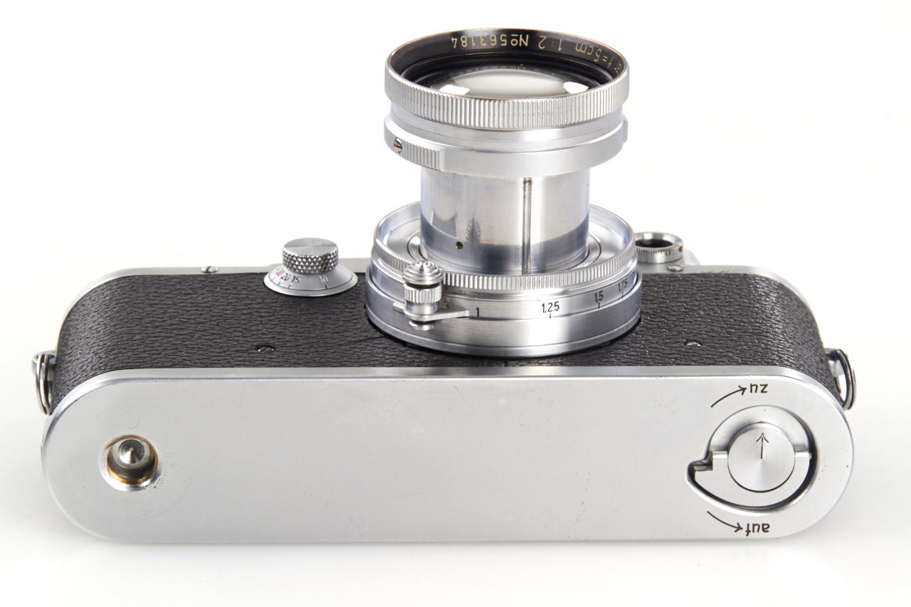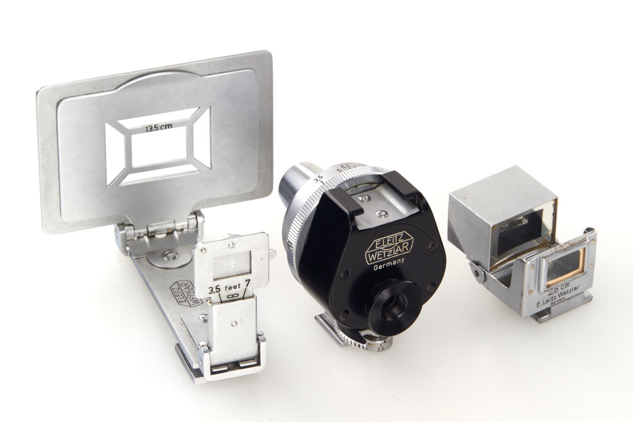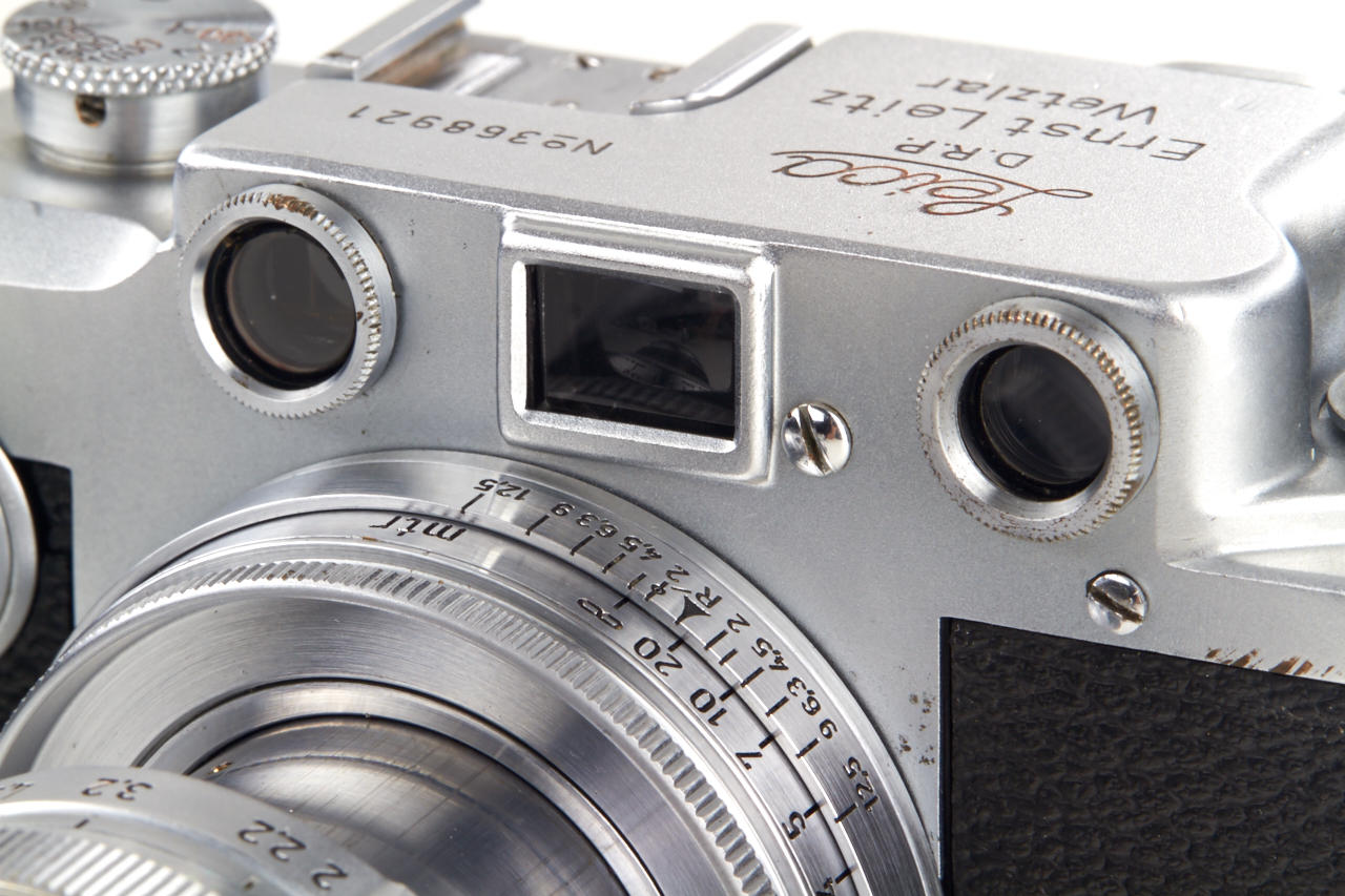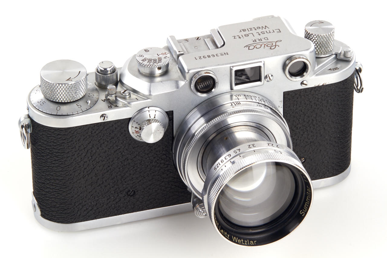 war-time camera in very good cosmetic condition and perfect working order, with Summitar 2/5cm no.563184, Hektor 6.8/2.8cm no.452918 (with SUOOQ finder), Elmar 3.5/3.5cm no.581493, Elmar 4/9cm no.565658, Hektor 4.5/13.5cm no.442088* (with asterisk indicating a double delivery), all lenses with both caps, also including a VIOOH finder, FIKUS hood, ROSOL frame finder, two FILCA cassettes and four A36 filters, everything in good to mint condition, in large leather outfit case