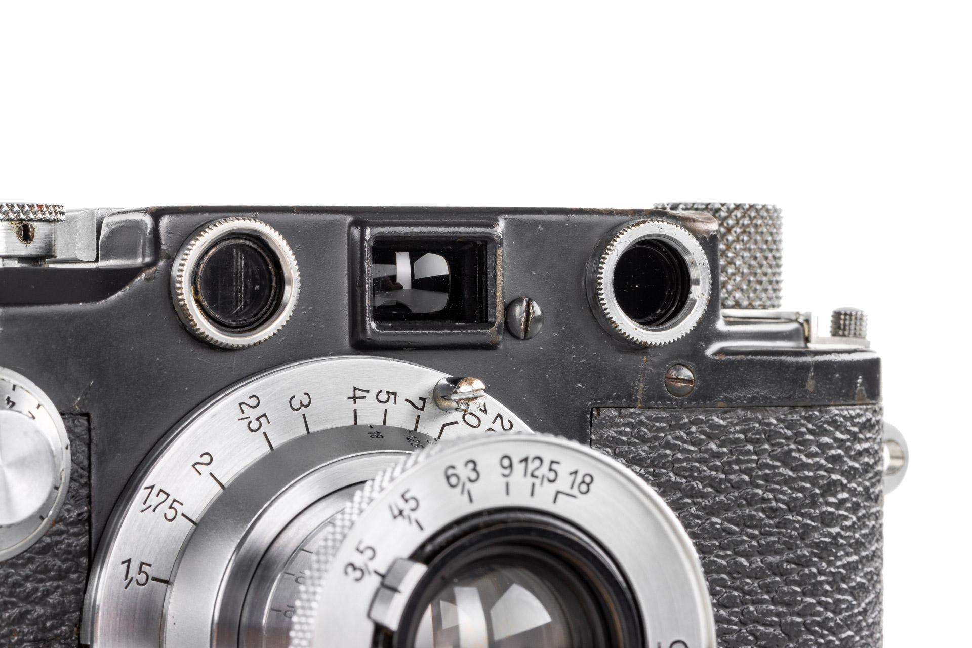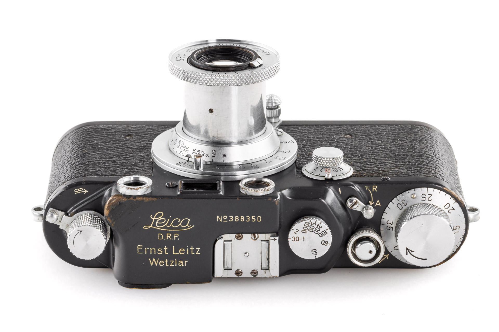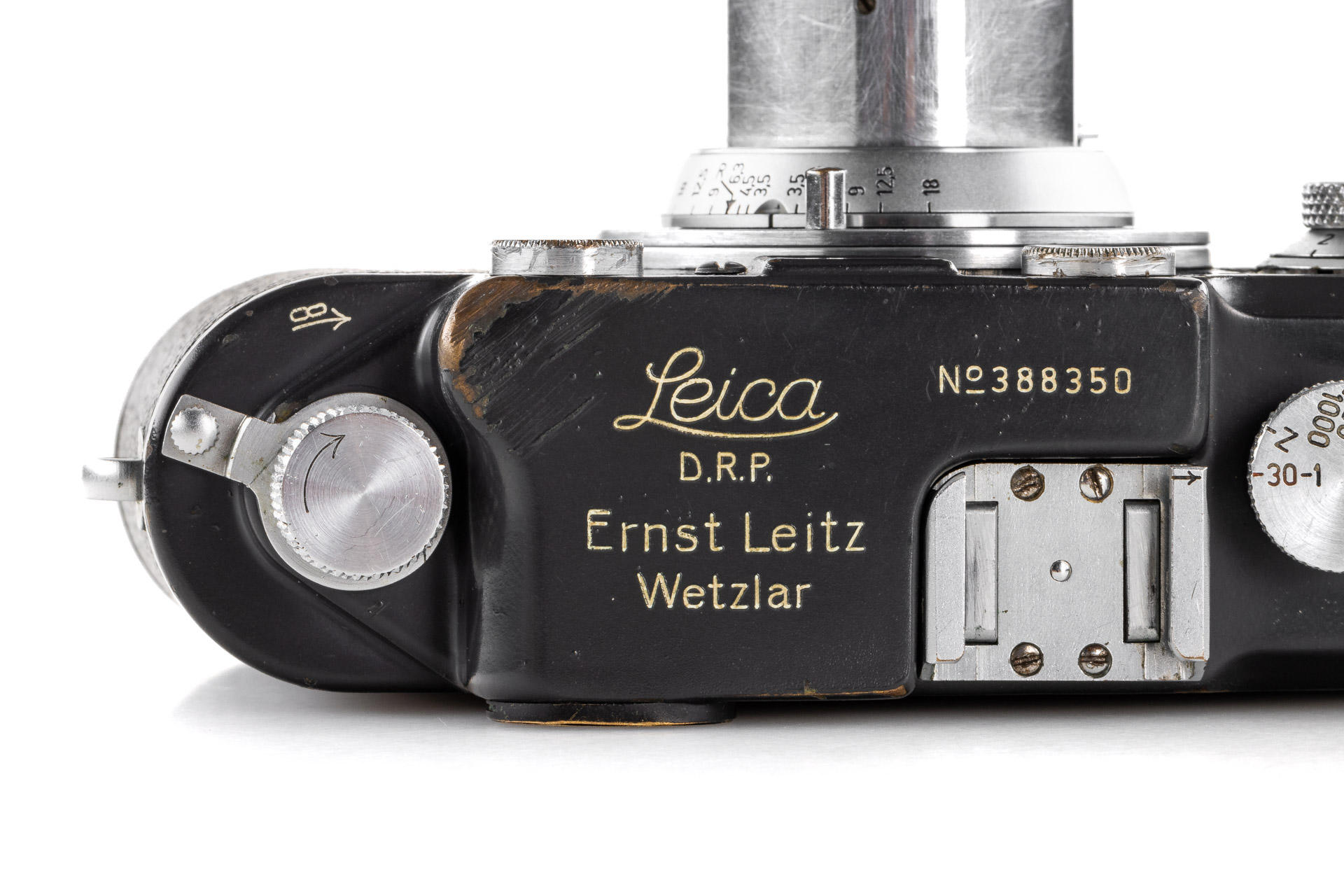Very nice and rare war-time original grey painted body, in good condition (an edge of the top plate is dented, shutter curtain a bit dry), with chrome Elmar 3.5/5cm no.478038 (good uncoated optics) with front lens cap.
