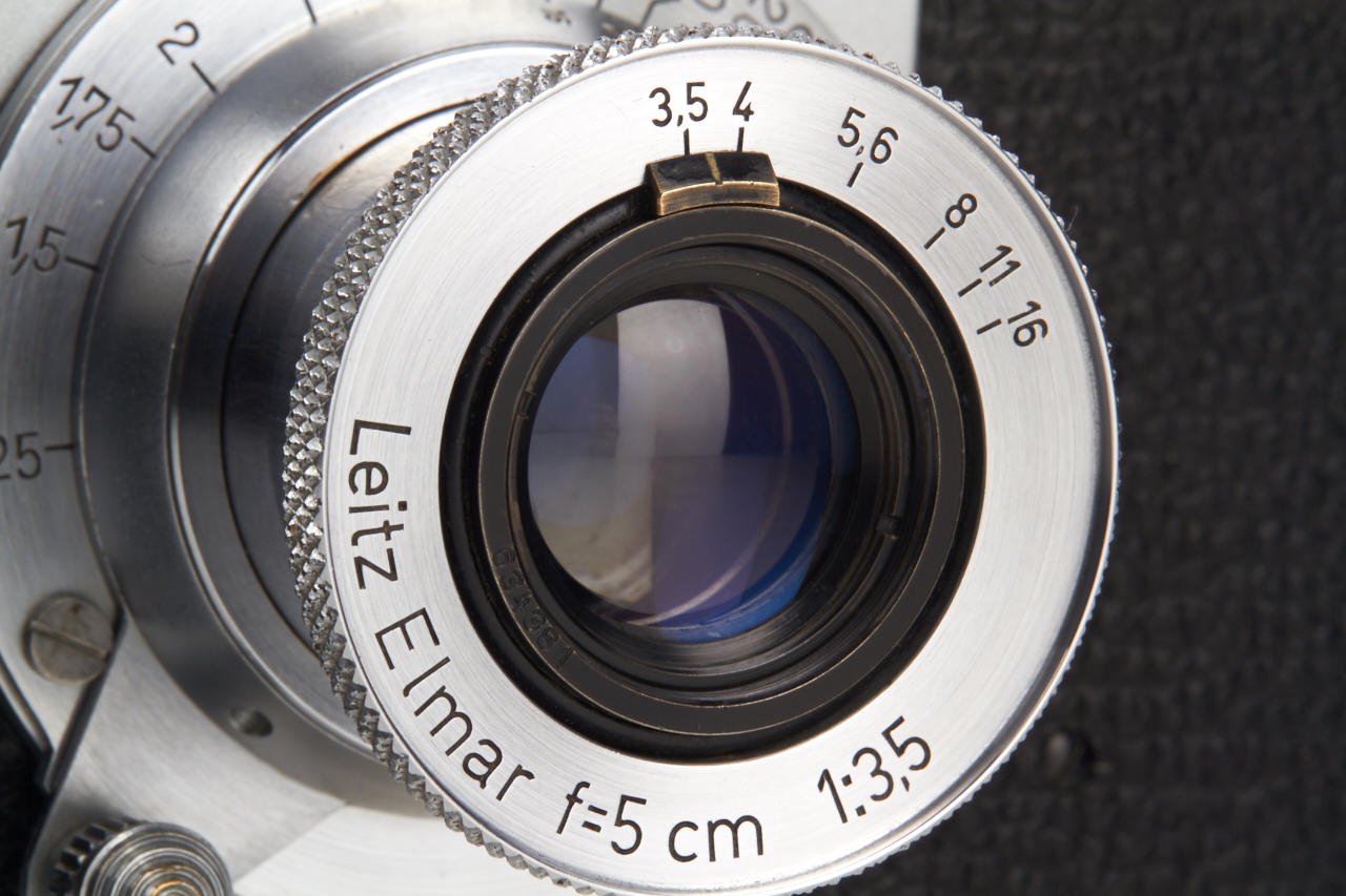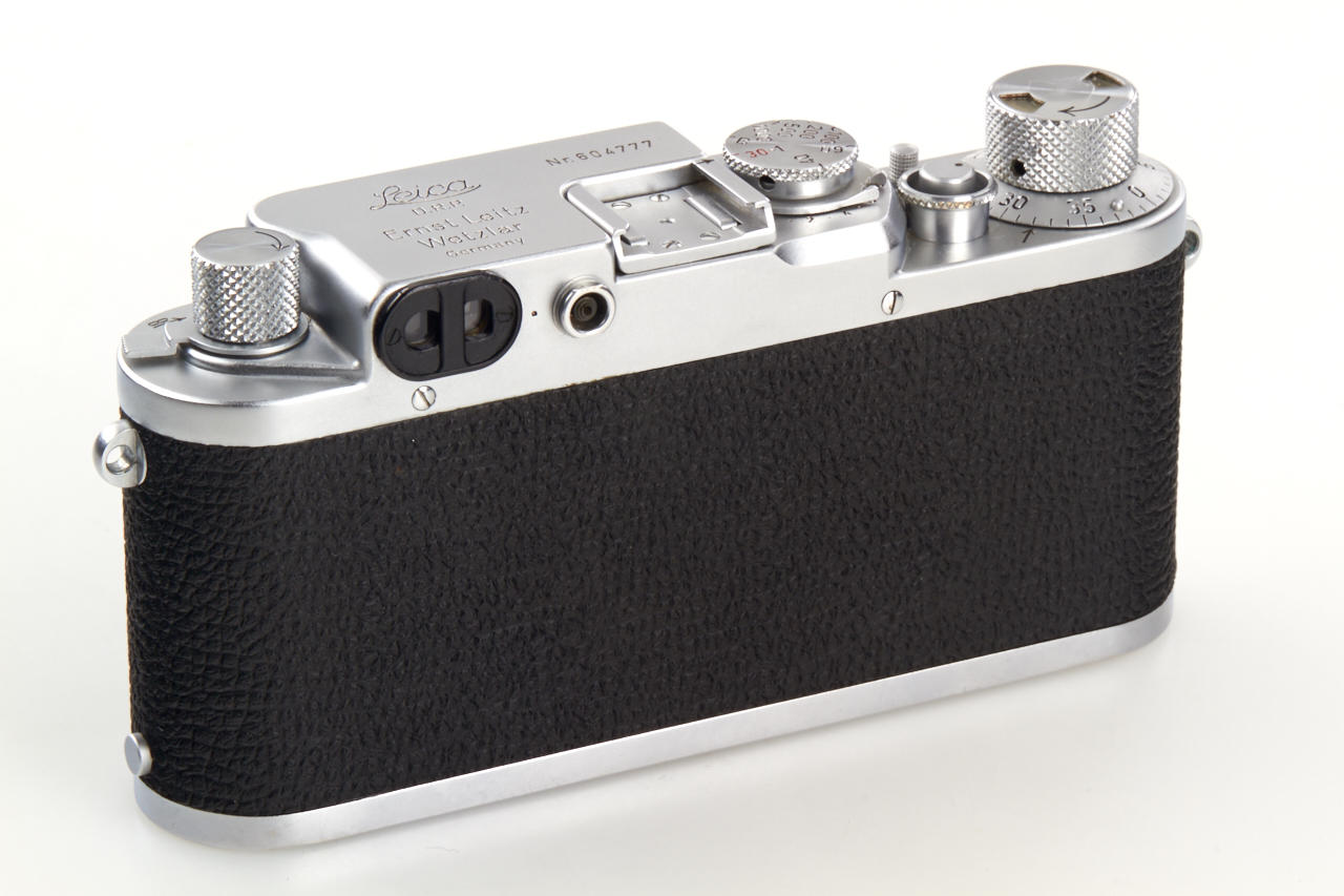late black dial camera in near mint condition (some signs of wear on the base plate only), with Elmar 3.5/5cm no.634381 (cond. B+), front cap