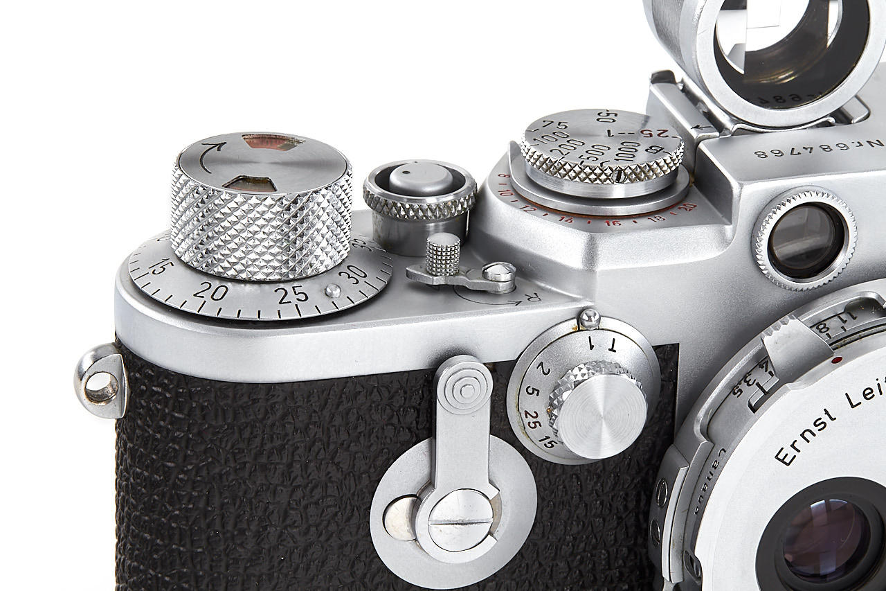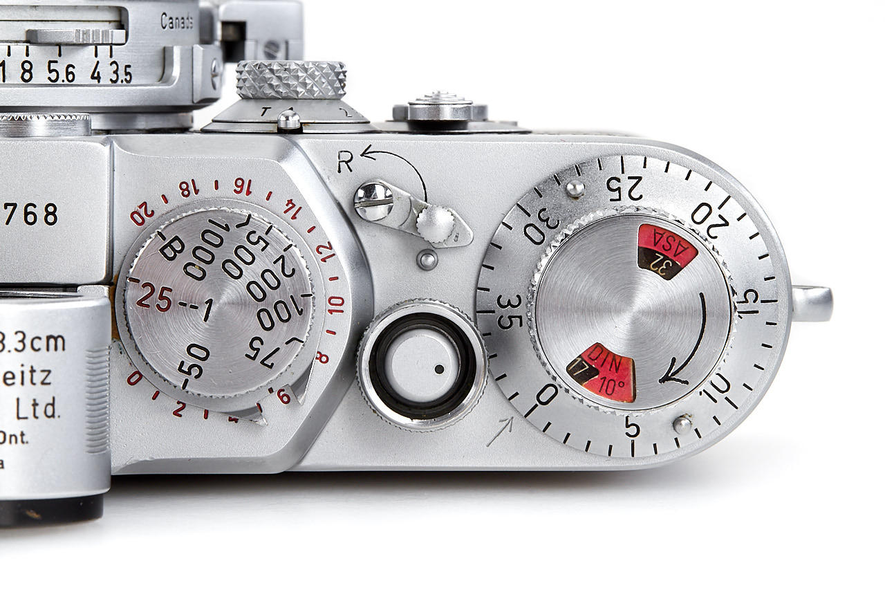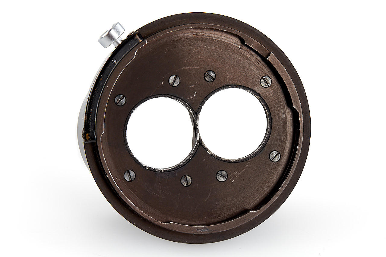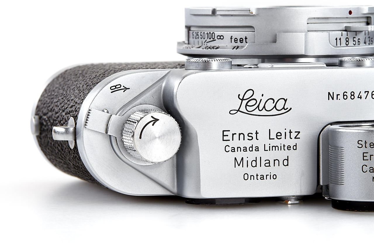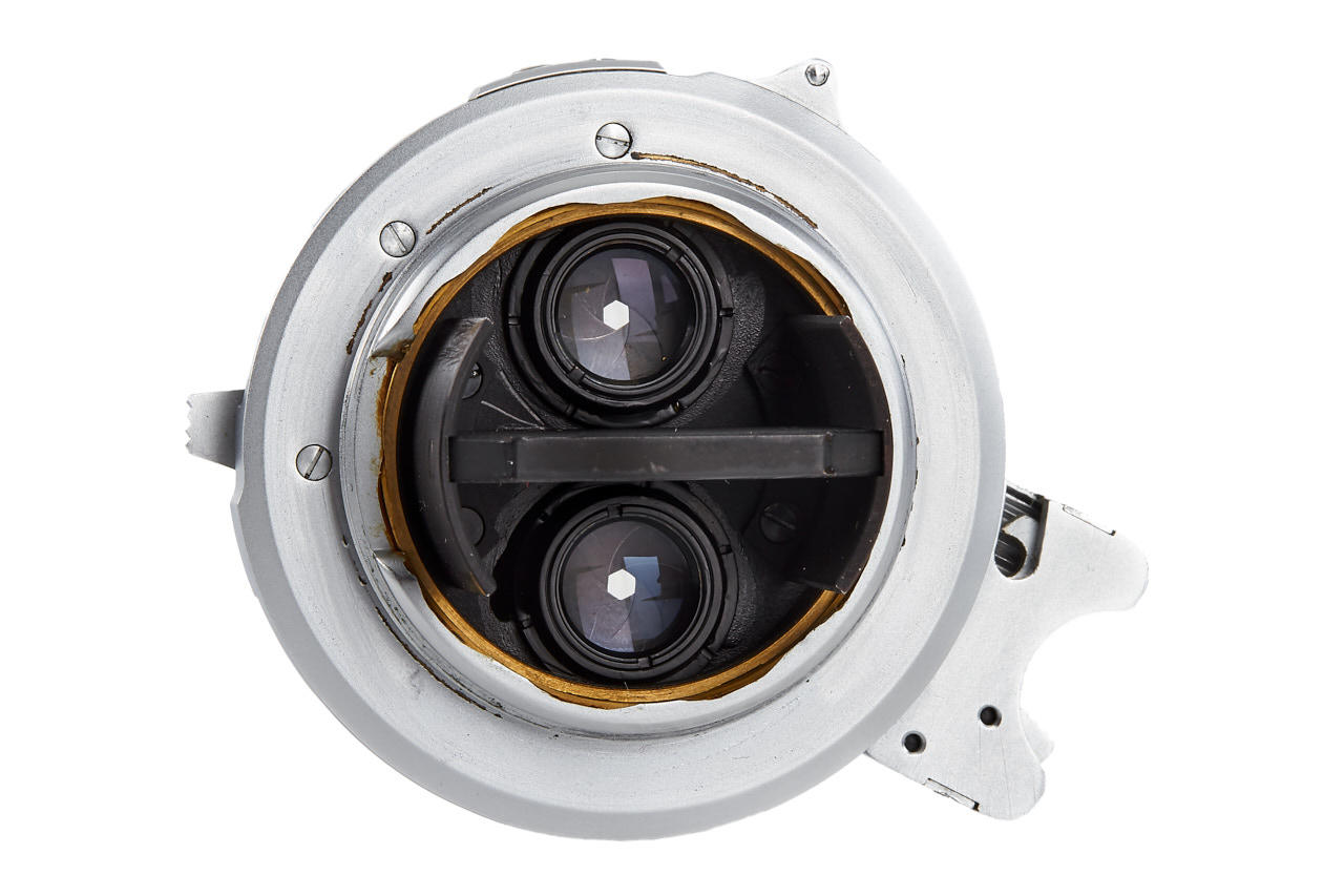 rare IIIf Midland in beautiful, almost perfect condition, in a set with near mint stereo lens Stemar no.1142289, beam splitter OIMPO no.1644 (cond. B/A), special hood OIGEO (cond. B+), stereo finder OIDYO, rare Stemar brochure, leather case for the IIIf. In 1953 the pre-war Stereo Elmar reappeared with a very small number of 3.5/3.3 cm Stemar lenses under the codeword OISBO, made in Wetzlar. The outfit included a stereo prism OIMPO, hood OIGEO and stereo finder OIDYO. One year later Leitz Canada, Midland started the production of the Stemar outfit to meet the renewed interest in stereo photography in the United States. It was available in both screw-mount and bayonet-mount versions. The Stemar, Leitz’s finest contribution to stereo photography, is a wonderful technical achievement, but it failed to attract a great mass of customers. Between 1954 and 1957 only about 500 units left the factory in Canada.