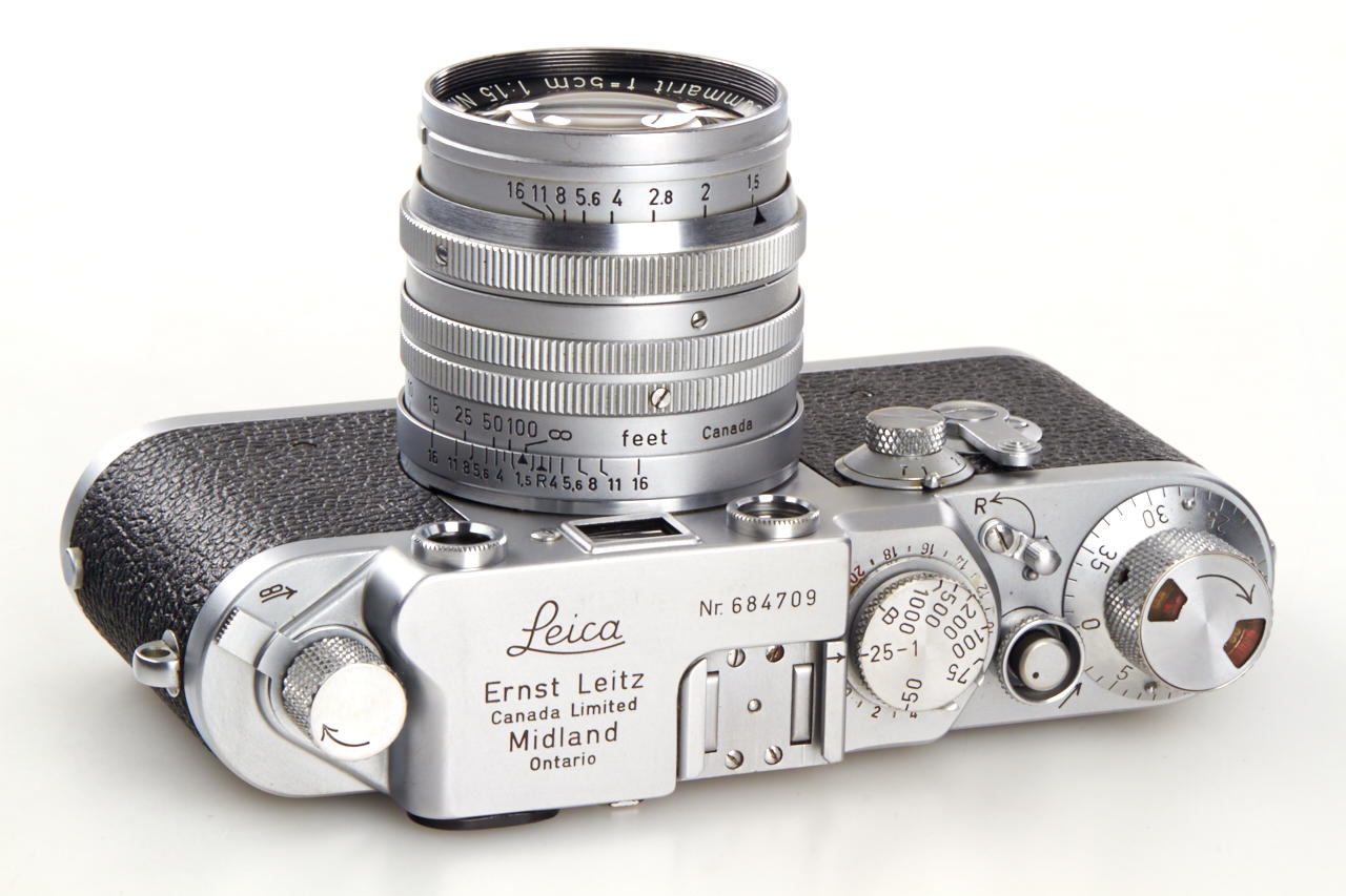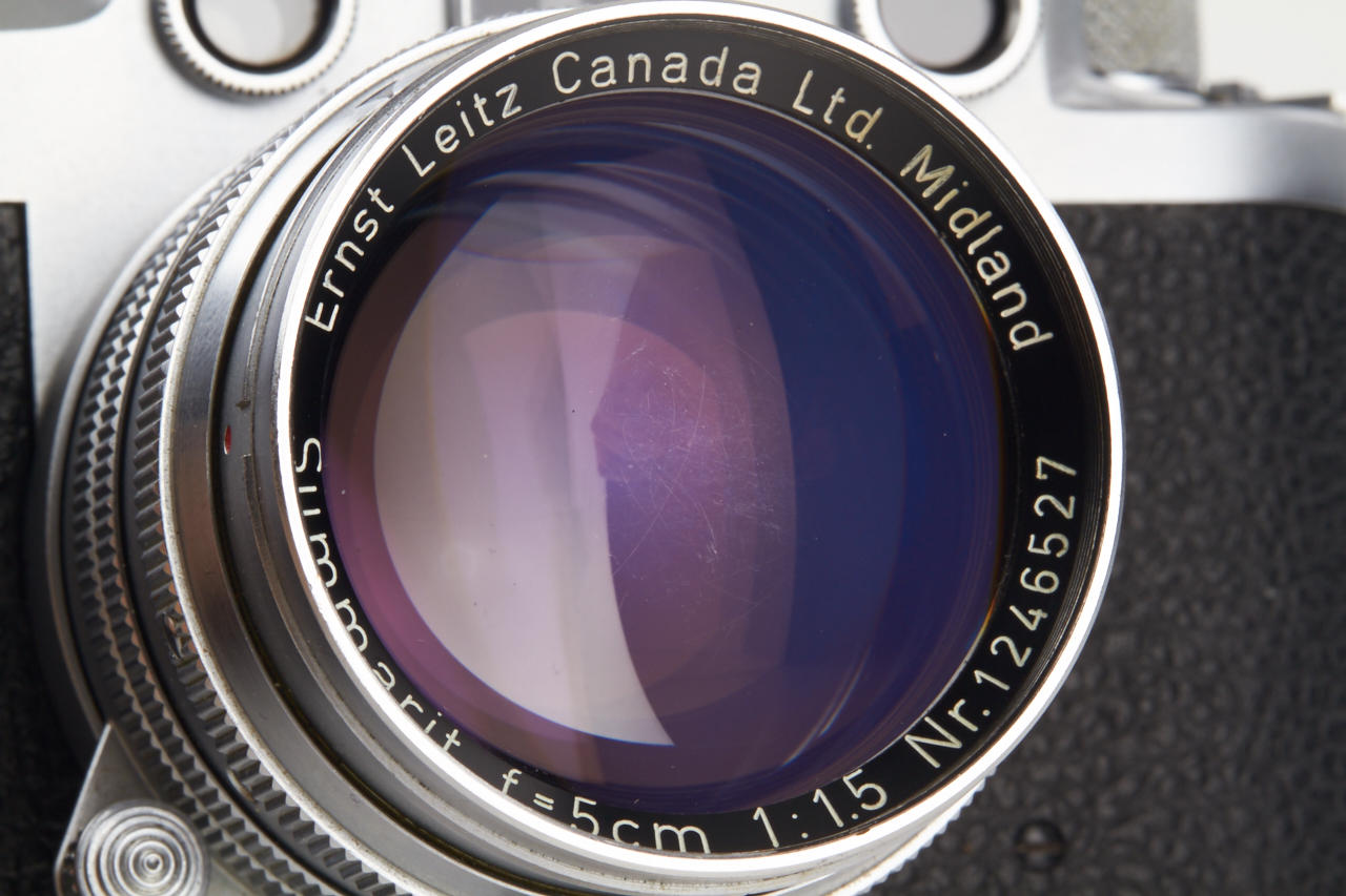very rare and fully original IIIf without self-timer, top plate engraved 'Ernst Leitz Canada Limited Midland Ontario', with matching ELC Summarit 1.5/5cm no.1246527 (minimal cleaning marks, front cap), both camera and lens in near mint cosmetic condition
