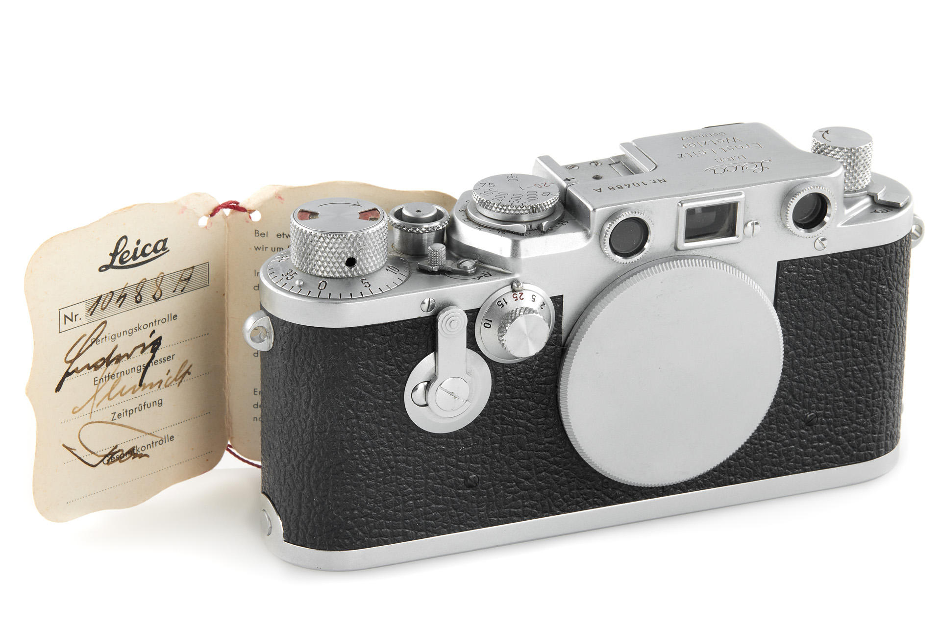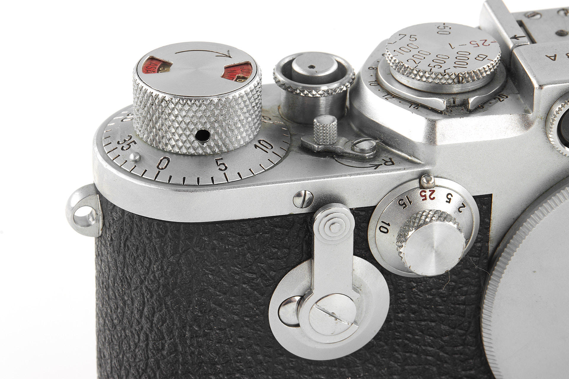 Very interesting dummy IIIf black scale body with self-timer in near mint condition, including the matching test certificate...