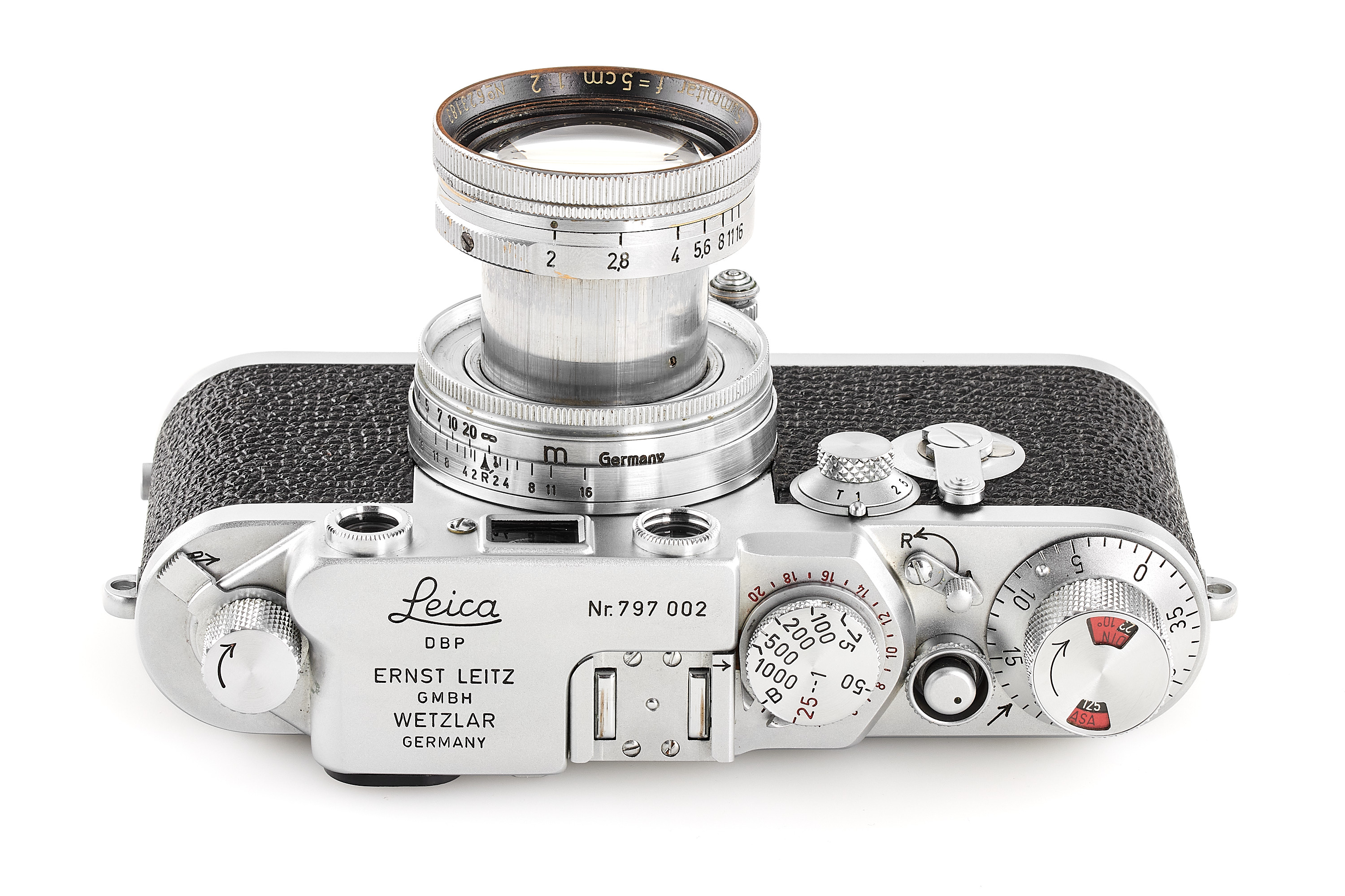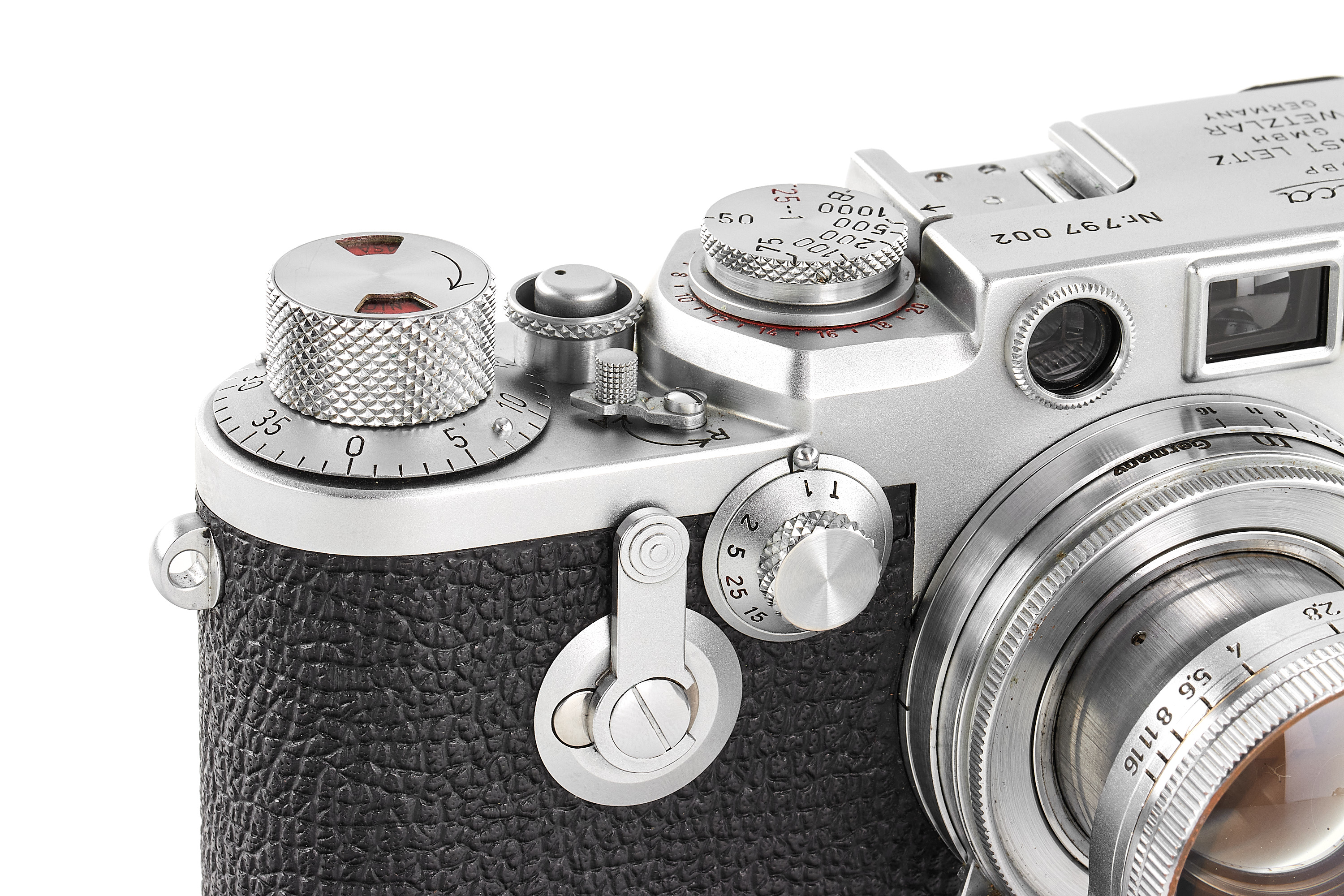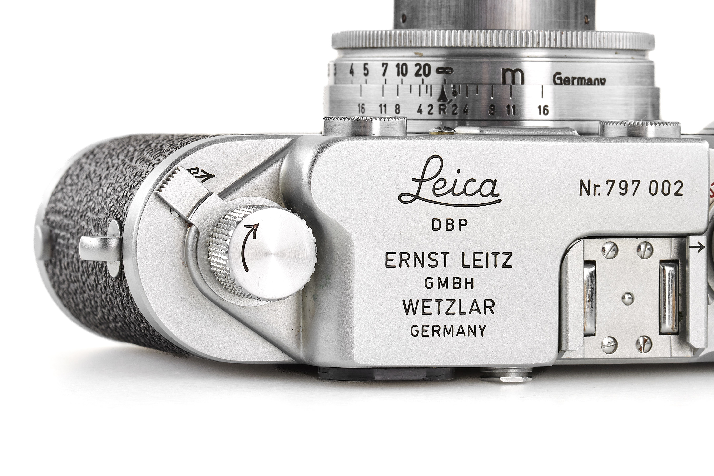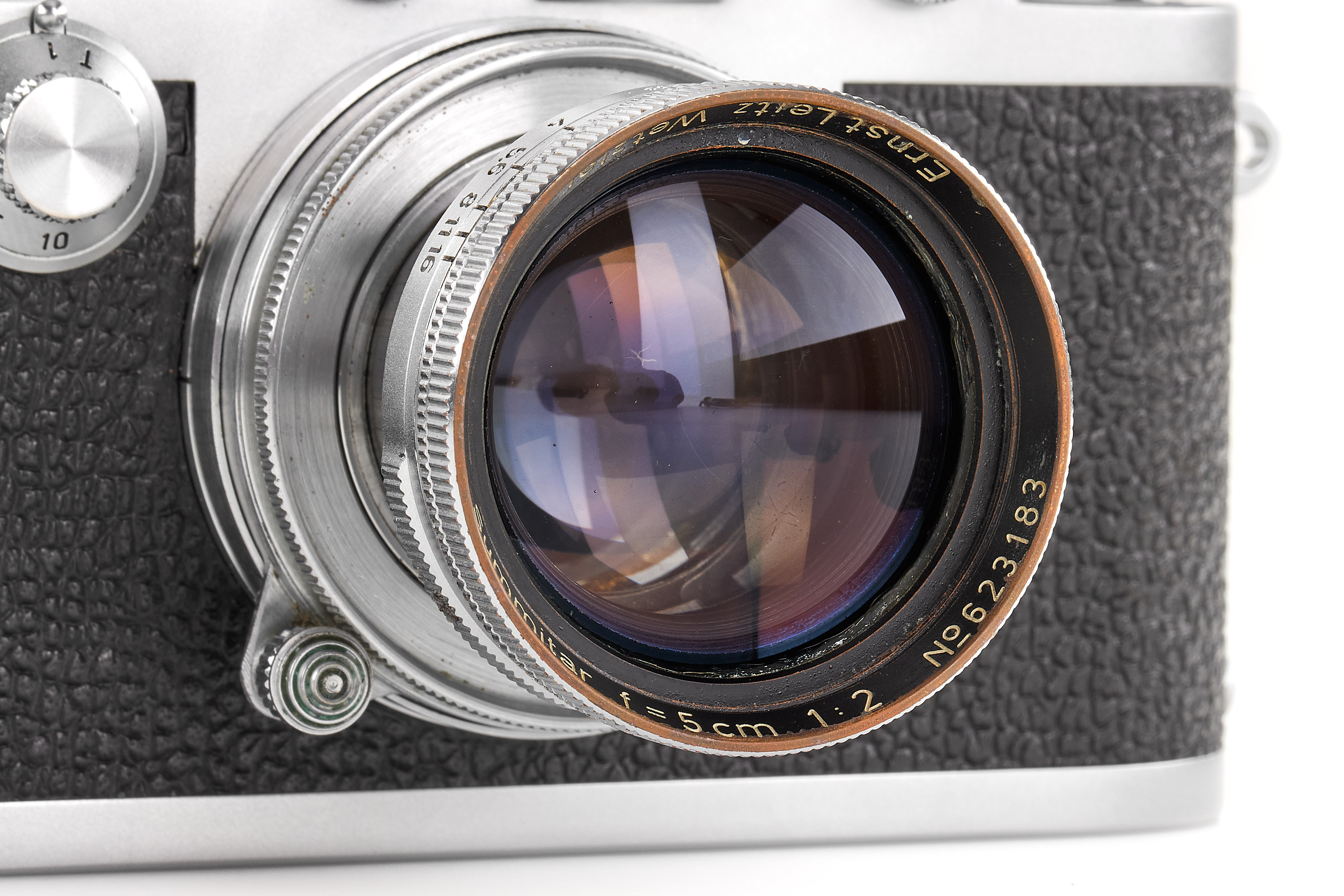 Very nice Leica IIIf in almost mint condition, delivered to Vienna on 02.06.1956, with Summitar 2/5cm no.623183, with front lens cap and leather case.