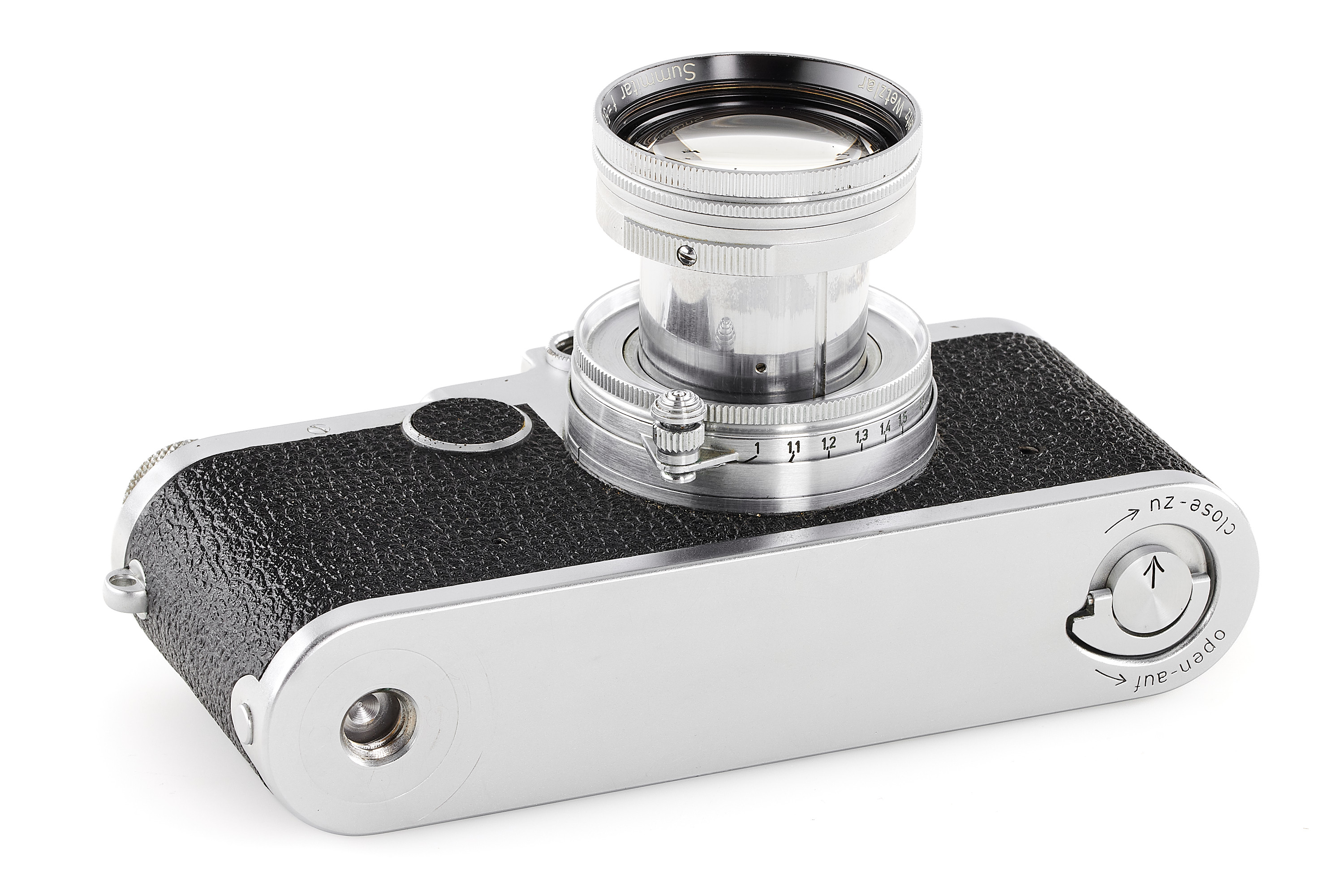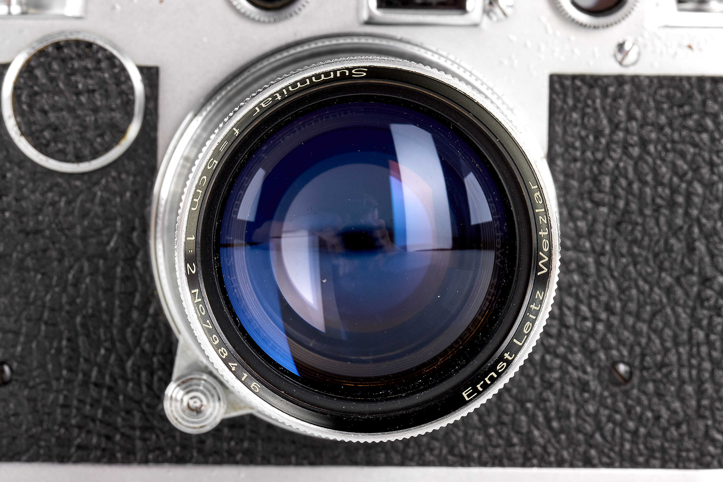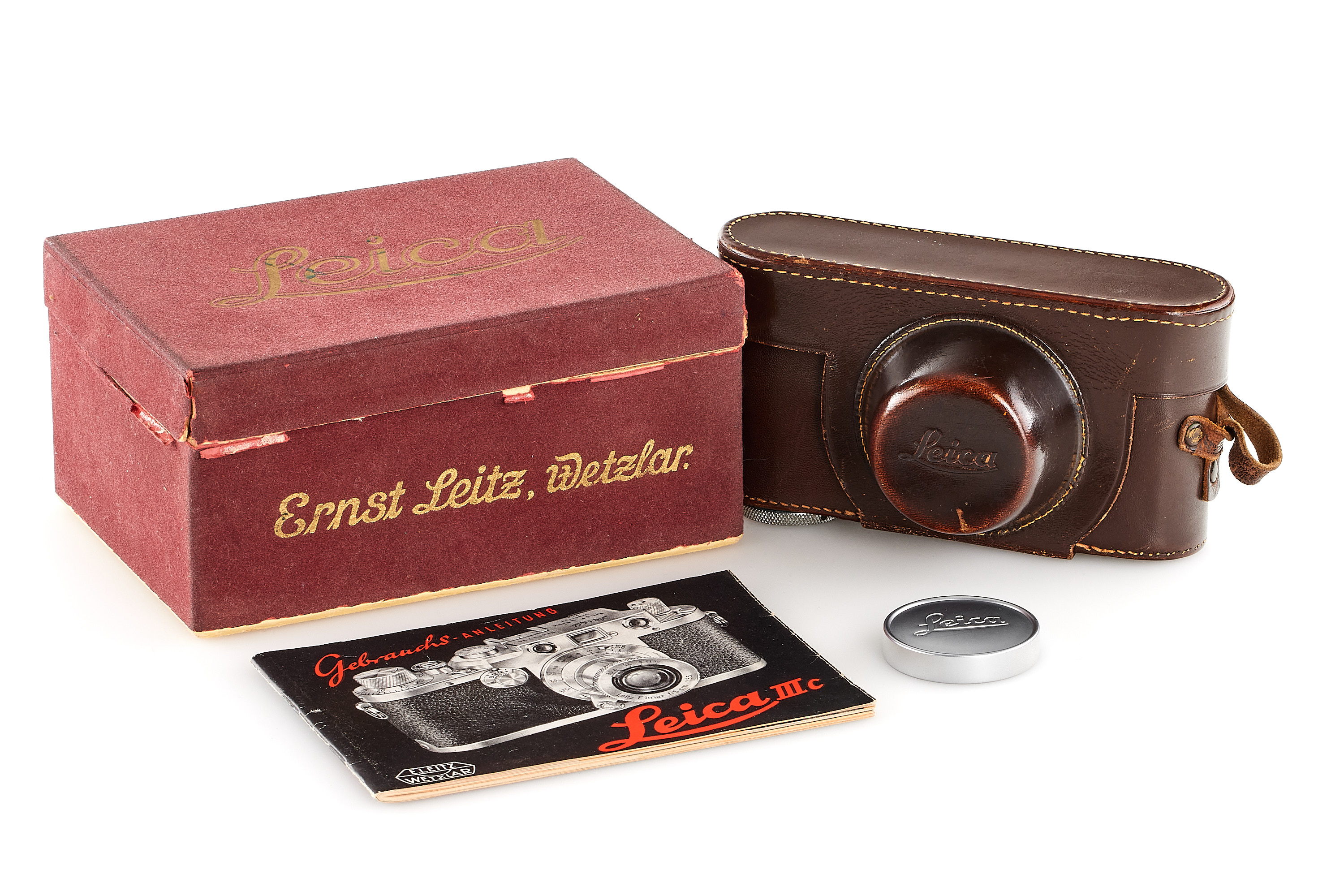 Body in excellent cosmetical condition with only some blemishes in the chrome finish (usual for this model), the shutter needs attention, including a Summitar 2/5cm no.798416, lens cap, leather case, German instructions and a maker's box with matching numbers of the body and lens.