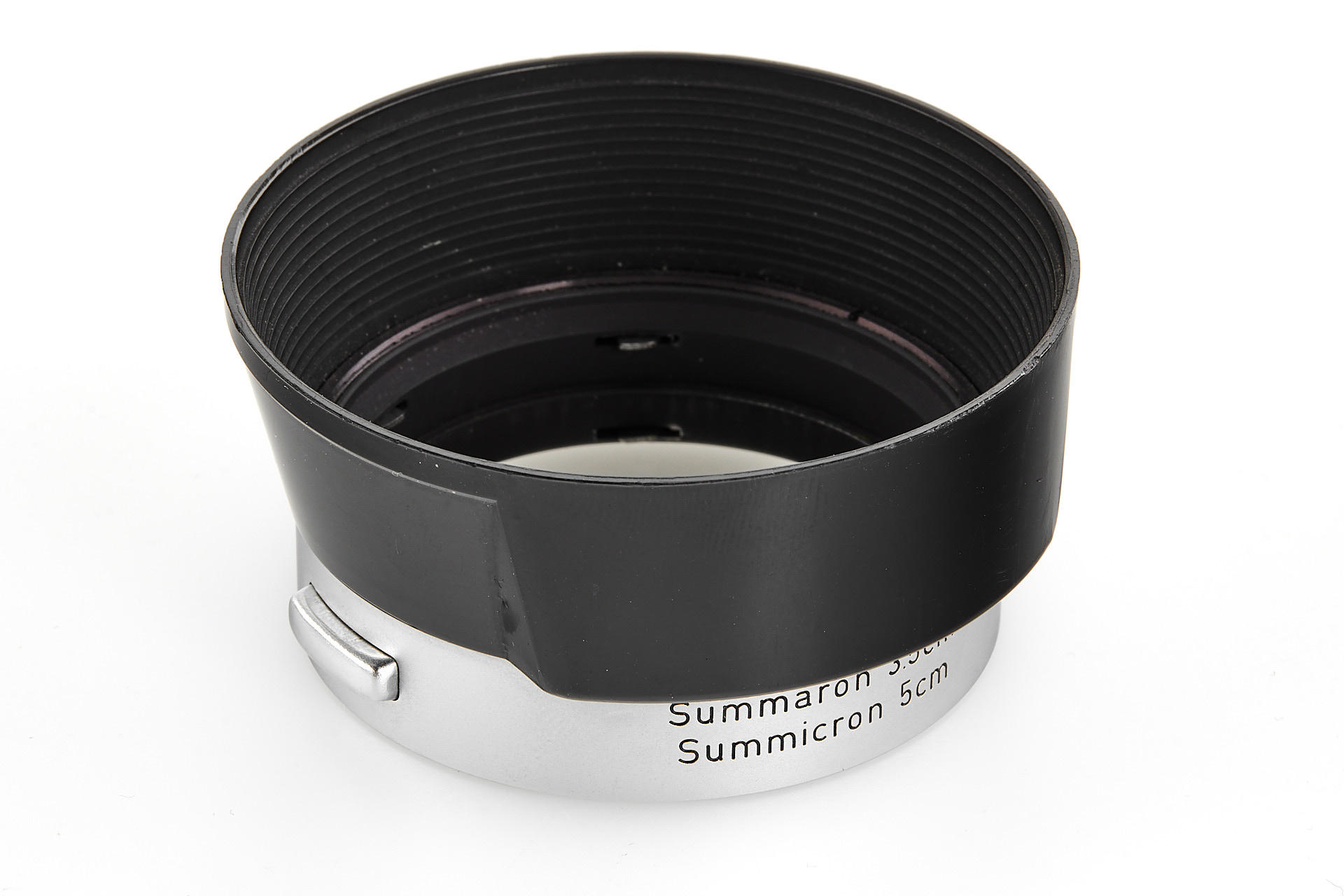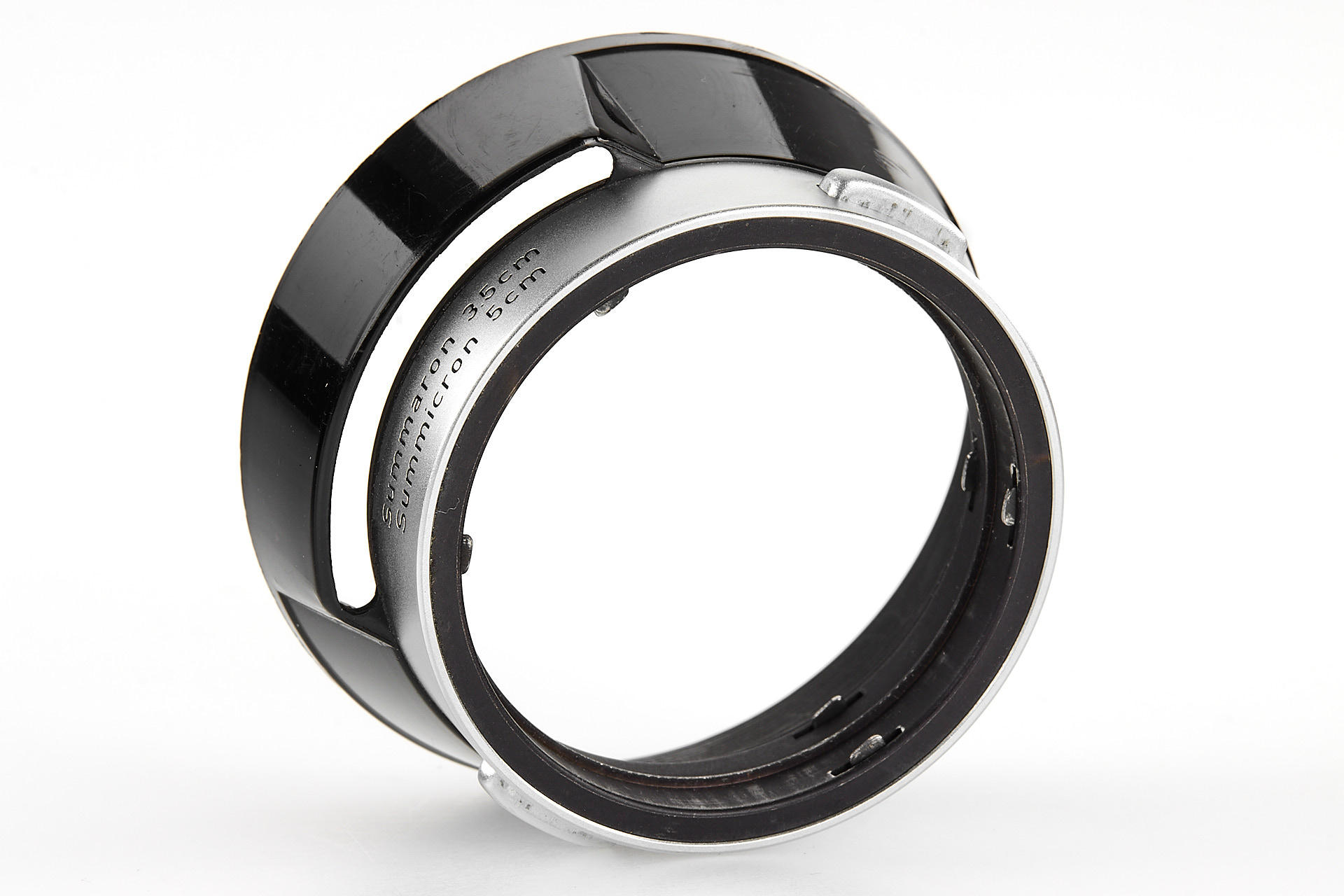 an interesting prototype hood with a cut-away on the top to clear the viewfinder view, in beautiful condition and extremely rare