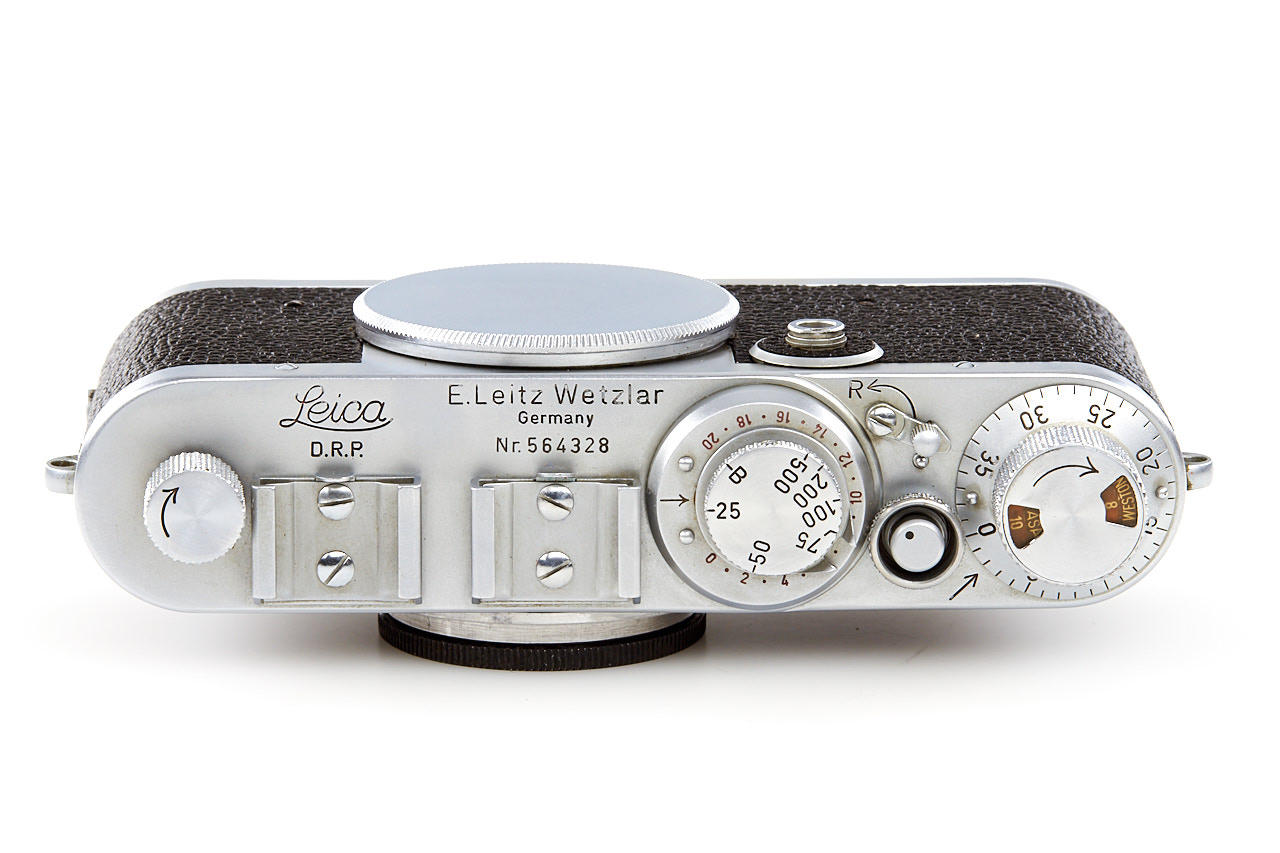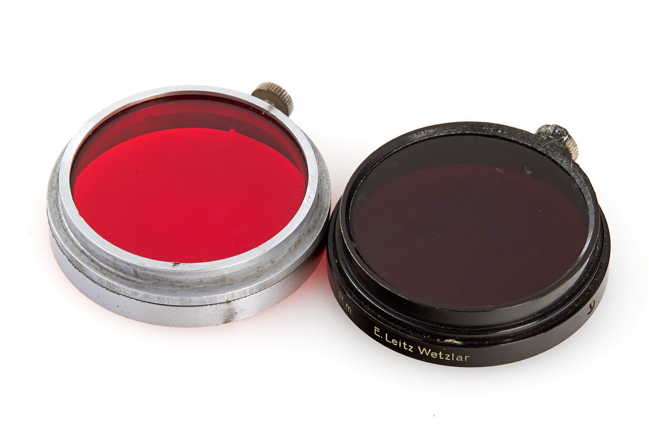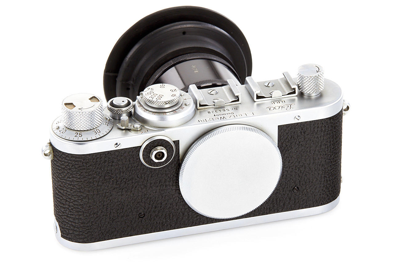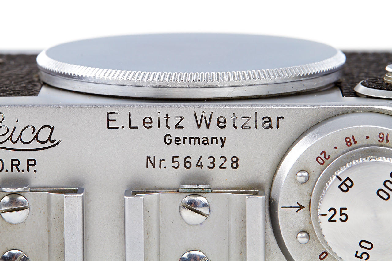 very rare If red dial body modified for the British Navy for use with periscopes, body engraved 'A.P.8886' in red letters on back vulcanite covering, special focusing finder no.P1741 for screwing on the modified back, caps for the camera and finder, IR and red filter, original fitted leather case stamped 'Case for AP.8886 Camera'