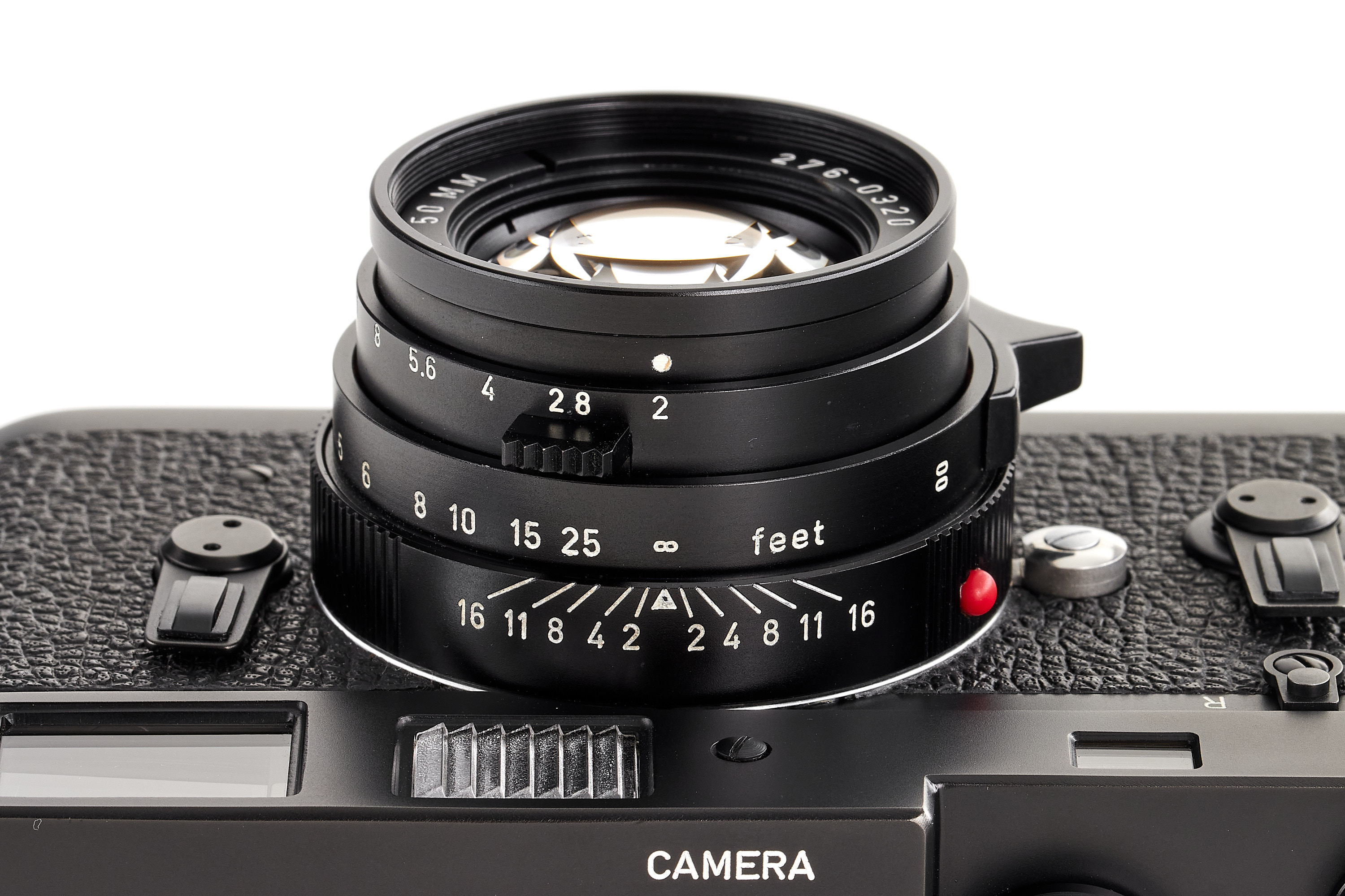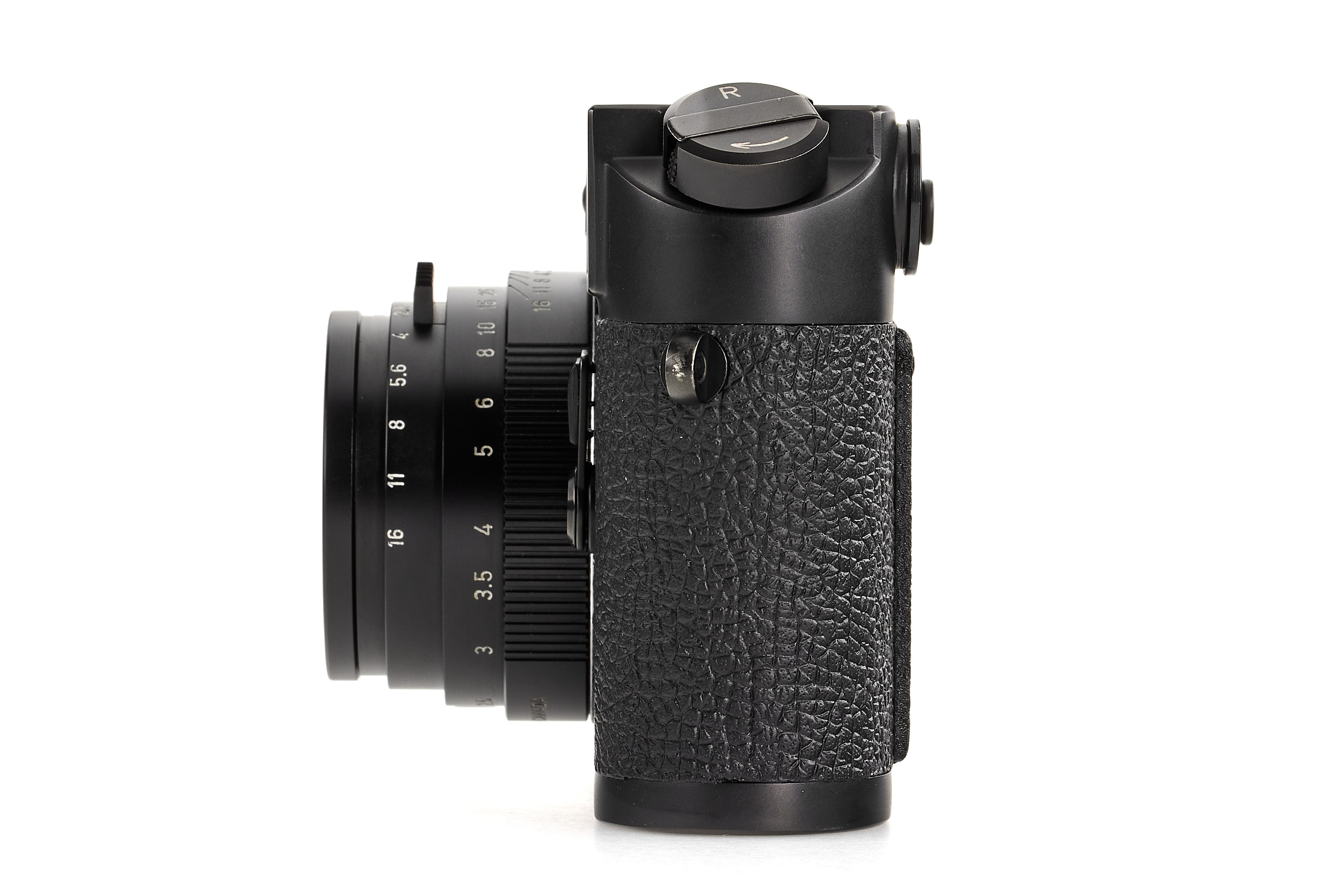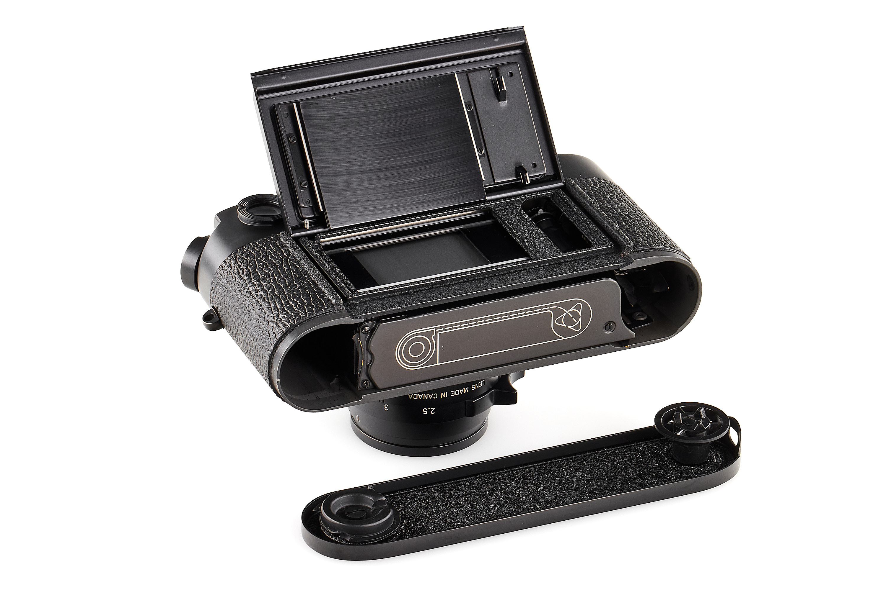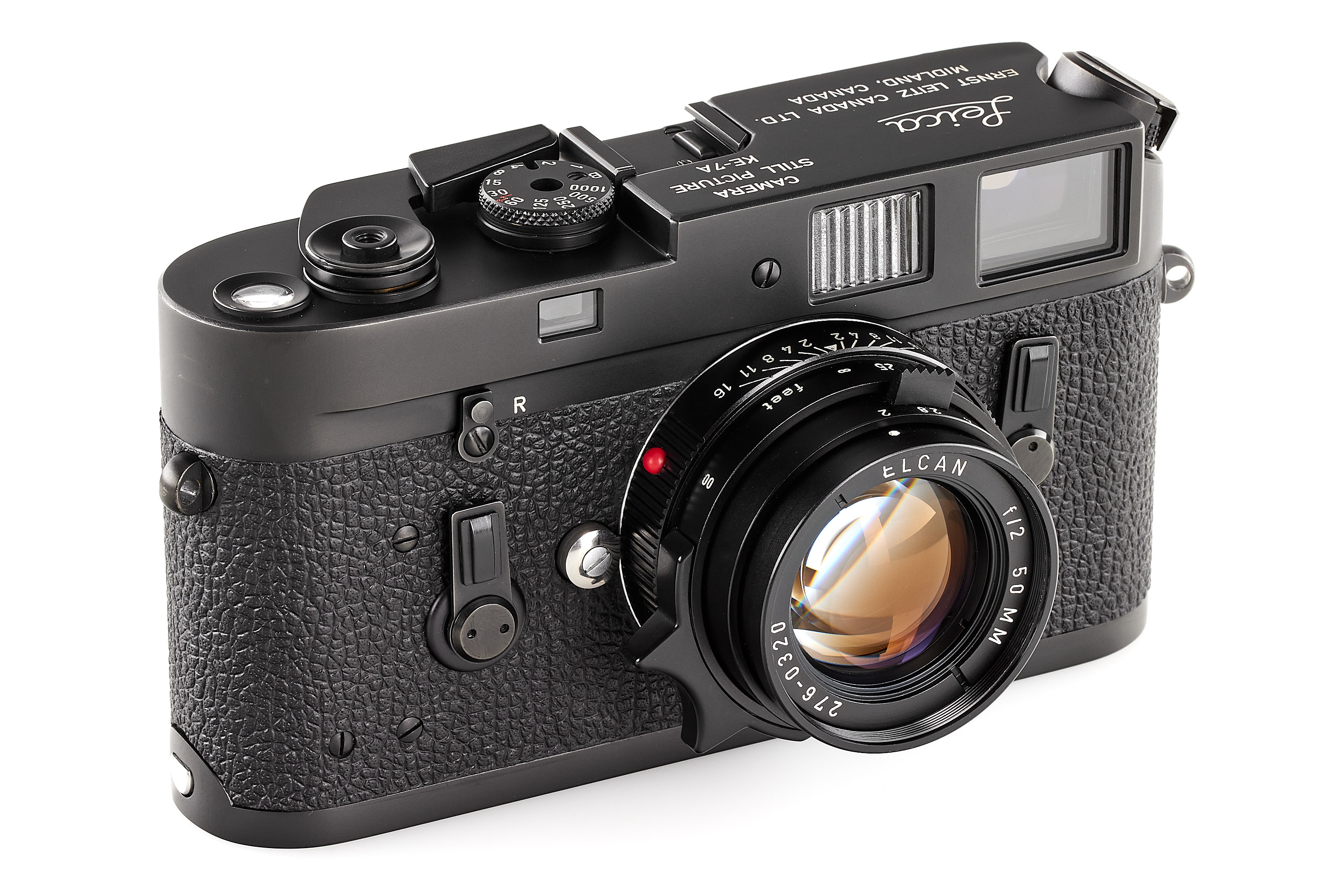A rare variant of the black Leica M4, produced by Ernst Leitz Canada for the U.S. military. In excellent condition and good working order, body engraved with the military contract numbers, including a sought-after Elcan 2/50mm no.276-0320 (good optics, with special hood).