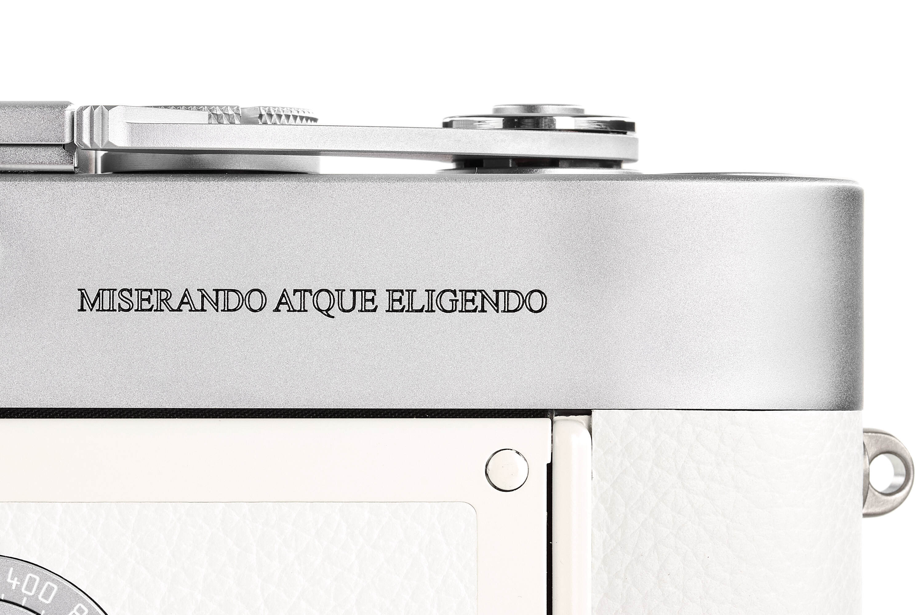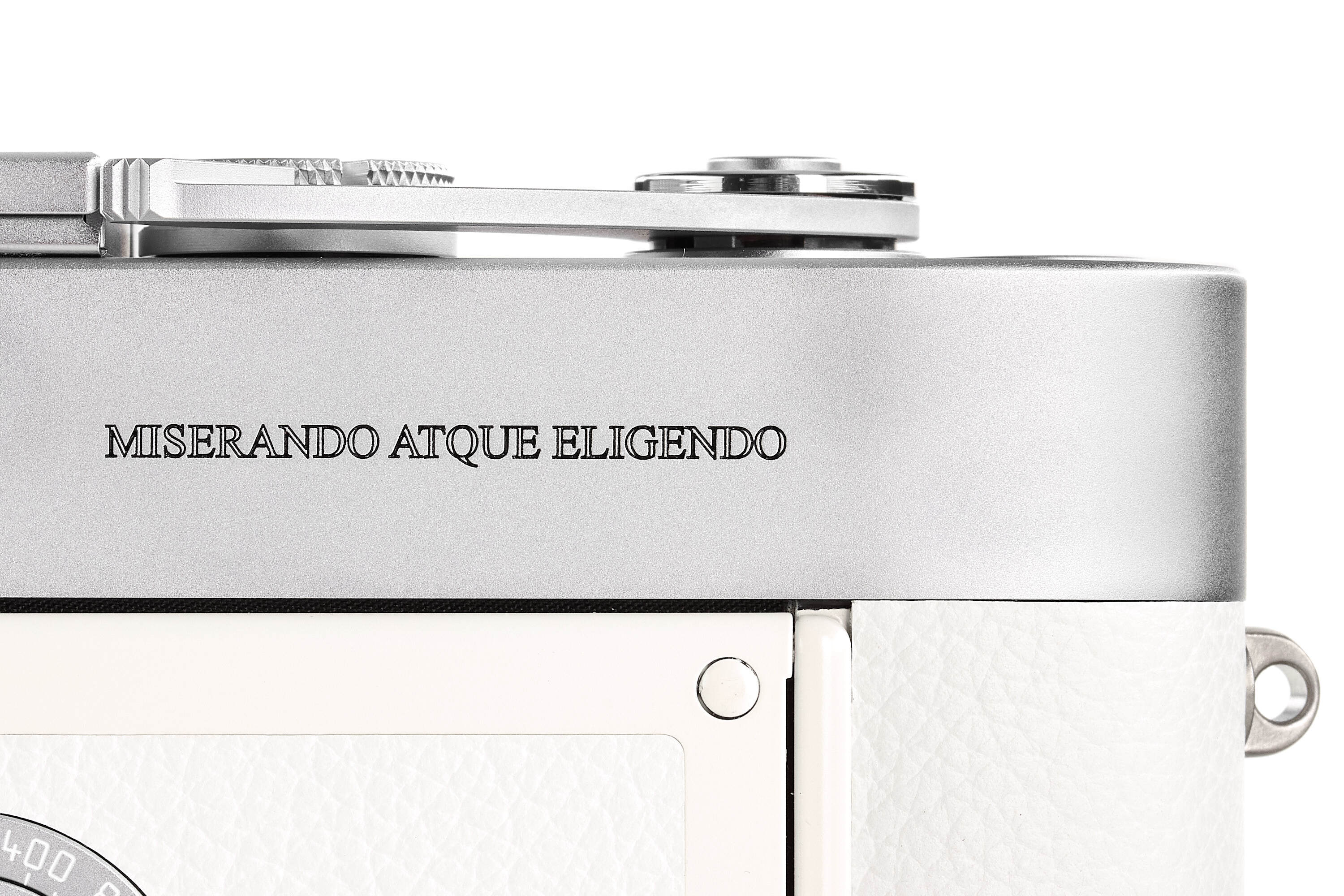 Die angebotene Kamera ist in silbern verchromtem Finish ausgeführt, mit spezieller weißer Belederung, einer weiß lackierten Bodenplatte, Rückwand sowie einigen Bedienelementen. Die Blitzabdeckung ist mit den Schlüsseln Petri graviert, während sich auf der Rückseite der Deckkappe das Motto Seiner Heiligkeit Papst Franziskus „Miserando atque eligendo“ („Aus Barmherzigkeit erwählt“) befindet. Die Gravuren sind in Weiß, Gold und Schwarz ausgelegt.