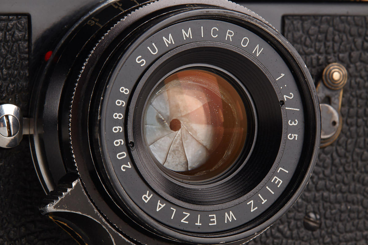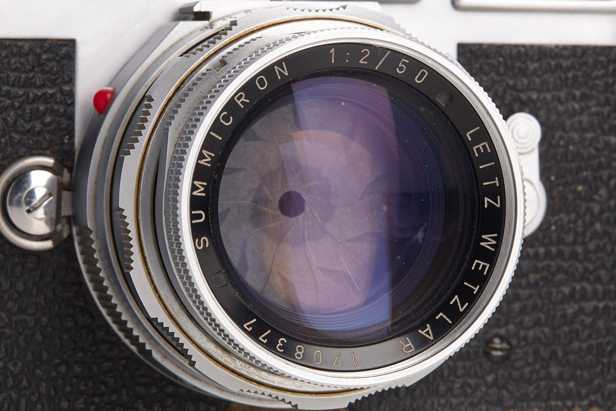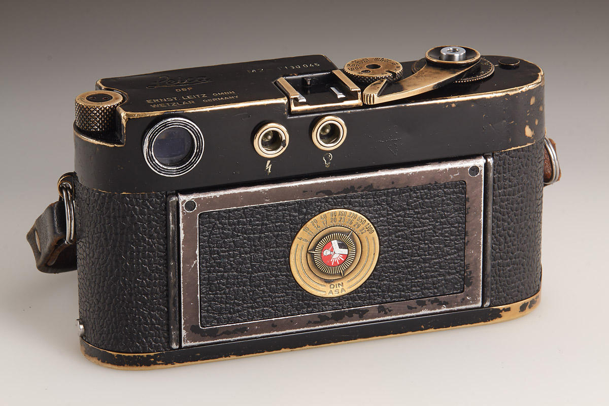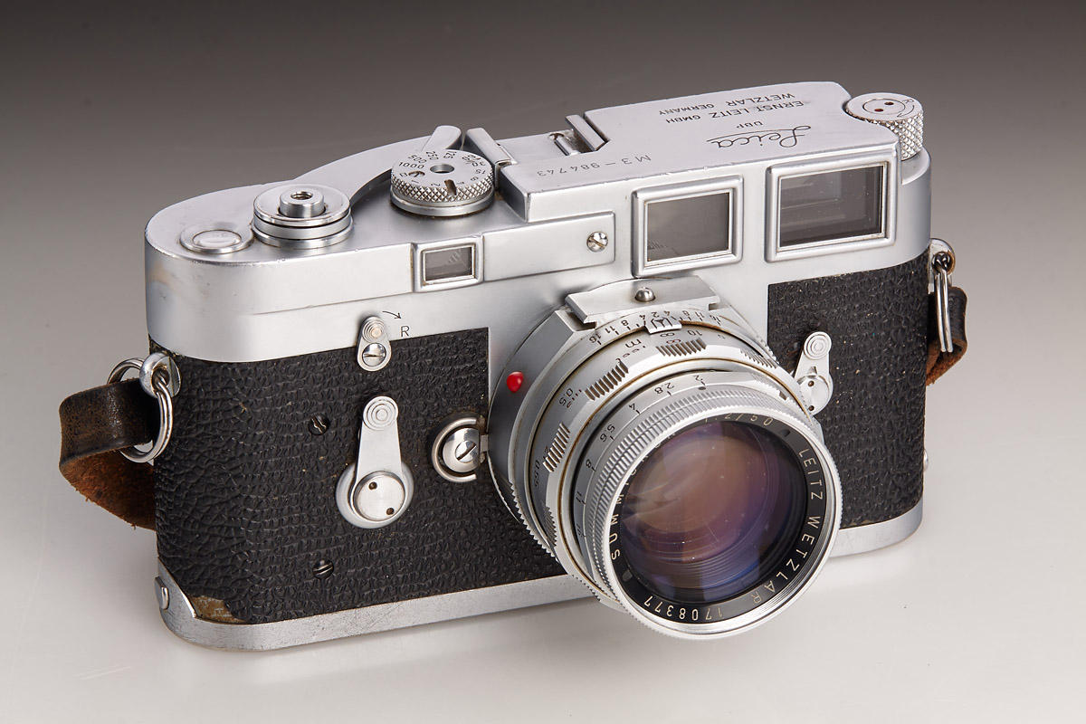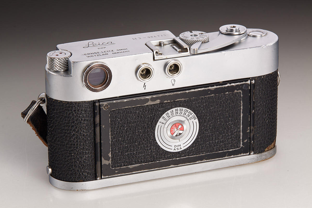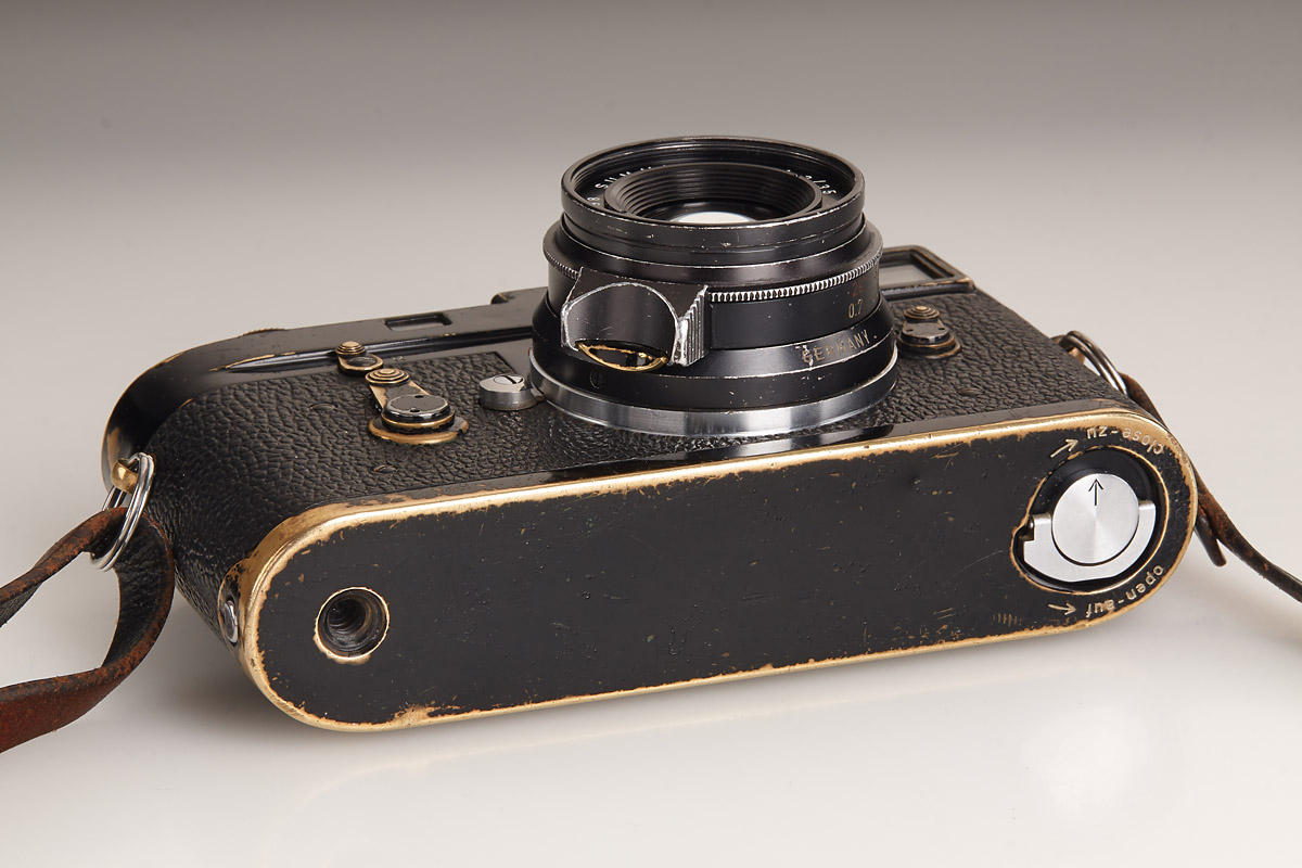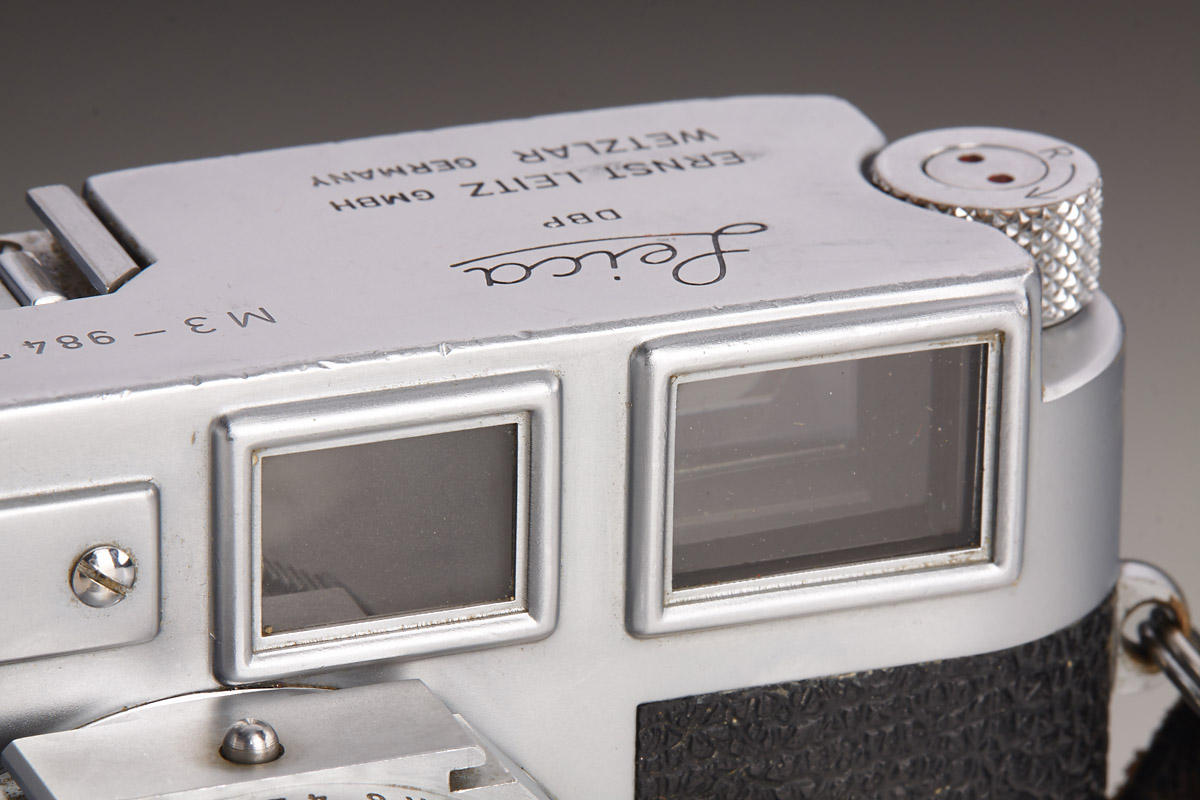 M2 black paint no. 1130045 in original condition with rare black paint 8-element Wetzlar Summicron 2/35 mm no. 2099898, M3 chrome no. 984743 with Summicron 2/50 mm no. 1708377. René Burri used these cameras for over 30 years, taking many of his iconic photographs with them. This M3 he also used for shooting Che Guevara. Comes together with an early and very rare silver print (24 x 30 cm) of Che Guevara signed by the photographer and a beautiful collage by Burri. René Burri (b. 1933) took his first photograph of a prominent person in Zurich when he was 13 – the subject was Winston Churchill. Starting in 1950, he studied to become a photographer at the School of Applied Arts in Zurich. Apart from working as a photo journalist, he also made documentary films. His first photo features were published in Swiss magazines such as Du and Camera, then increasingly by internationally renowned magazines such as Look, Paris Match, Life, Stern and GEO. In 1960 René Burri went public with a sensational reportage and exhibition entitled The Germans. His “neutrality” as a Swiss citizen had enabled him to take photographs both in the GDR and in West Germany, thus portraying both sides of the divided country from a unified, neutral and unprejudiced perspective. In 1962 he published the material in book form, adding further up-to-date images. Thereby, he probably became the only one to succeed in showing a valid image of Germany before and after the construction of the Wall, at least before the Wall came down again. He is particularly well-known for his images of Ernesto Che Guevara smoking a cigar, taken in 1963. Further personalities he portrayed include Pablo Picasso, Alberto Giacometti, Jean Tinguely and Le Corbusier. René Burri is considered a “people photographer”, meaning that his images always put the human being centre-stage, always focusing on the human element. Since 1959, Burri is member of Magnum. In 2011 he was awarded the Swiss Press Photo Lifetime Achievement Award. See lot 166 for a vintage print of the famous “Che” image. Sein erstes Foto einer prominenten Person machte René Burri (geboren 1933) im Alter von 13 Jahren in Zürich von Winston Churchill. Zum Fotografen ausbilden ließ er sich ab 1950 an der Kunstgewerbeschule in Zürich. Neben bildjournalistischen Arbeiten machte er auch Dokumentarfilme. Seine ersten Bildberichte wurden in Schweizer Zeitschriften wie Du und Camera gedruckt, später immer mehr in international renommierten Magazinen wie Look, Paris Match, Life, Stern und GEO veröffentlicht. 1960 trat René Burri mit einer aufsehenerregenden Reportage und Ausstellung Die Deutschen an die Öffentlichkeit. Durch seine „Neutralität“ als Schweizer hatte er die Möglichkeit, Bilder sowohl in der DDR als auch in Westdeutschland aufzunehmen und so die beiden Seiten des geteilten Deutschland aus einem einheitlichen, neutralen und unvoreingenommenen Blickwinkel darzustellen. Dieses Material verarbeitete er 1962 zu einem Buch, dessen Neuauflagen er um aktuelle Fotos ergänzte. Damit ist ihm bis nach dem Mauerfall wohl als Einzigem der Versuch geglückt, ein gültiges Bild Deutschlands vor und nach dem Mauerbau zu zeigen. Besonders bekannt geworden ist er 1963 durch seine Bilder des Zigarre rauchenden Ernesto Che Guevara. Weitere Persönlichkeiten, die er porträtiert hat, sind Pablo Picasso, Alberto Giacometti, Jean Tinguely und Le Corbusier. René Burri gilt als Menschenfotograf, was besagen will, dass er in seinen Bildern immer den Menschen in den Mittelpunkt stellt bzw. immer auch die menschliche Seite zeigt. Seit 1959 ist Burri Mitglied von Magnum. 2011 wurde er mit dem „Swiss Press Photo Lifetime Achievement Award“ für sein Lebenswerk ausgezeichnet. Siehe Los 166 für einen Vintageprint des berühmten „Che“ Portäts.