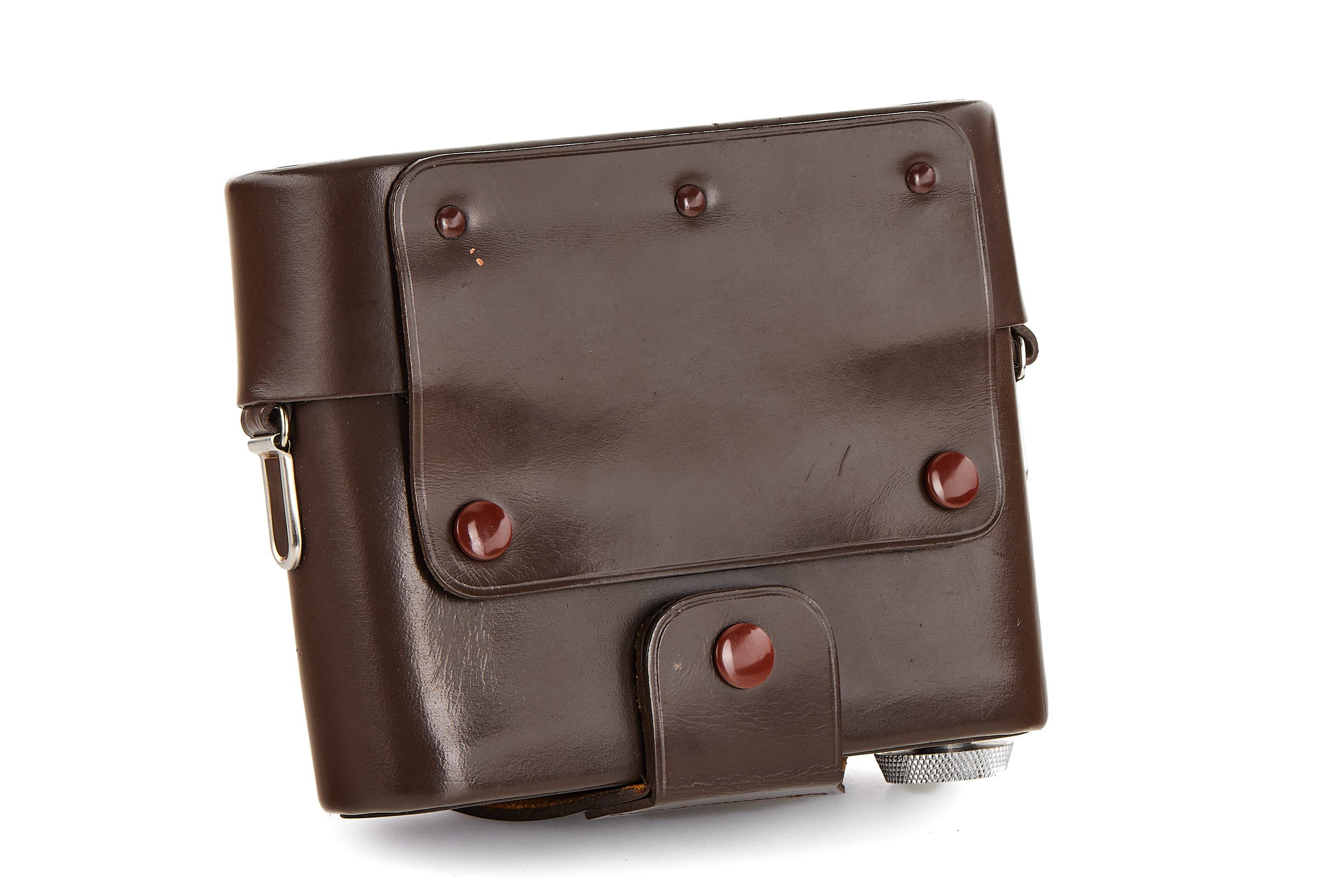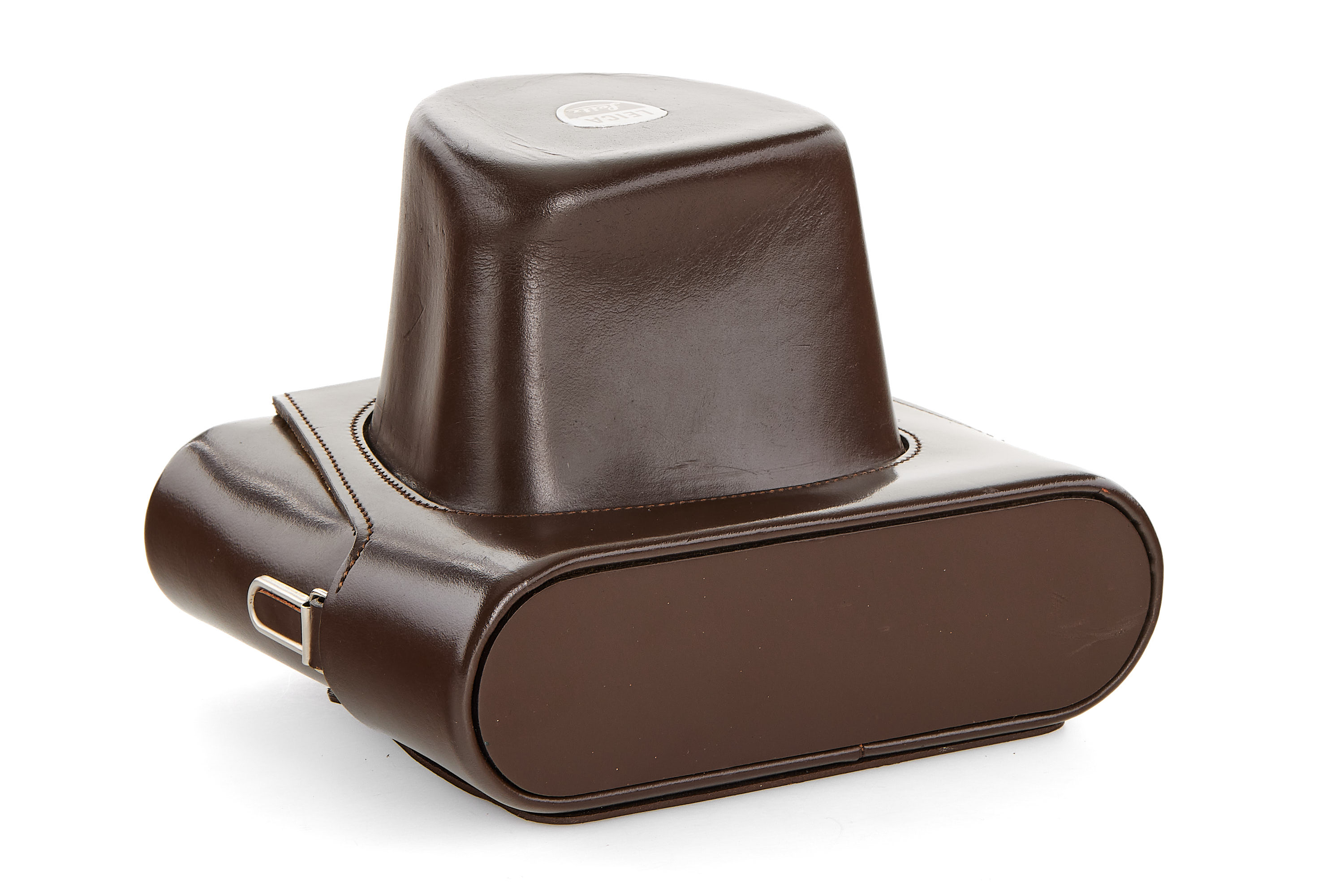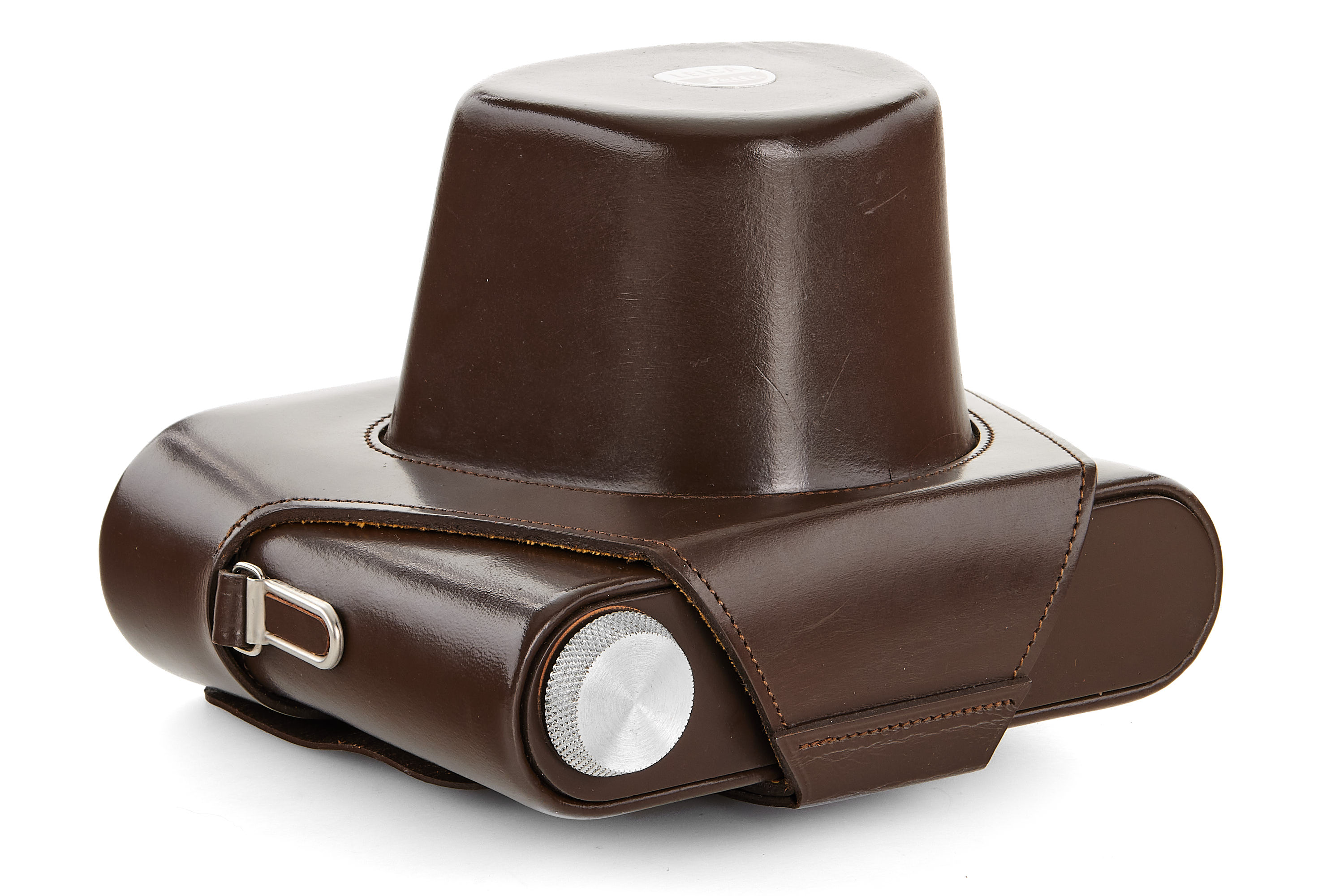 Very interesting leather case for early Leica M2's without a self-timer, with a Leica meter and standard lens mounted, most probably a prototype, in almost mint condition.
