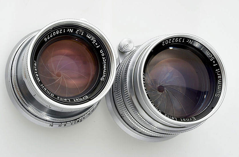 Summarit 1.5/5cm no.1392202 (condition B+, cap, keeper), collapsible Summicron 2/5cm no.1280776 (condition B+), CF Summicron 2/5cm no.1446993 (condition B, with CF attachment), collapsible Elmar 4/9cm no.1262367 (condition A-) (4)