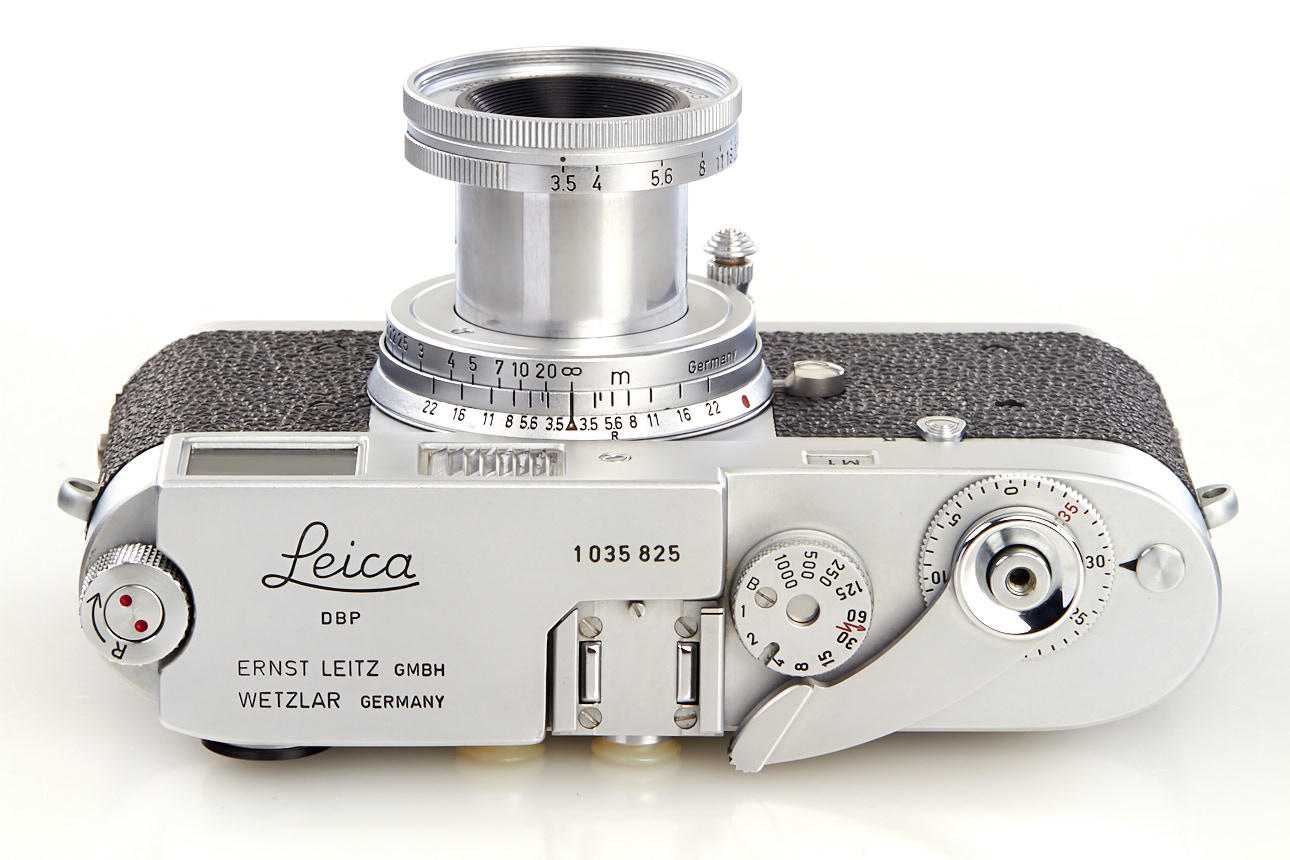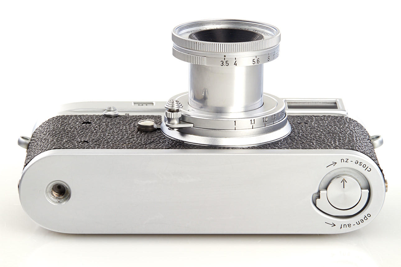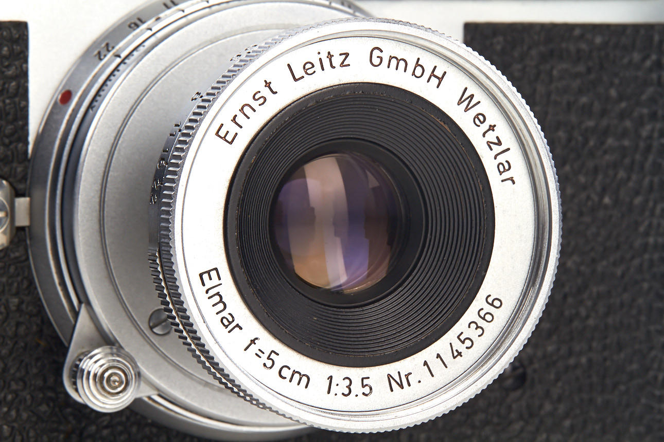 body in mint condition and perfect working order, still 'L' sealed, with perfect early 1954 Elmar 3.5/5cm no.1145366 with clean lenses, cap