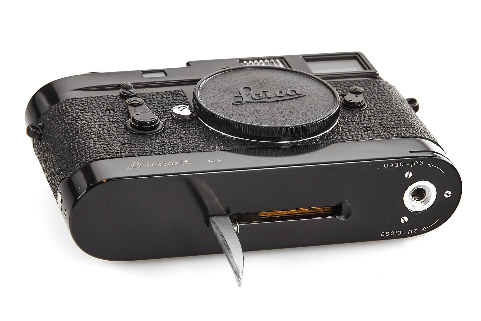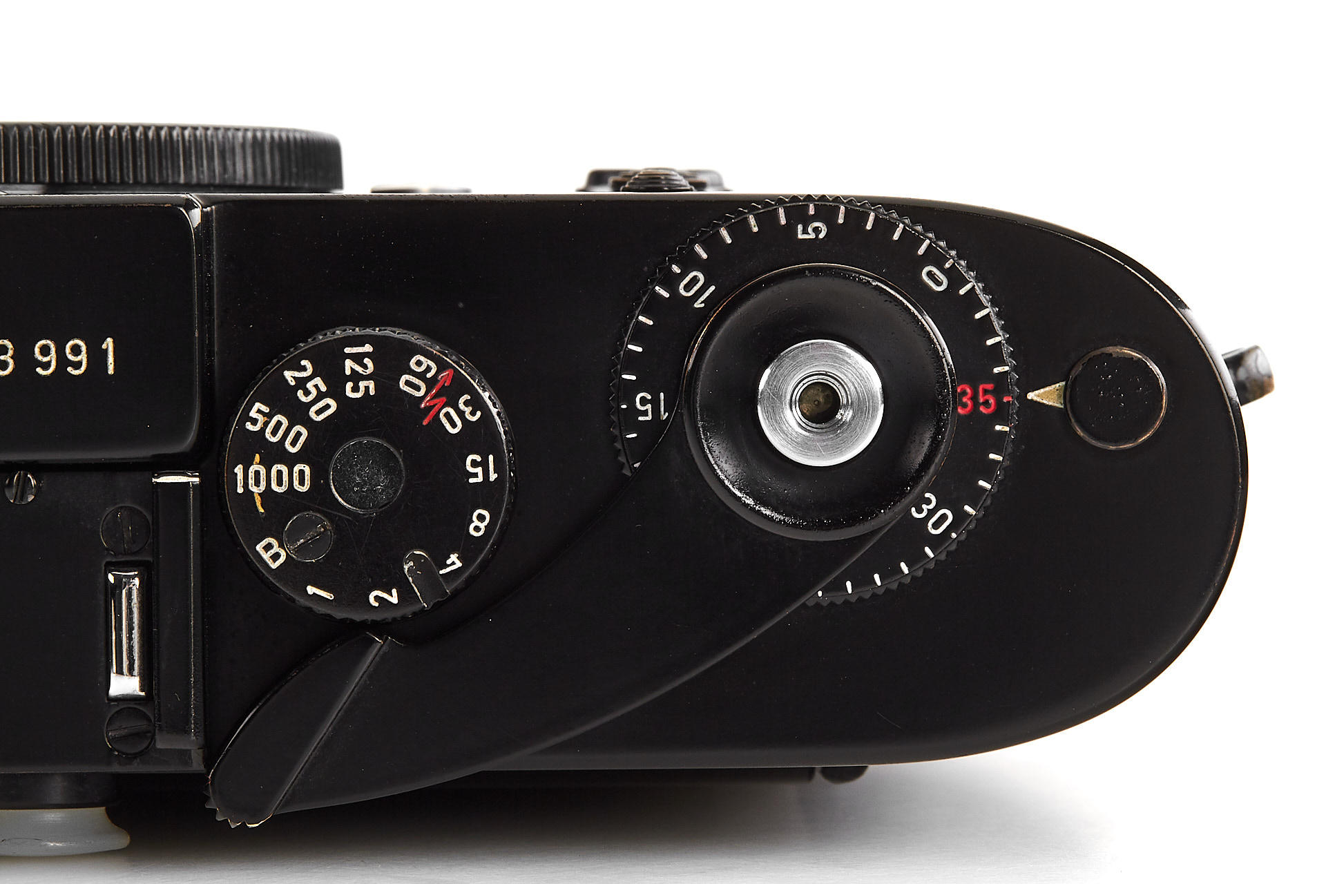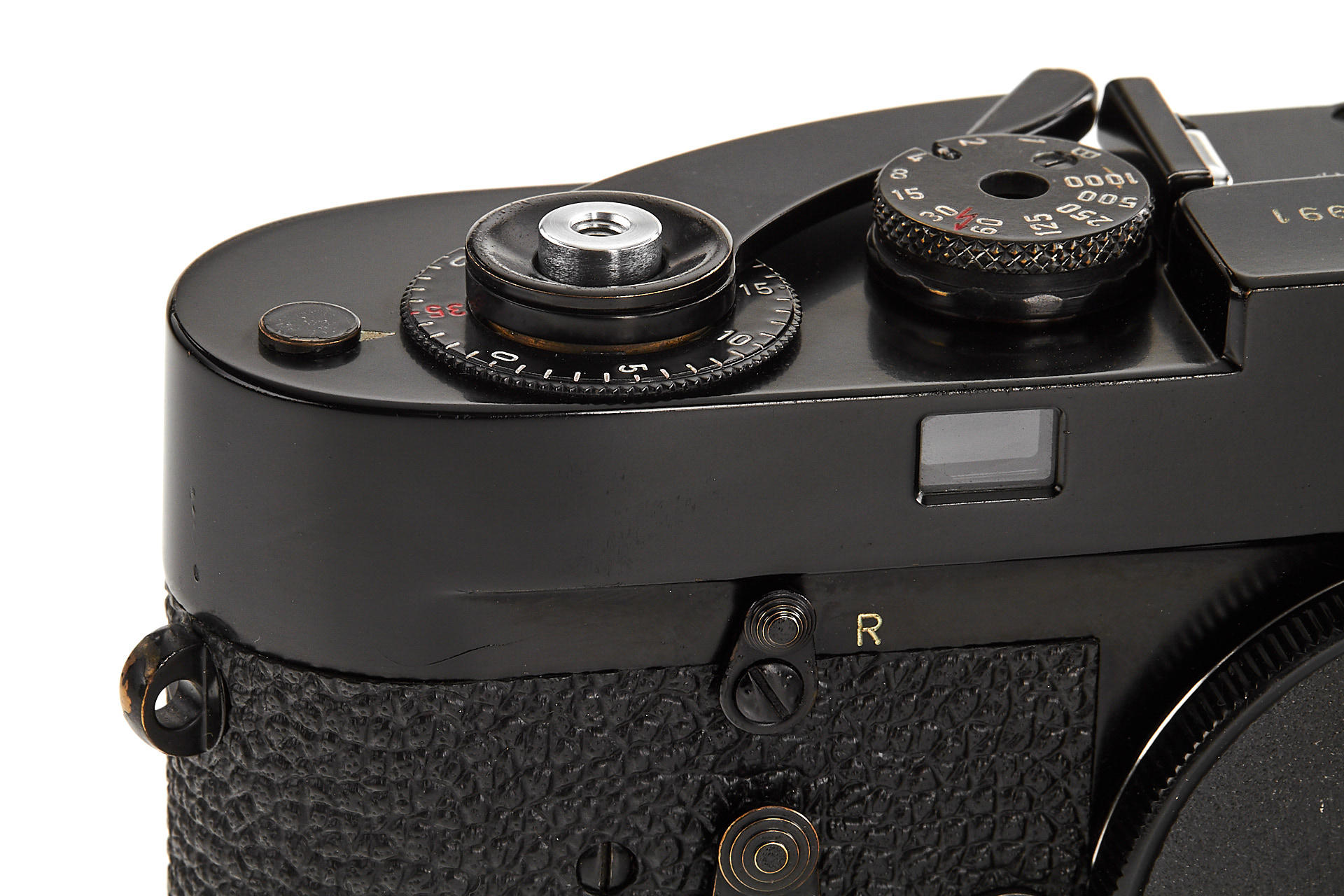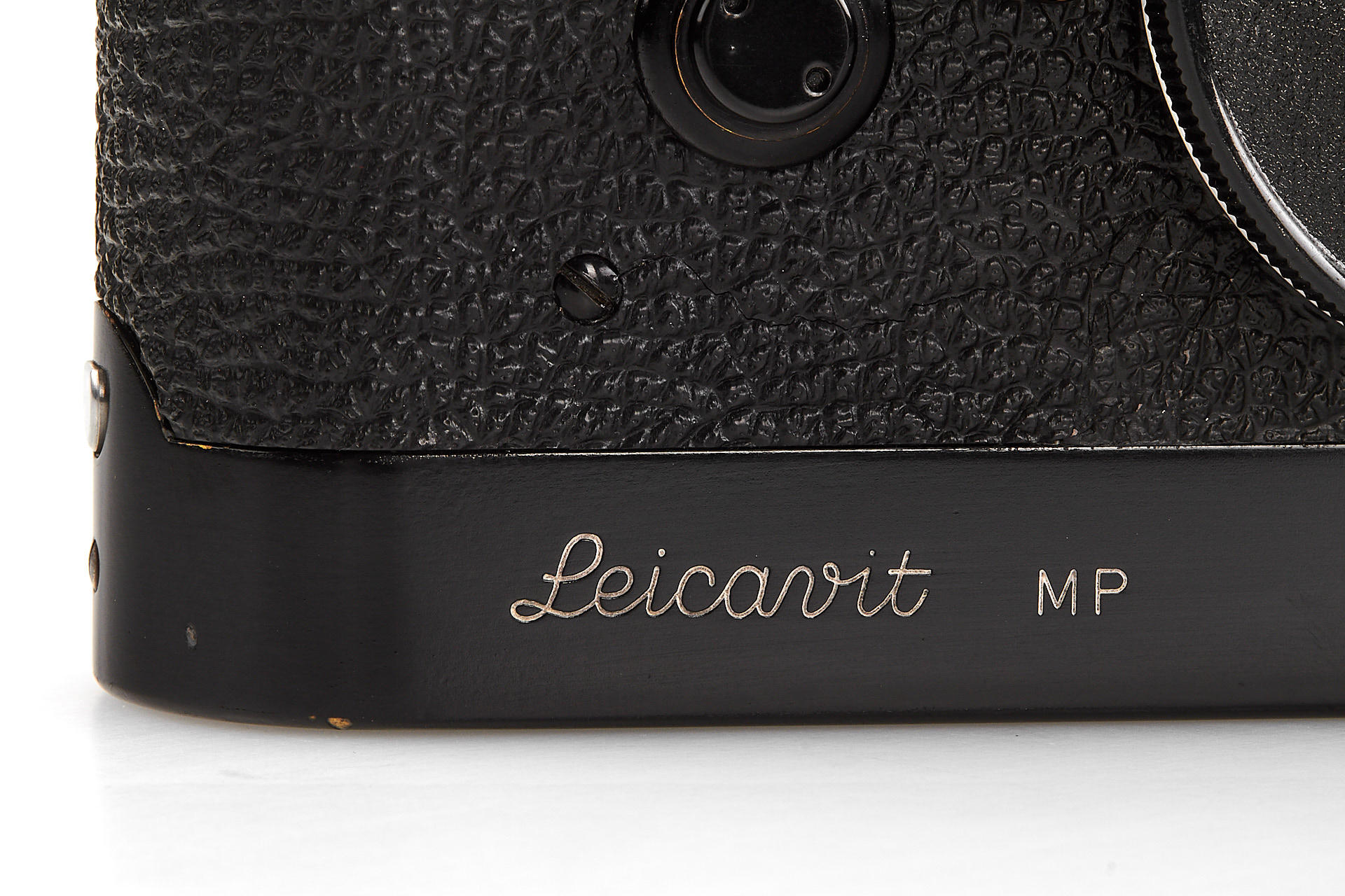 original black paint M2 from an official batch of 200 cameras with serial numbers 1043801-1044000, delivered on May 11th, 1962, in beautiful condition, only minimal signs of use, with sought-after black paint Leicavit MP (paint restored)