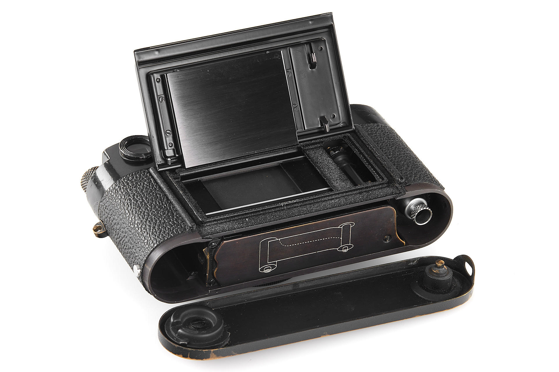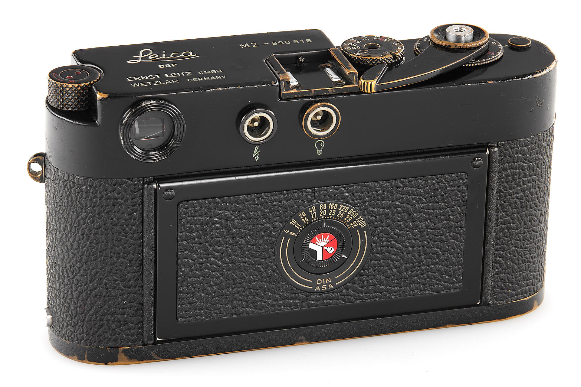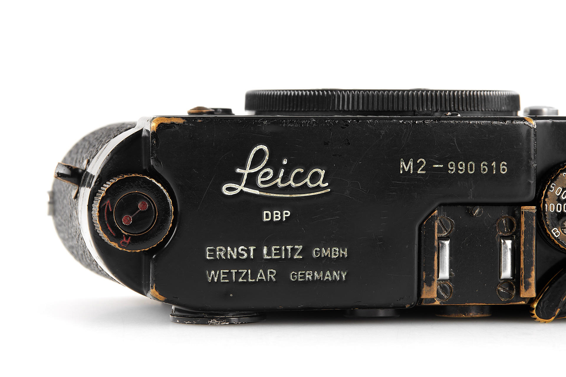 an uncommon, black paint M2 in very good cosmetic condition, with all original features and very good working order, with body cap, the camera has been delivered to Brandt, Stockholm on 08.04.1960 and comes from the second official batch of 250 black paint M2 cameras without self-release