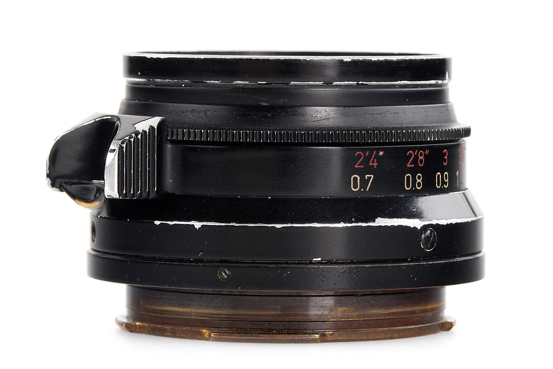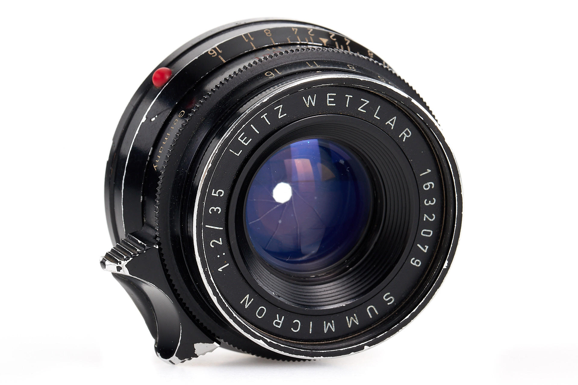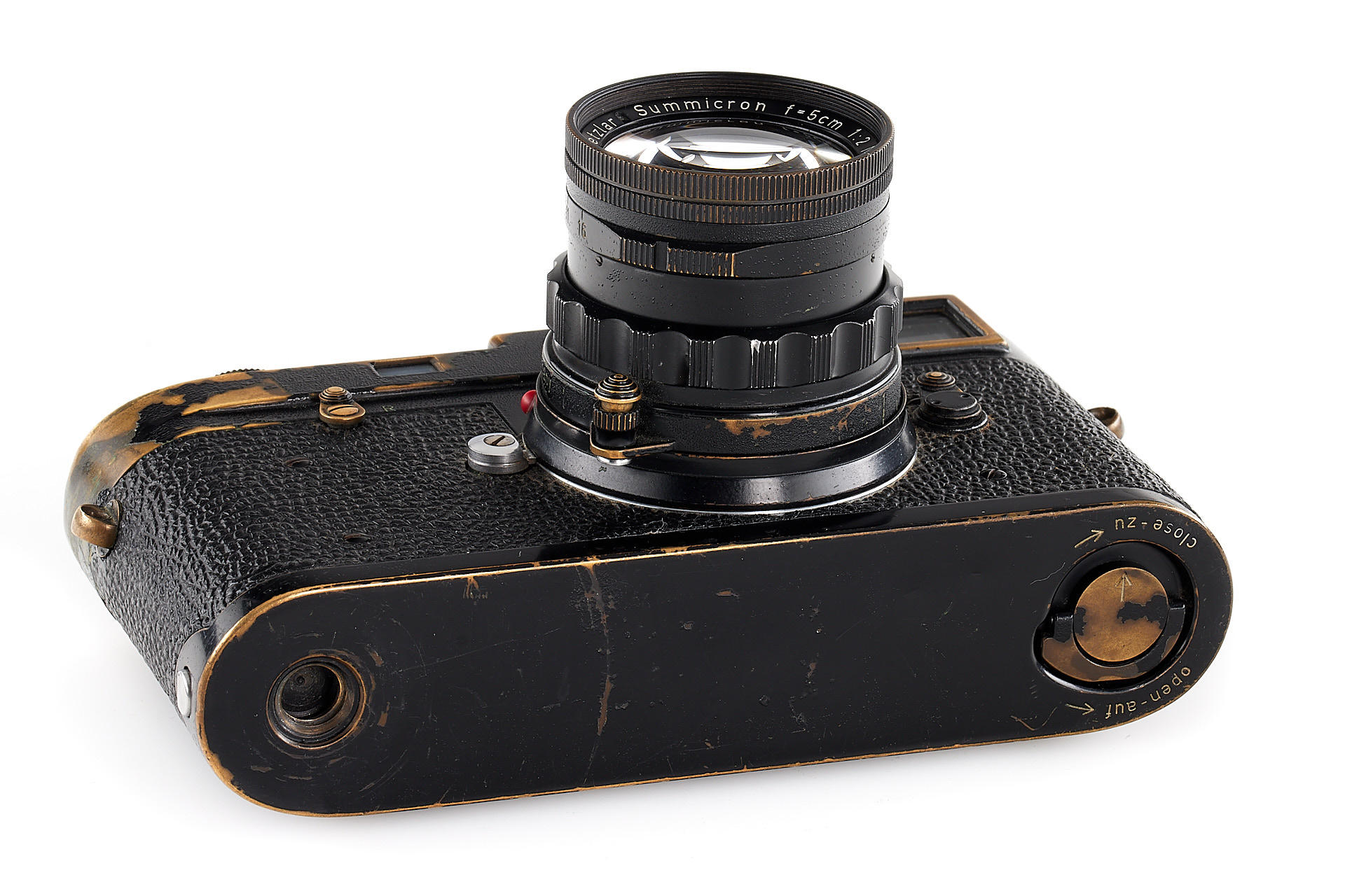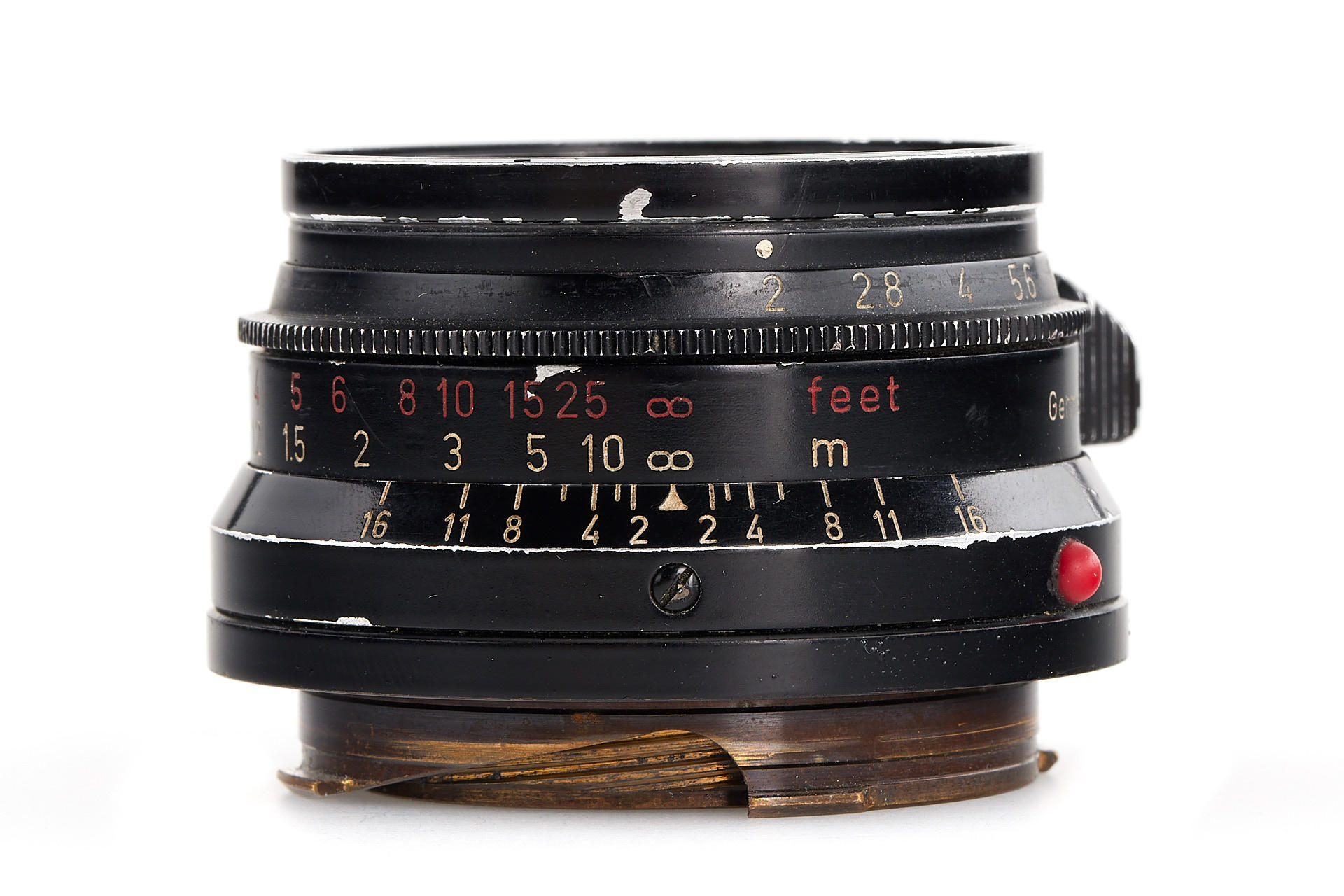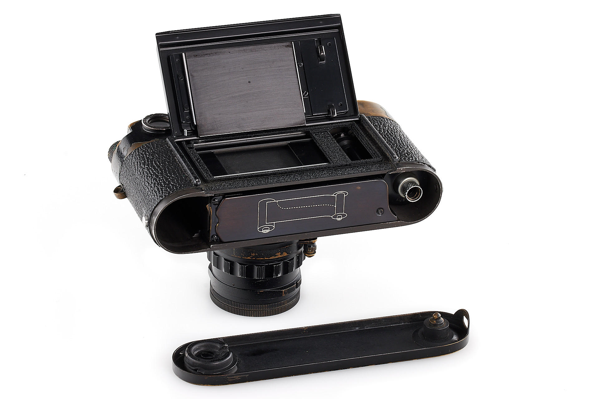 This is the most impressive black paint outfit we have seen. It includes an early Leica M2 body with visible patina, still perfectly working, an early black paint / brass mount Summicron 2/5cm no.1587420 (very good optics, including a black paint cap), a very rare and sought-after black paint / brass mount Summicron 2/35mm no.1632079 (the most desirable version with all parts black painted and not partially black chromed, very good optics with only a few marks on the front element, with matching black paint aluminium front cap). All Parts of the set were delivered to to Tiranty, Paris, the M2 on 28.04.1960, the Summicron 50mm on 07.11.1960, the Summicron 35mm on 28.04.1960. All the parts were then sold to a single owner and kept together since. According to the previous owner the set was initially purchased by Henri Cartier-Bresson, it was then resold, because Bresson preferred to work with a 50mm lens on a M3. The essential quality of this set is that it includes all three original export certificates from Tiranty Paris! It is the first time we've seen such an extensive black paint set and this well documented!