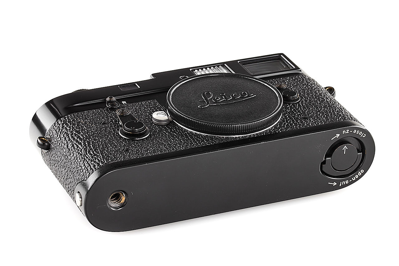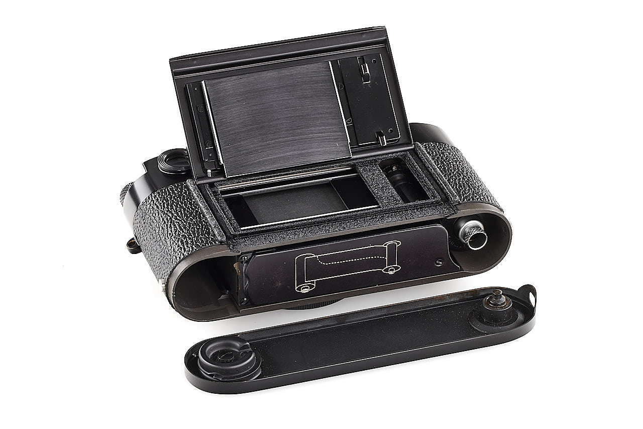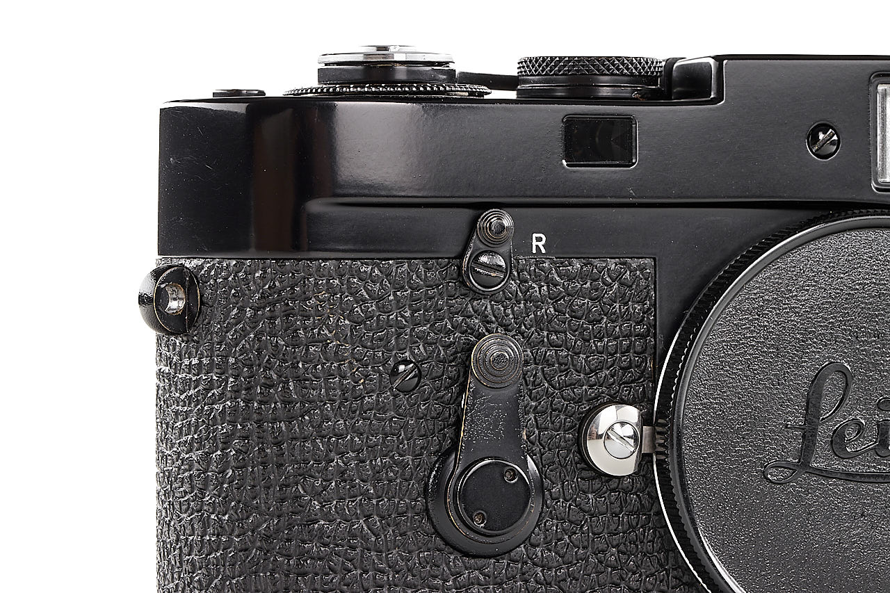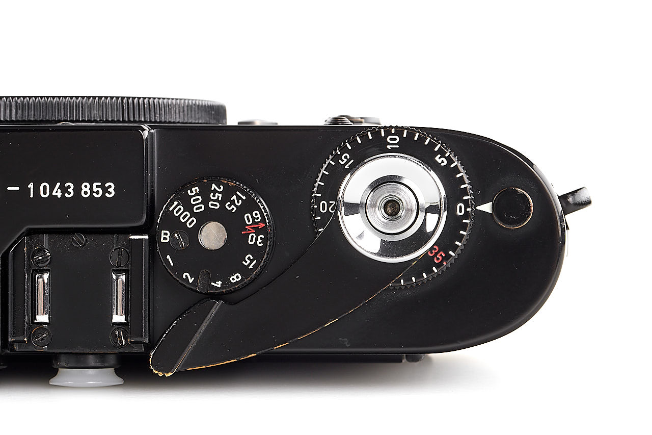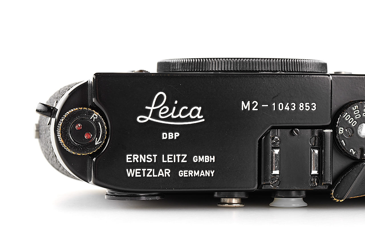An original black paint M2 from an official batch of 200 cameras with self-timer (numbers 1043801 to 1044000), in outstanding condition and working order, almost no signs of use, with body cap and maker's box, hard to find in this good condition!