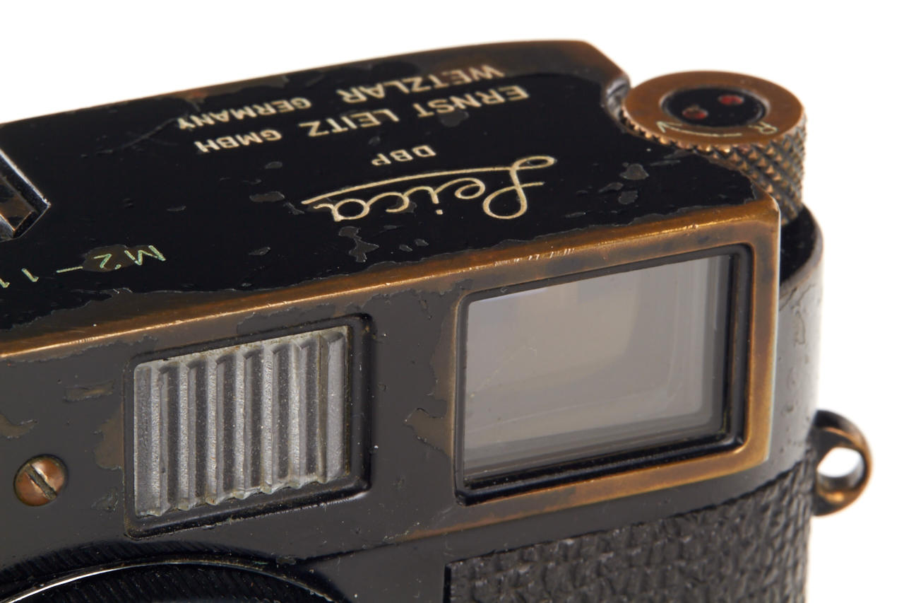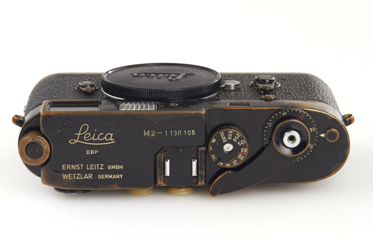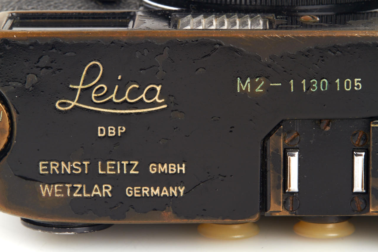 fully original late type Leica M2 black paint from the last batch, in good and perfect working condition, brassing but no dents, clean finder, body cap, with owner's name 'D.R. ADSHEAD' engraved on rear of top plate