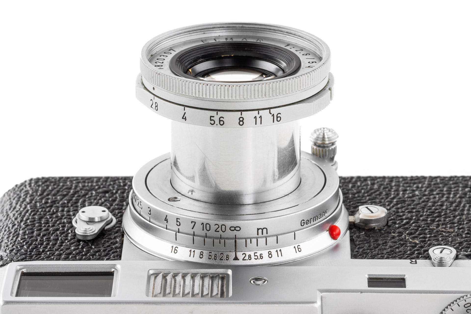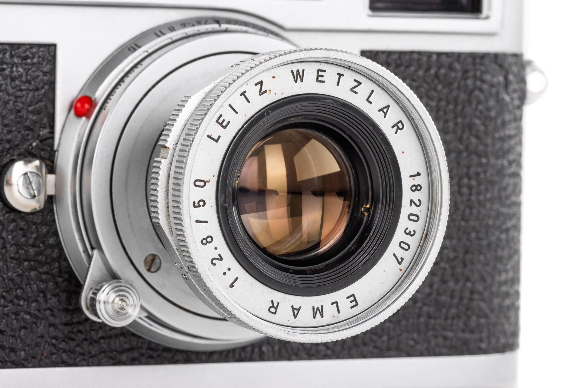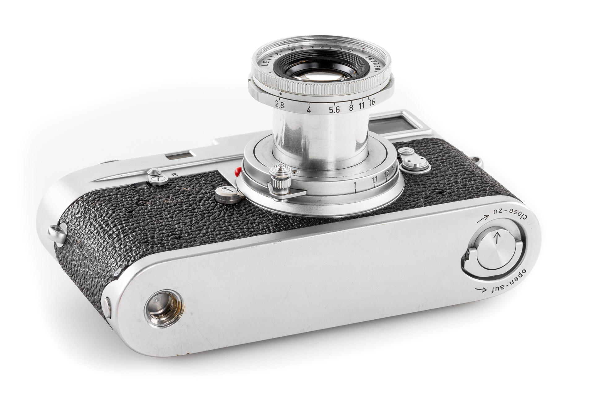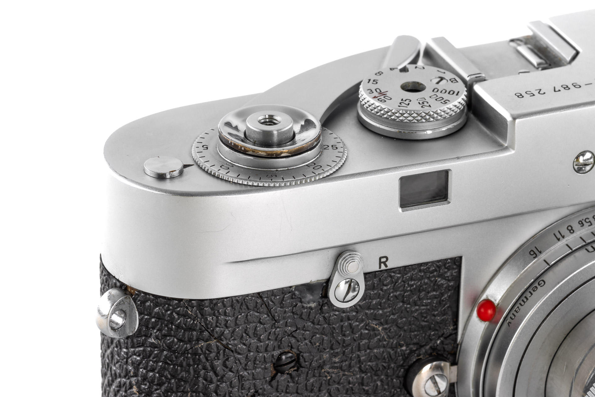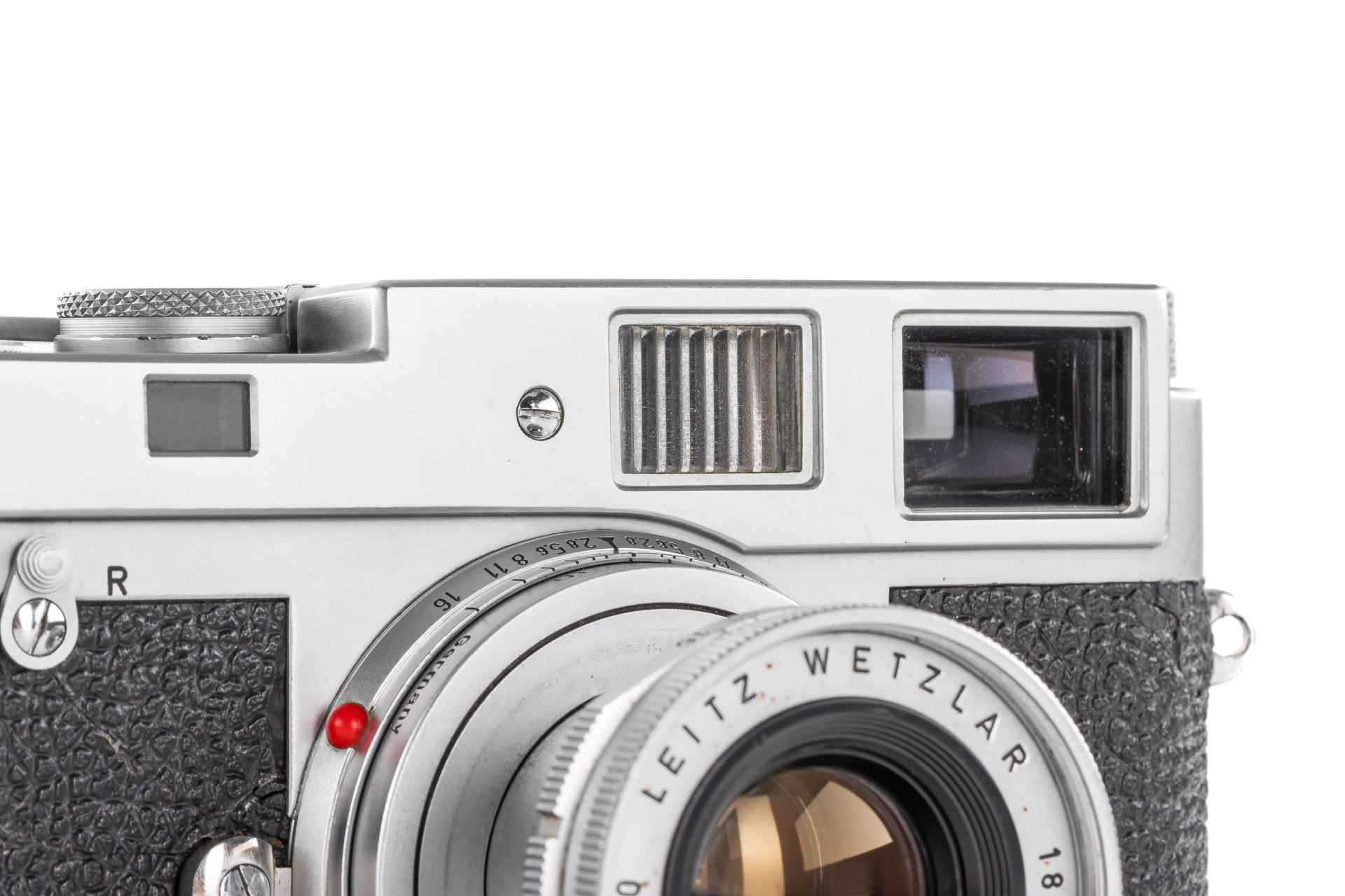 Very rare Leica M2 produced in Canada, engraved "Ernst Leitz GMBH Wetzlar Germany" on the top plate, note the different 'M2' engraving, in good cosmetic condition and working order. Only about 1,500 units of the Leica M2 were assembled at the Leitz plant in Canada, while the total production number was more than 76.000. Together with Elmar 2.8/50mm no.1820307 (1962), with very unusual 'Leica Canada' front lens cap (E39 threaded)