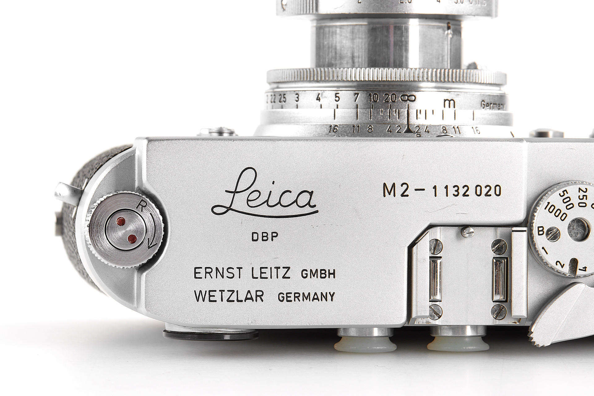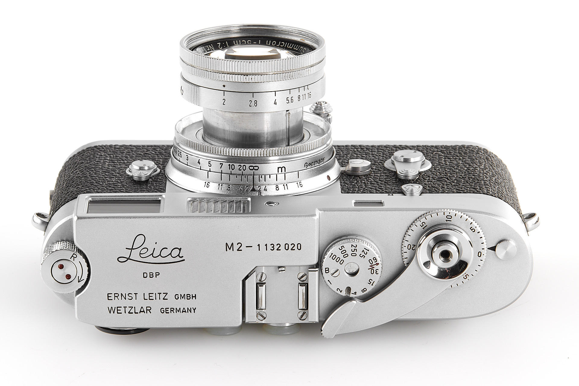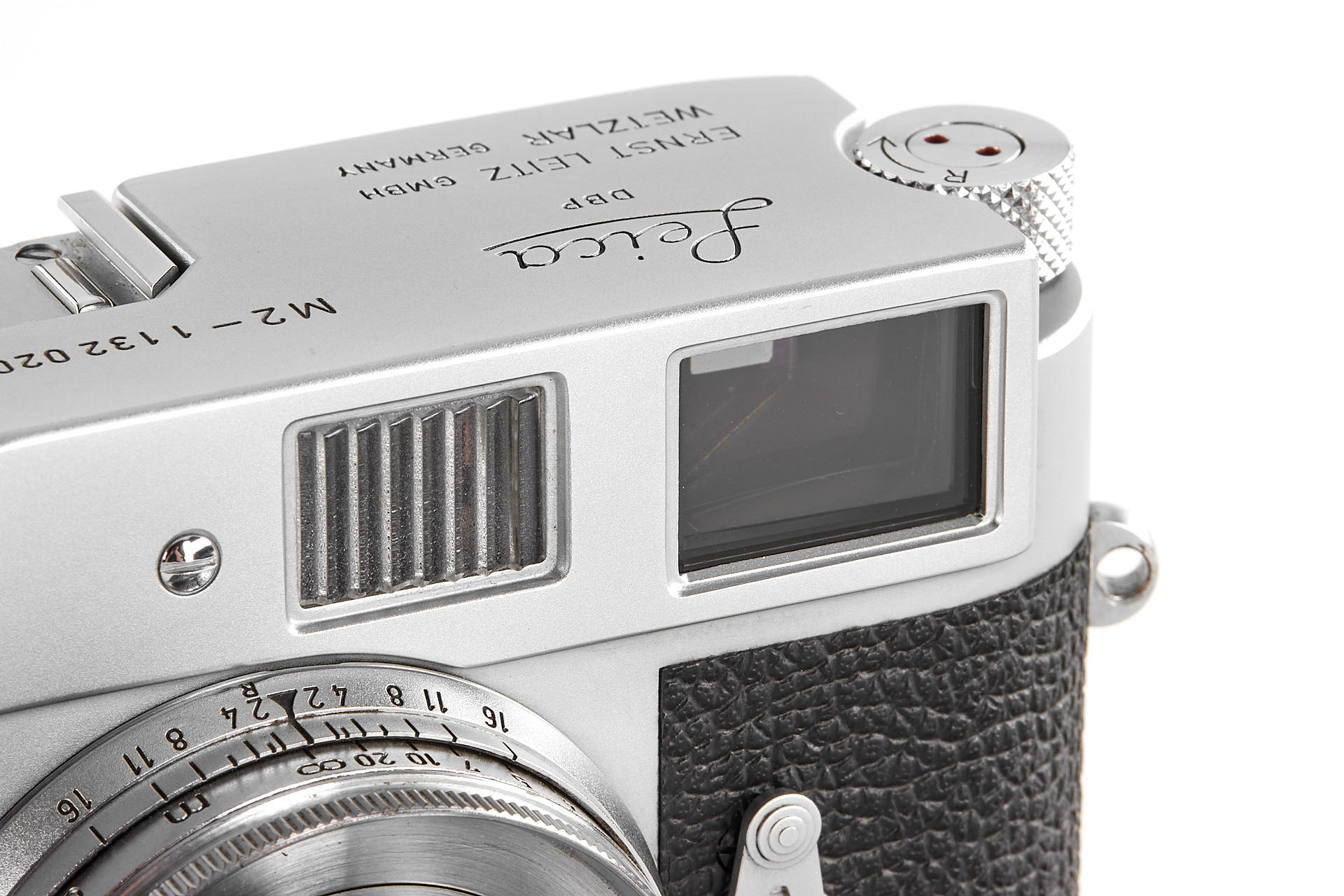 The second version M2 in beautiful condition and good working order, with collapsible Summicron 2/5cm no.1193800 (very good optics with only a few hairline marks, matching front cap)