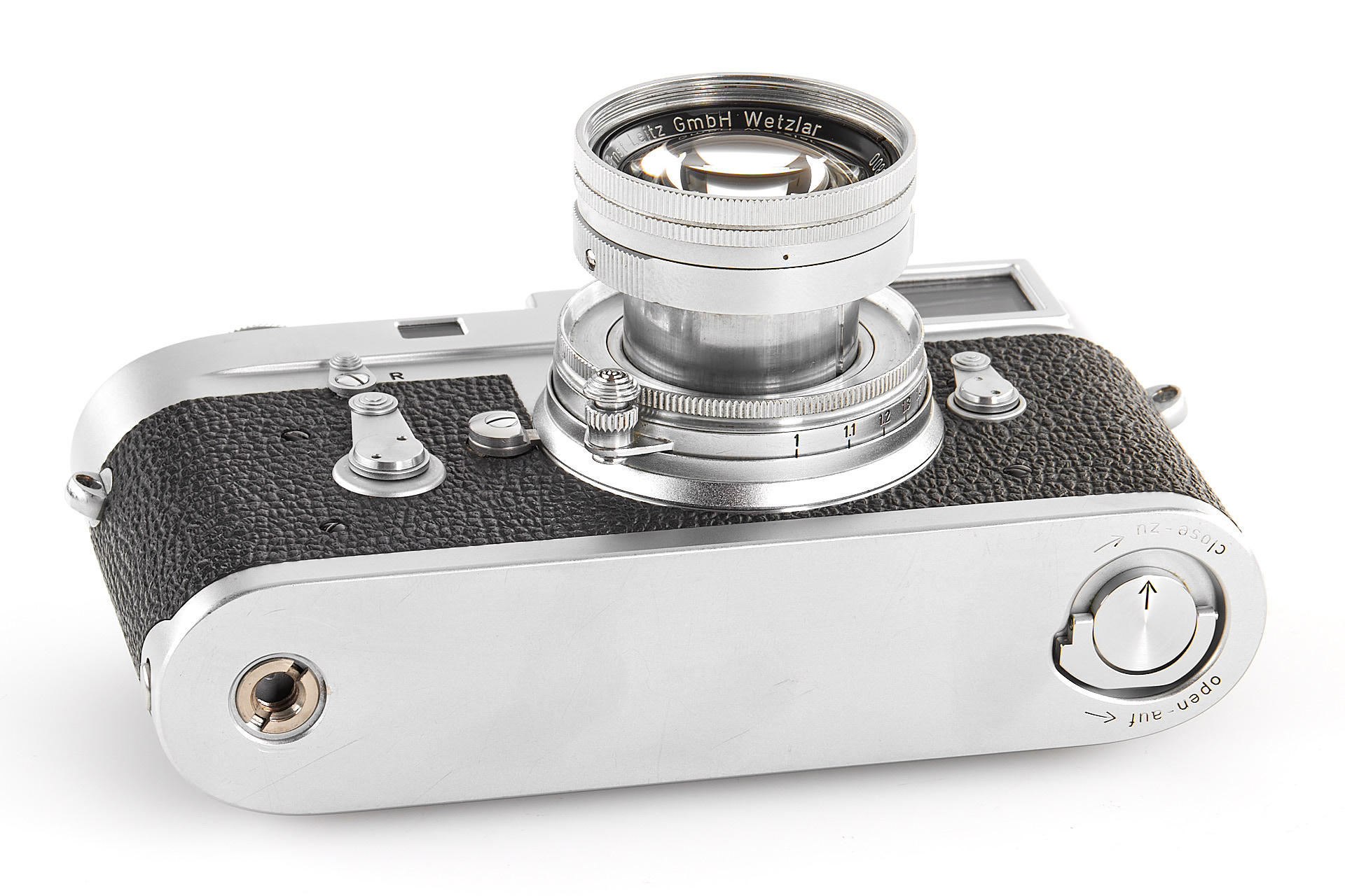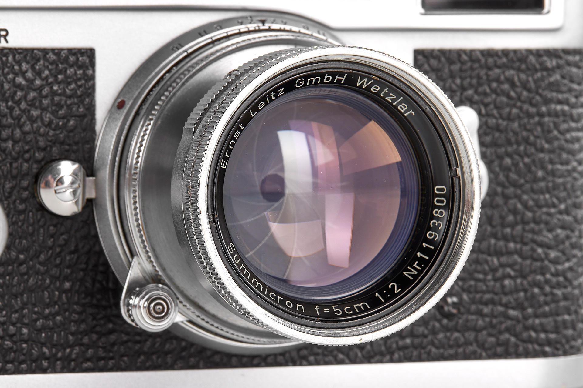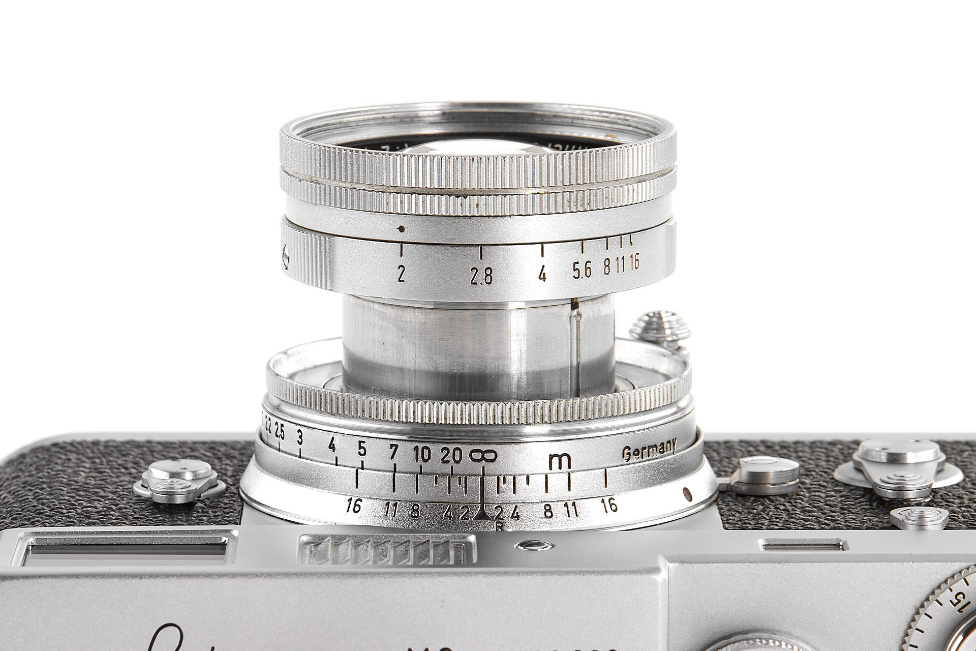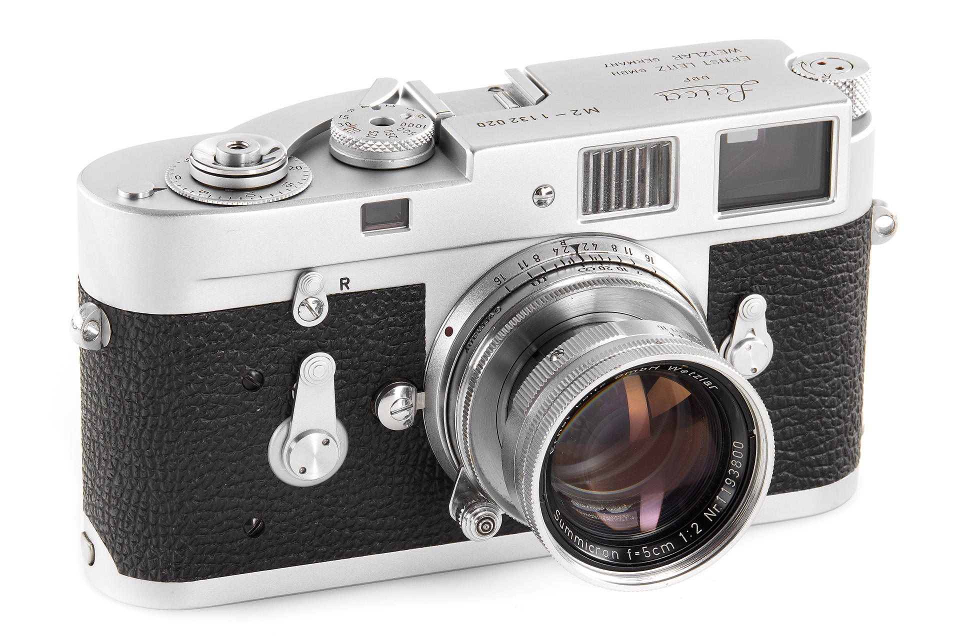 The second version M2 in beautiful condition and good working order, with collapsible Summicron 2/5cm no.1193800 (very good optics with only a few hairline marks, matching front cap)