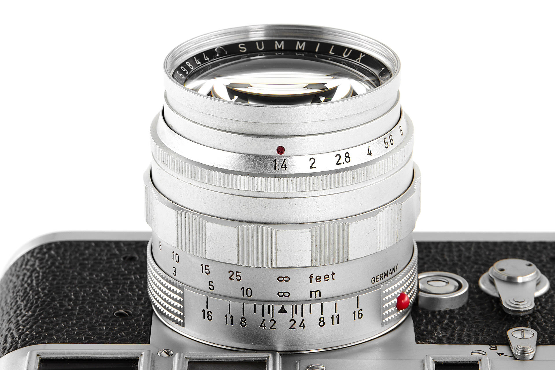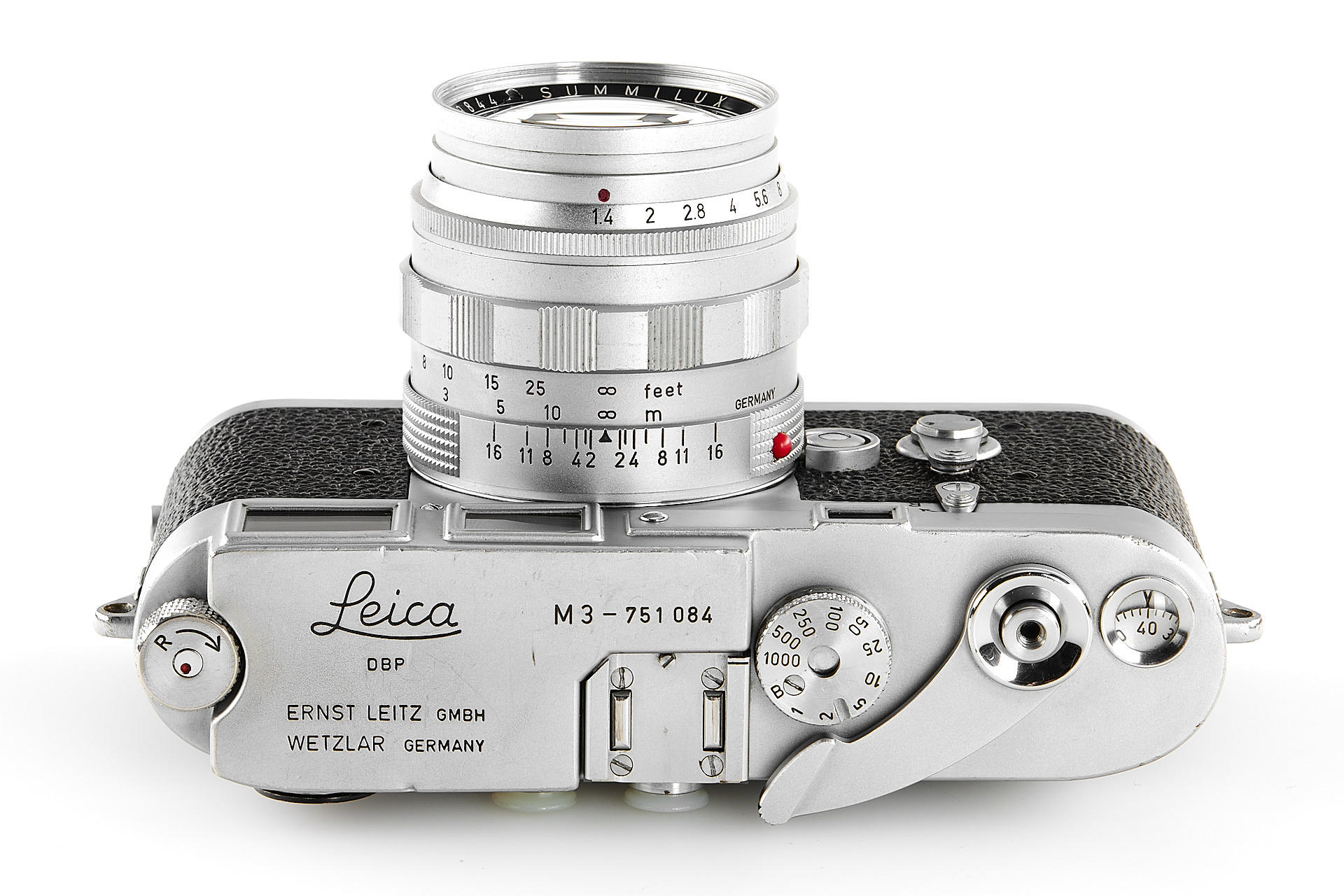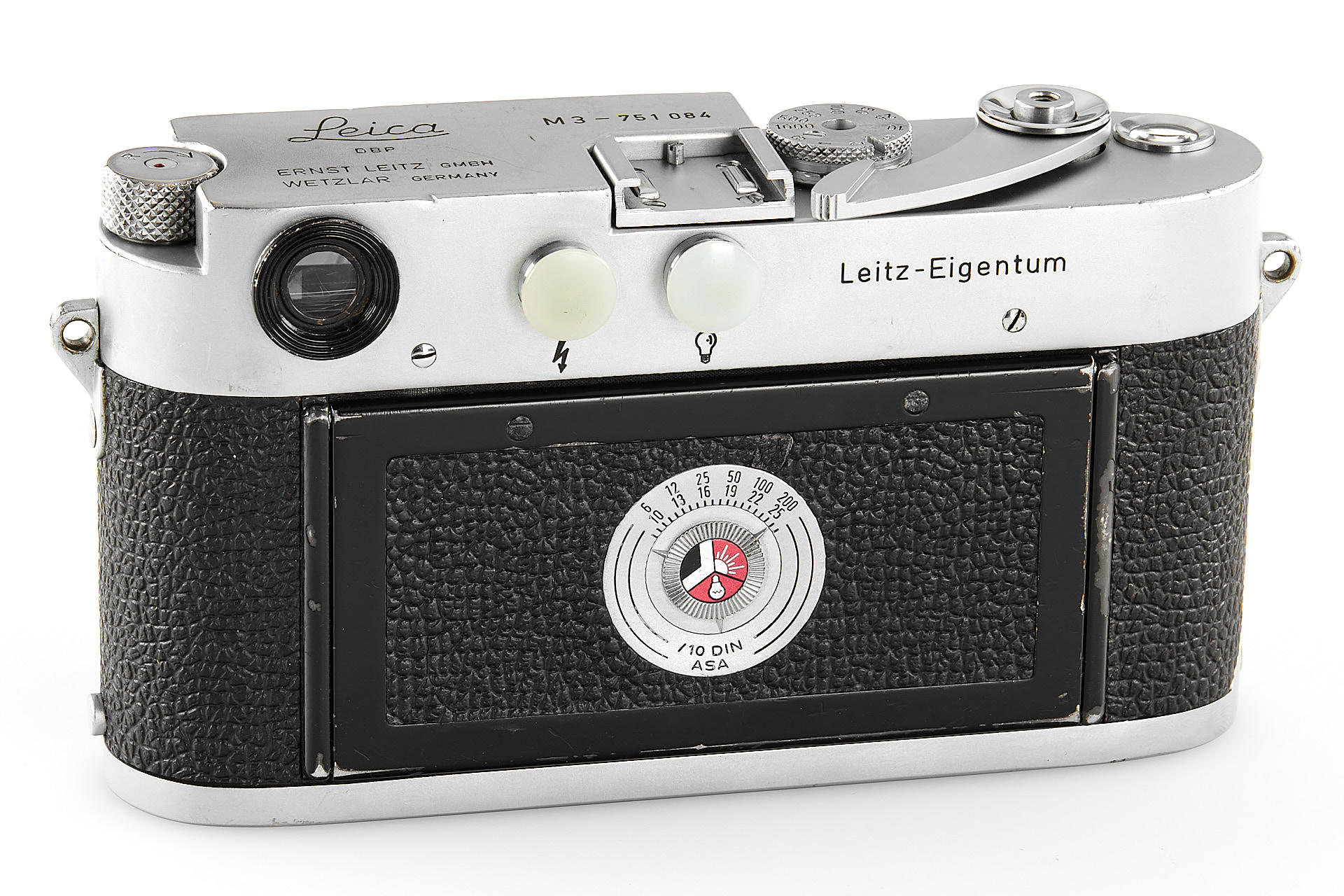 a very rare, orginal 'Leitz-Eigentum' Leica M3 (property of Leitz), in good condition and working order, the originality of the camera has been confirmed by an entry in the Leitz Archives Control Book, including an interesting Summilux 1.4/50mm no.1759844, also engraved with 'Leiz-Eigentum' and with a small red asterisk near the serial number