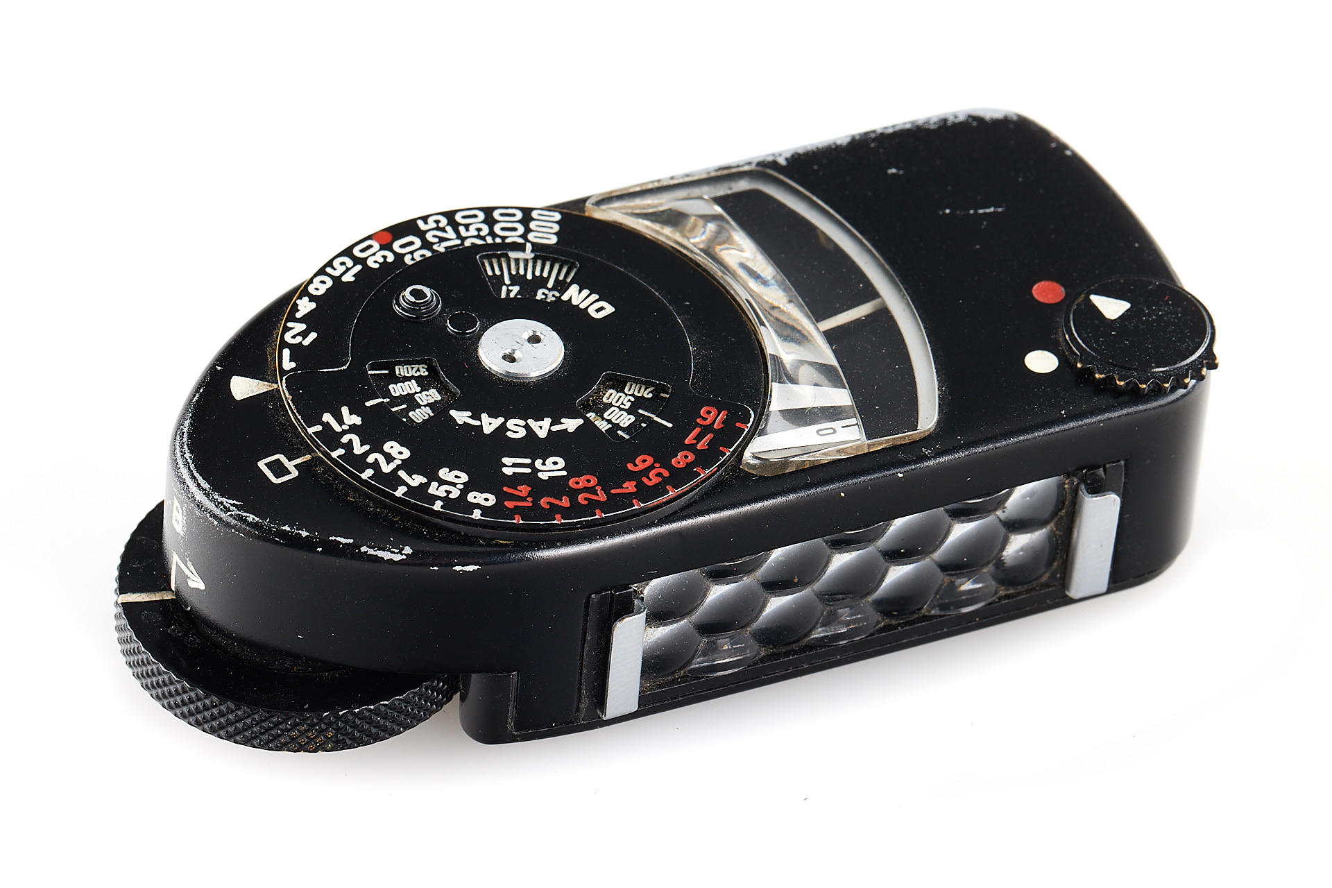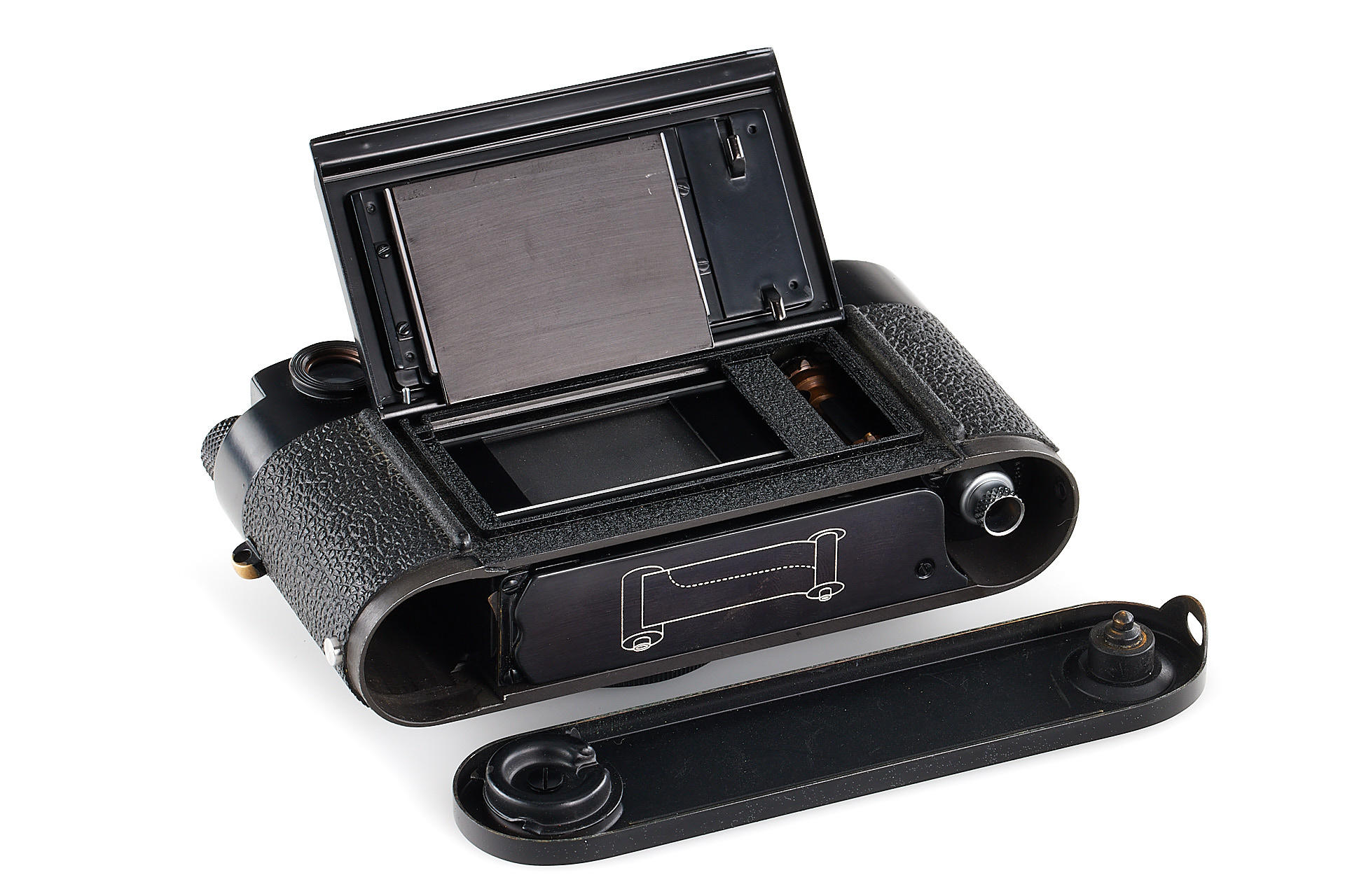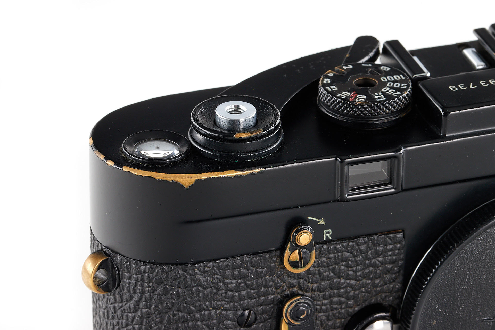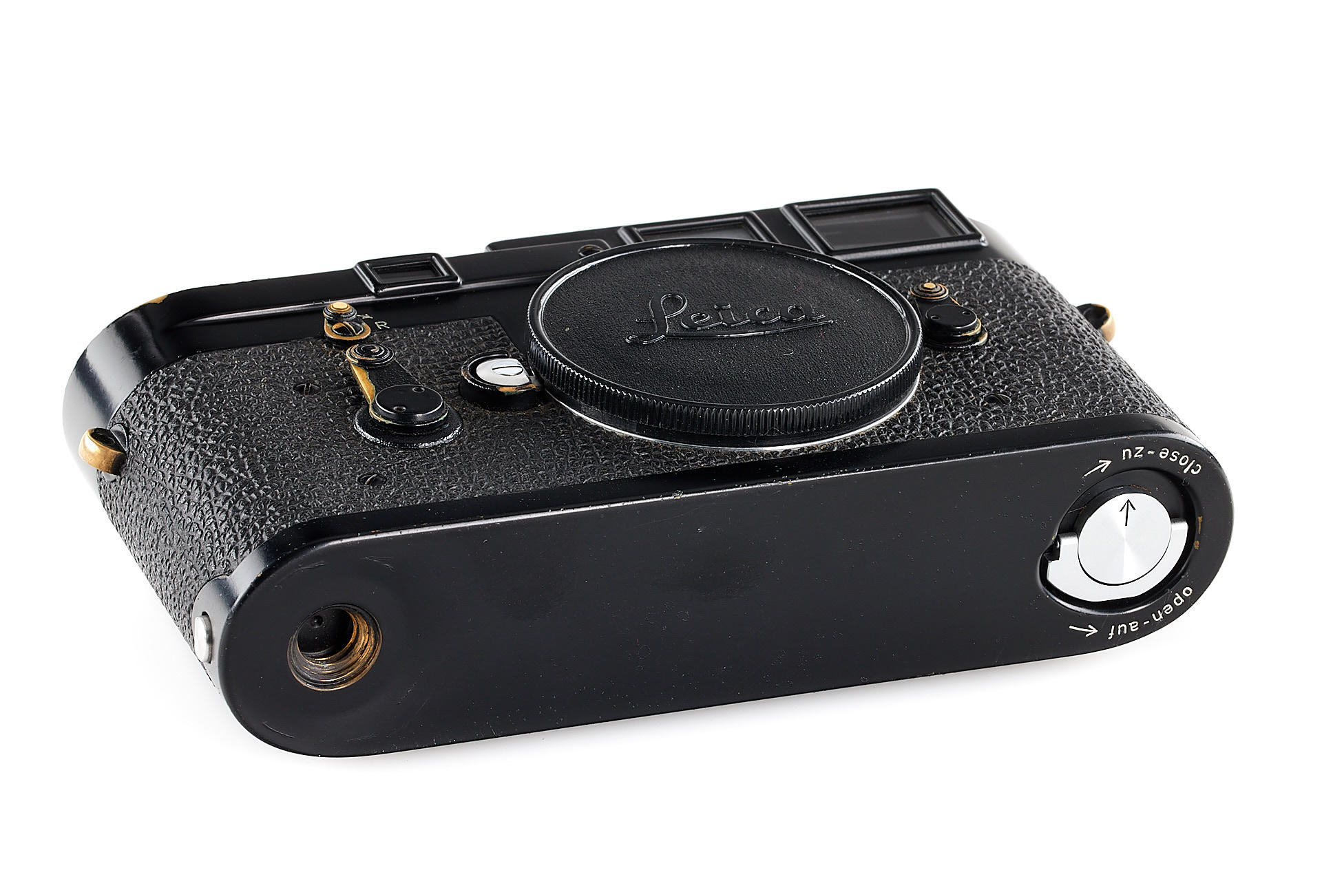 sought-after, original black paint M3 in excellent cosmetic condition, from the official batch of 250 cameras issued in 1960, the body still 'L'-sealed, with slight patina around the edges and small bubbles appearing in the paint, including maker's box with matching number, leather case, original body cap, Swedish instructions and black paint Leica-Meter MC