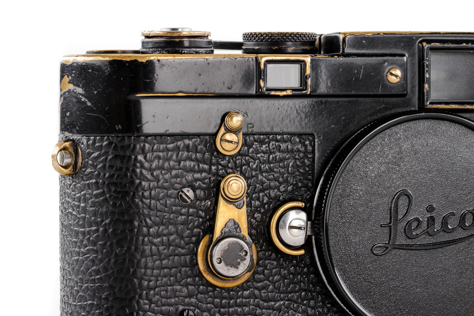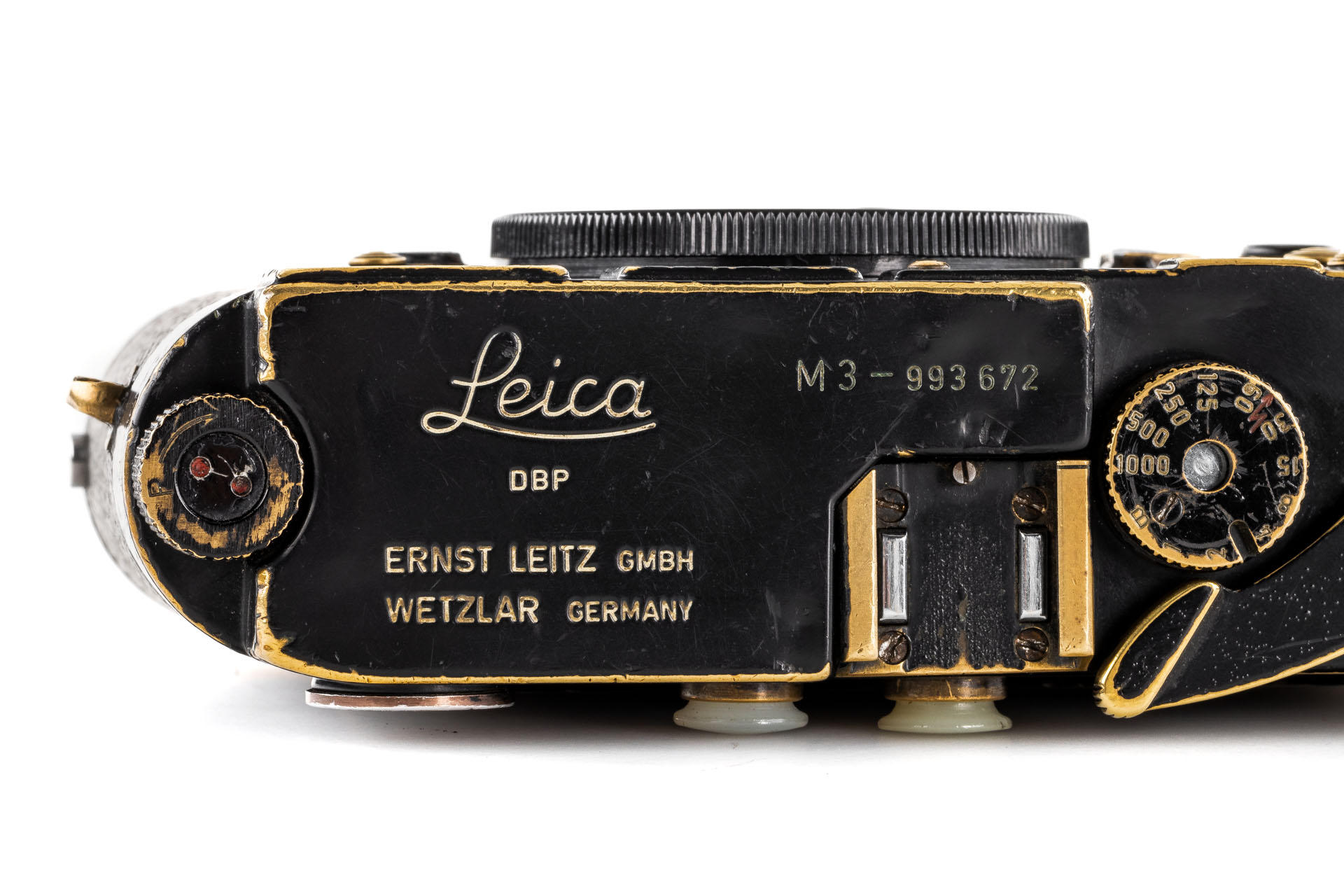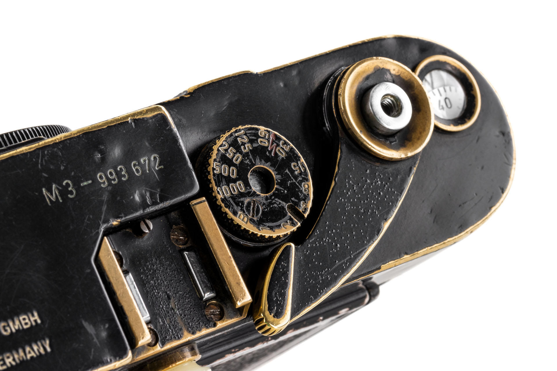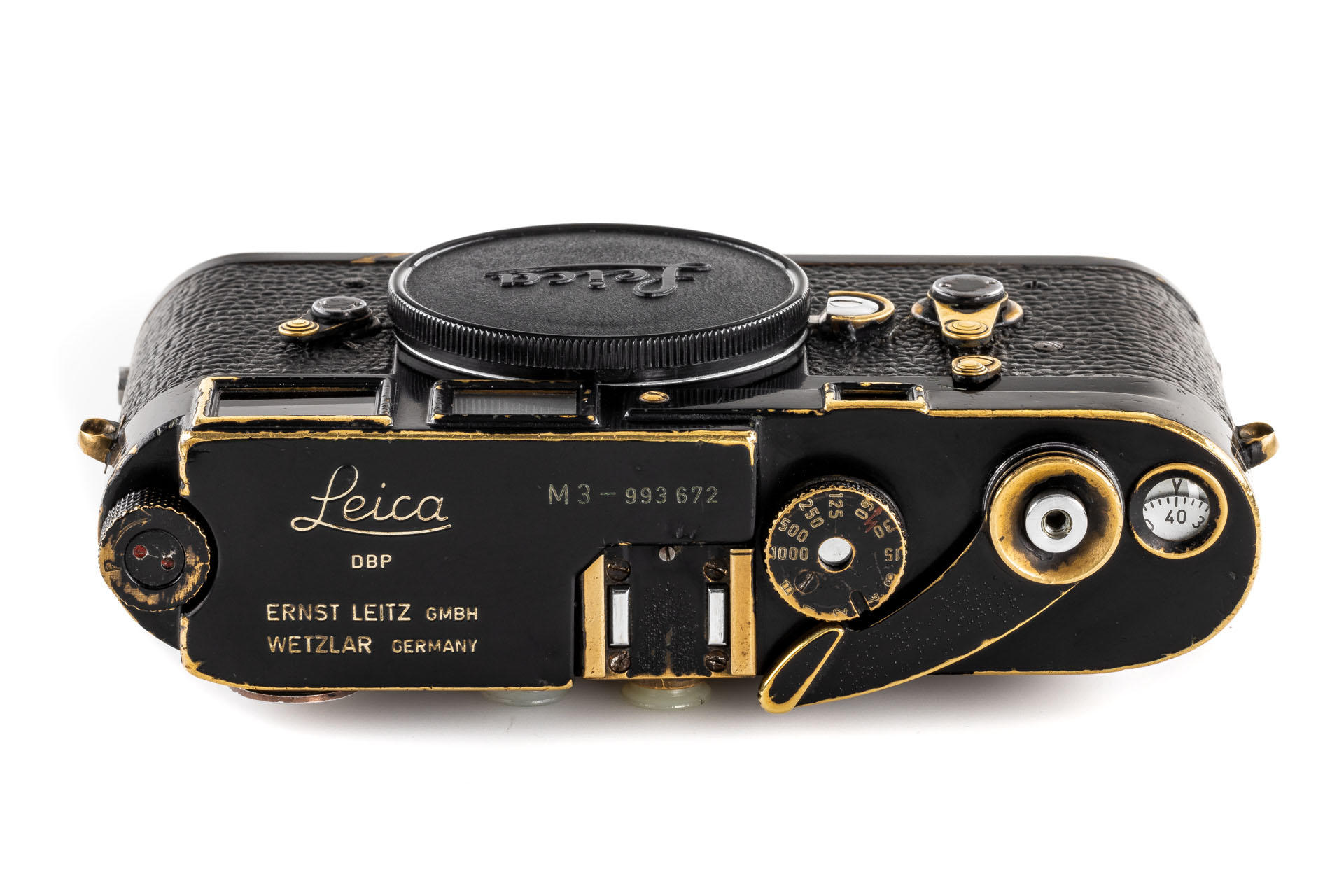 sought-after, original Leica M3 black paint from the second official production batch issued in 1960, in very good condition, an attractive patina of use around the edges, perfect working order, with an unnumbered M3 box and German instructions, the camera was delivered to Brandt, Sweden, on 14.04.1960.