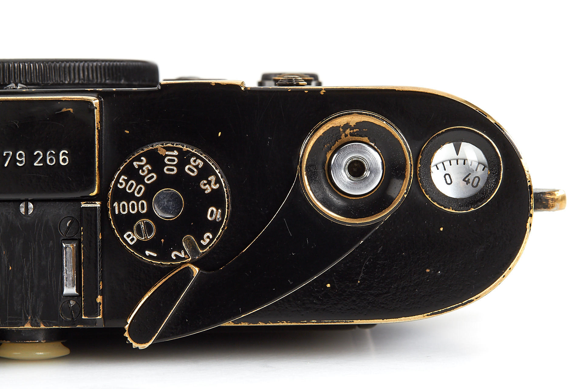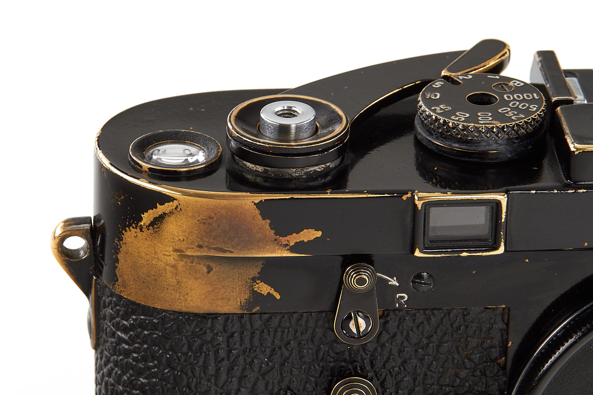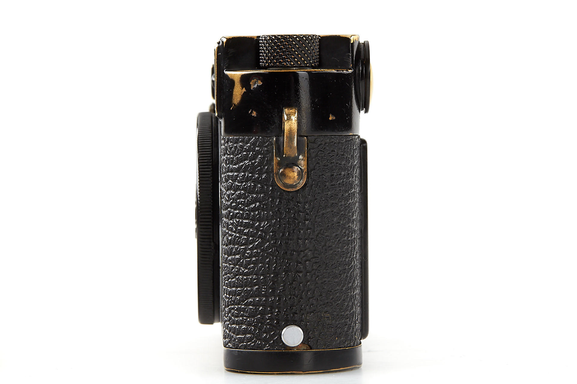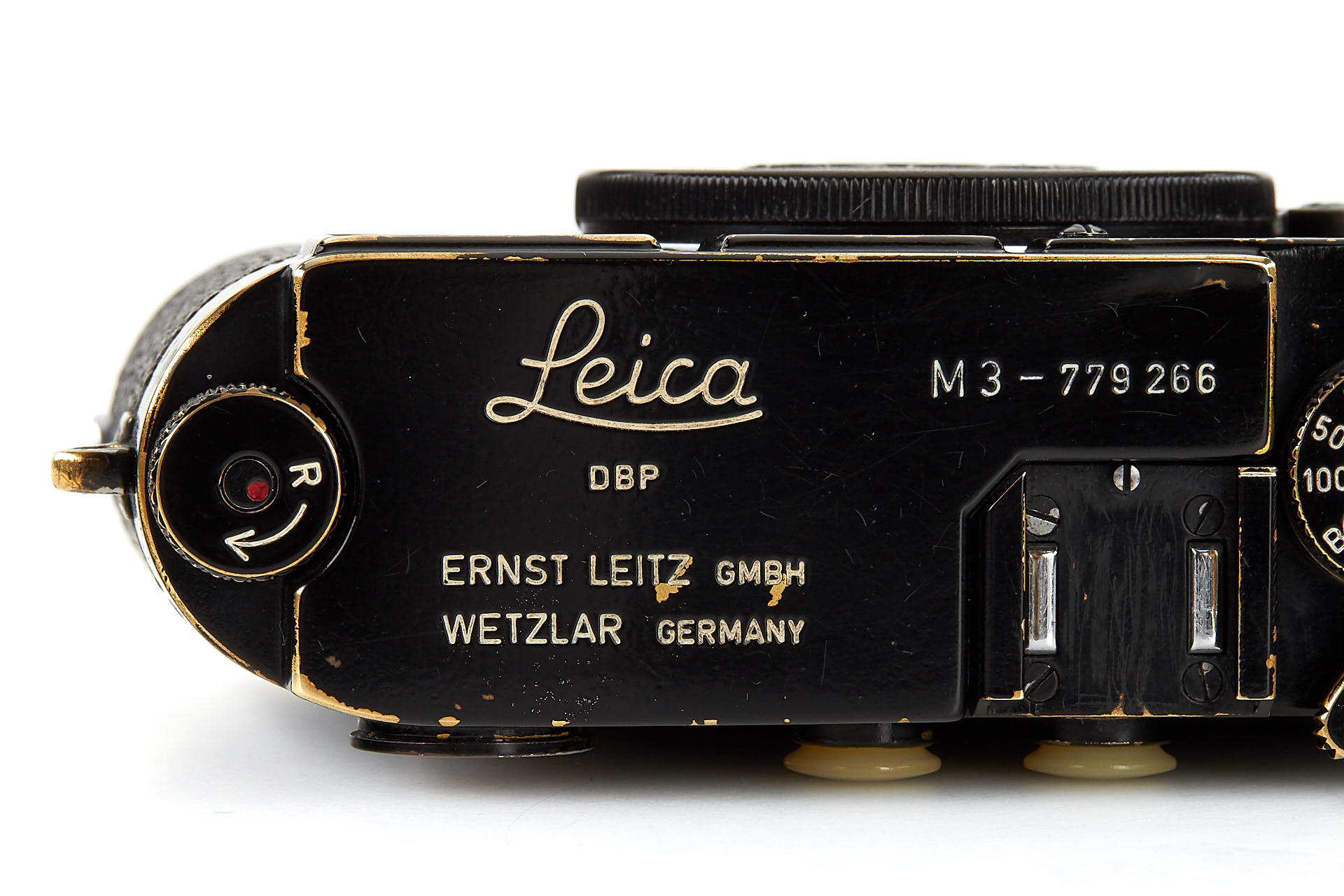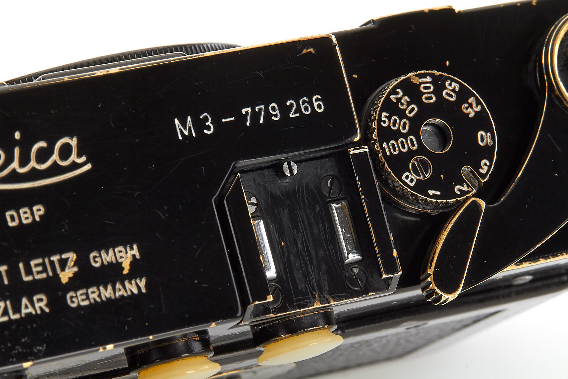 double stroke M3, converted by Leitz NY on customer's order to black paint, in fine condition, and very good working order, with leather case, control tag, Leitz NY warranty card from 1956 with the matching serial number and 'Black M3' note