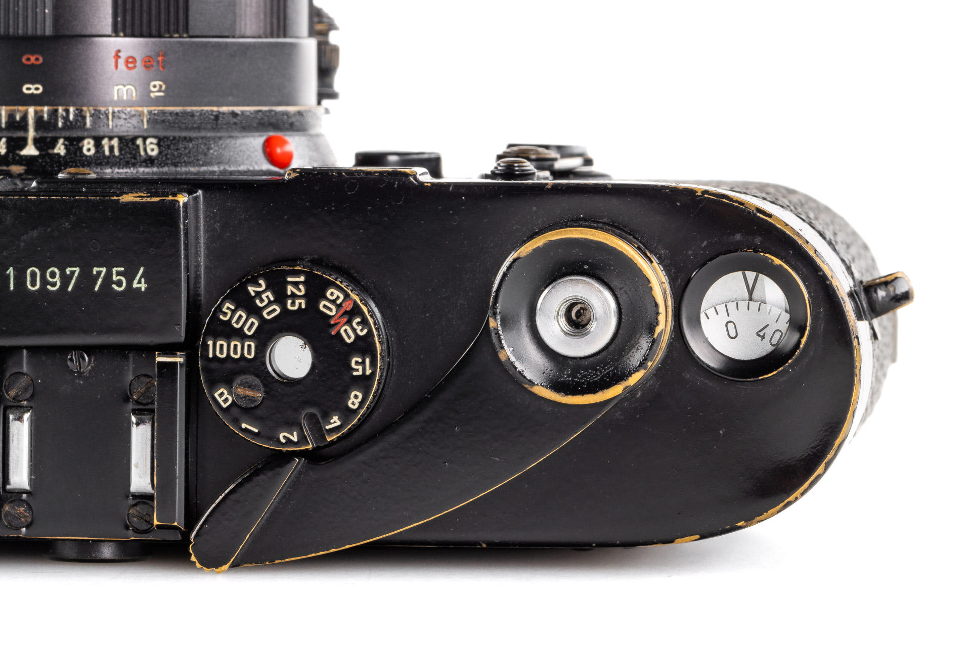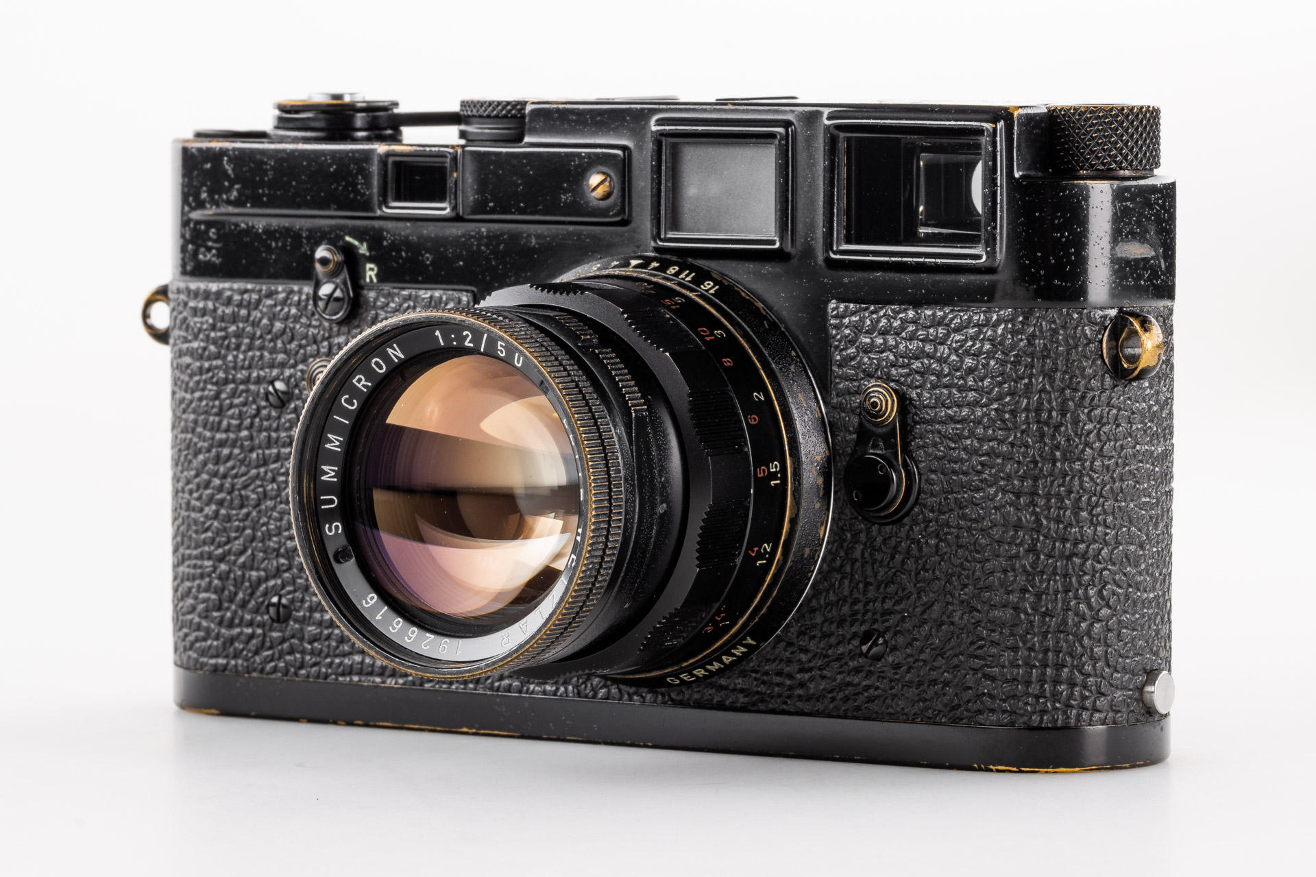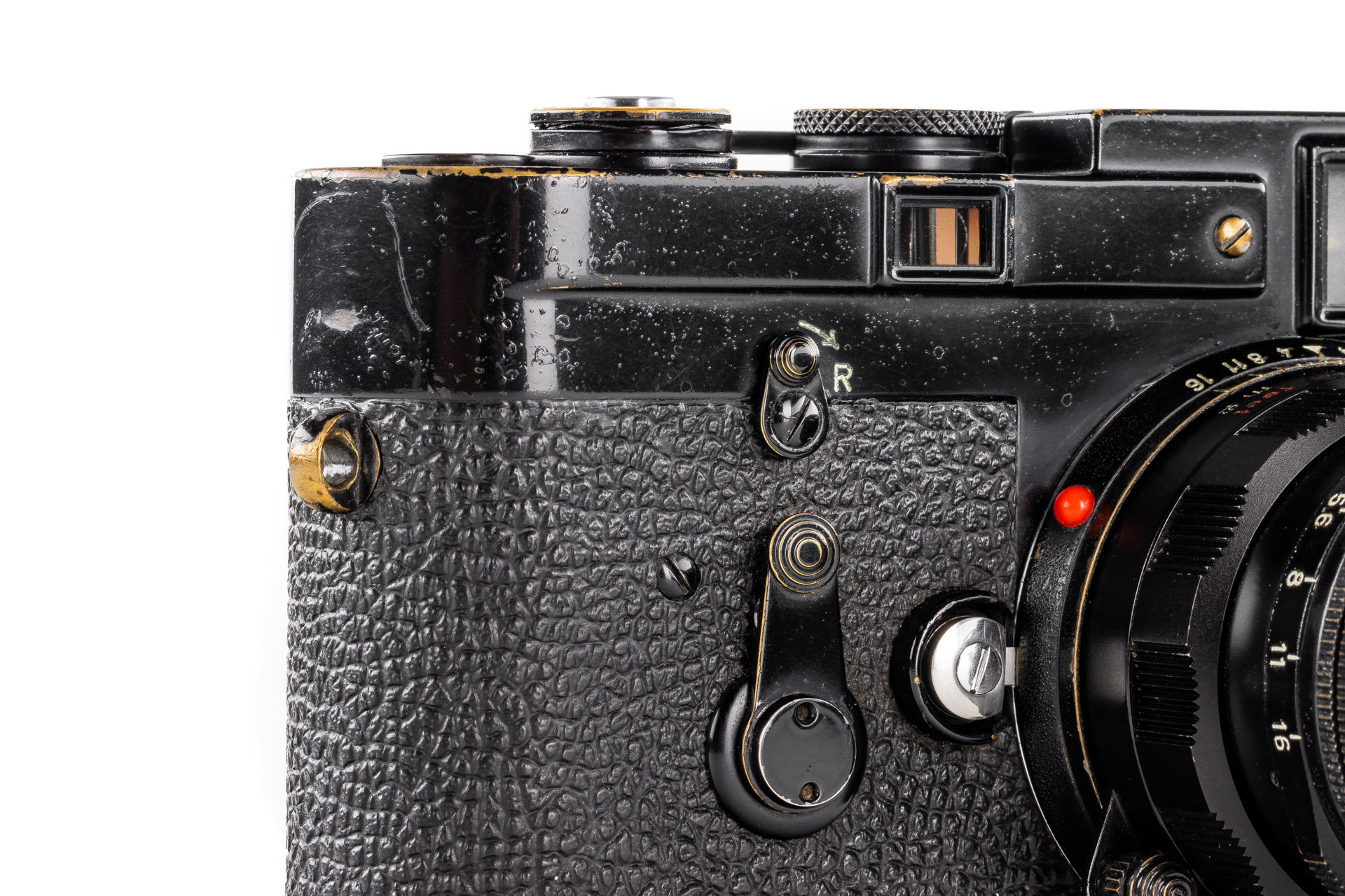 A black paint M3 from an official batch of 150 cameras delivered in 1964 (nos.1097701-1097850), in beautiful and original condition with its most desirable patina showing the typical bubbles appearing in the paint, a reference number hand-engraved on the bottom plate, with a beautiful, matching black paint Summicron 2/50mm no.1926616 issued in 1962, with very good optics including a black paint lens cap, a truly classic and sought-after combination, the camera was initially delivered to Brandt, Sweden, on 18.08.1965, the lens to Copenhagen, on 12.07.1966