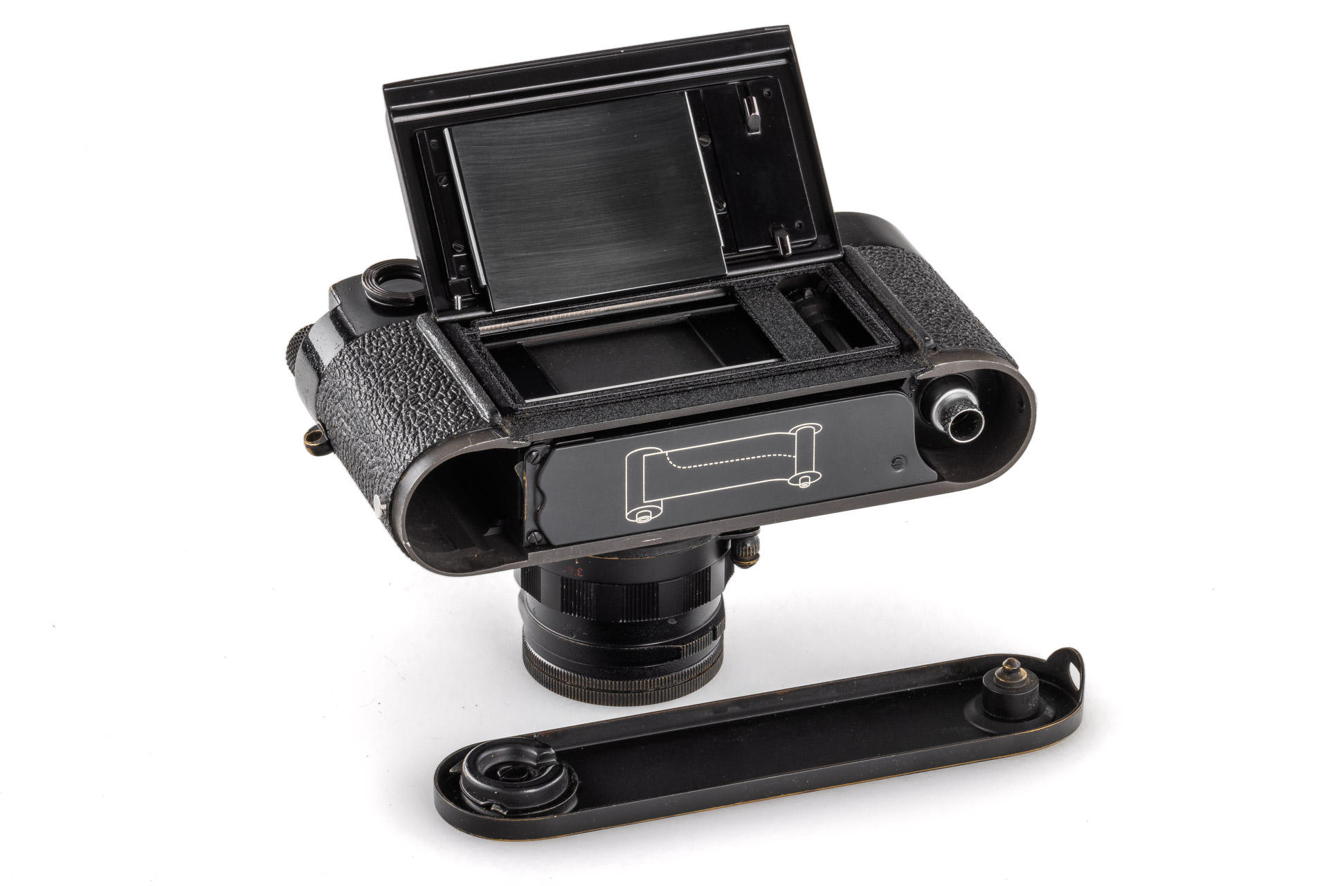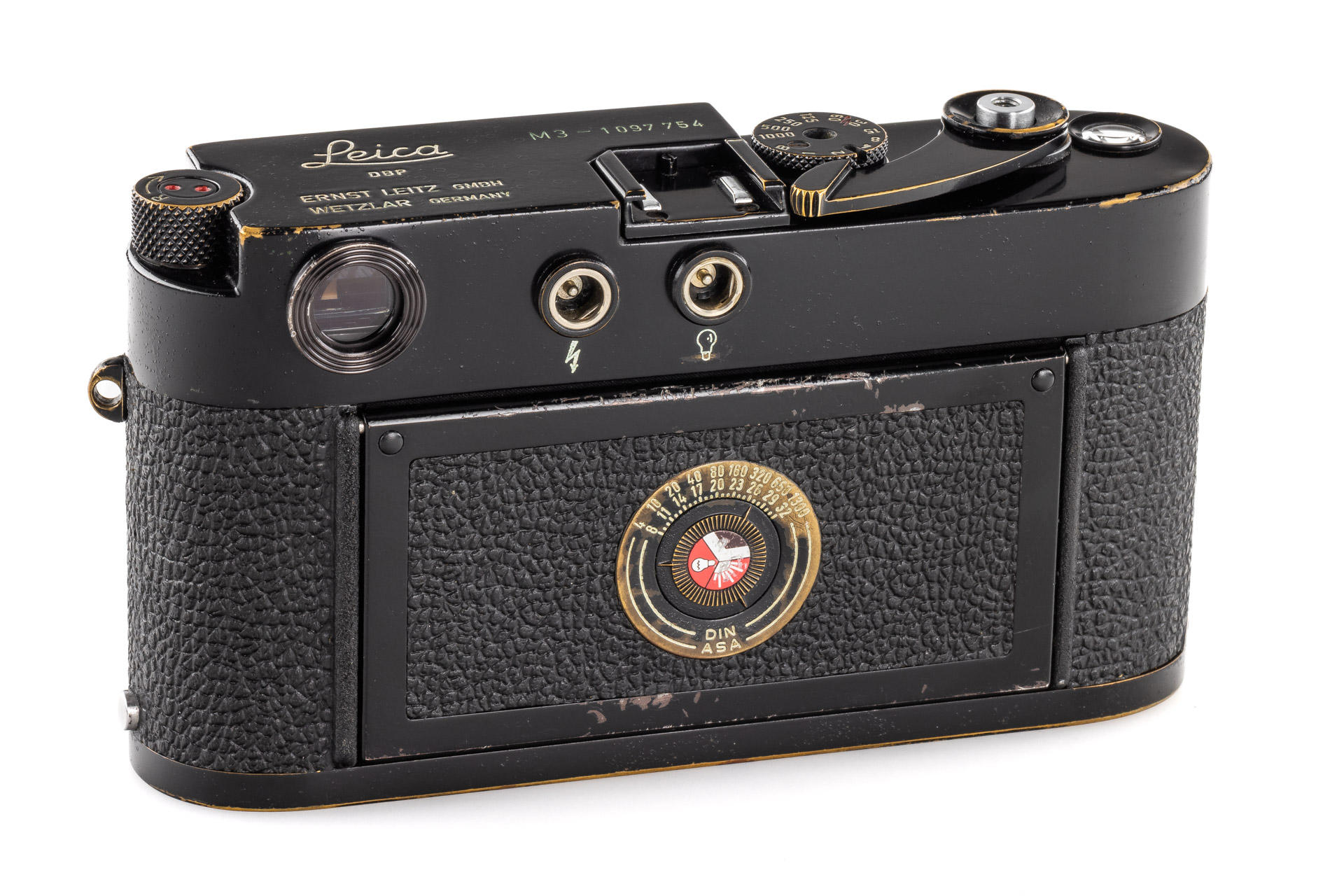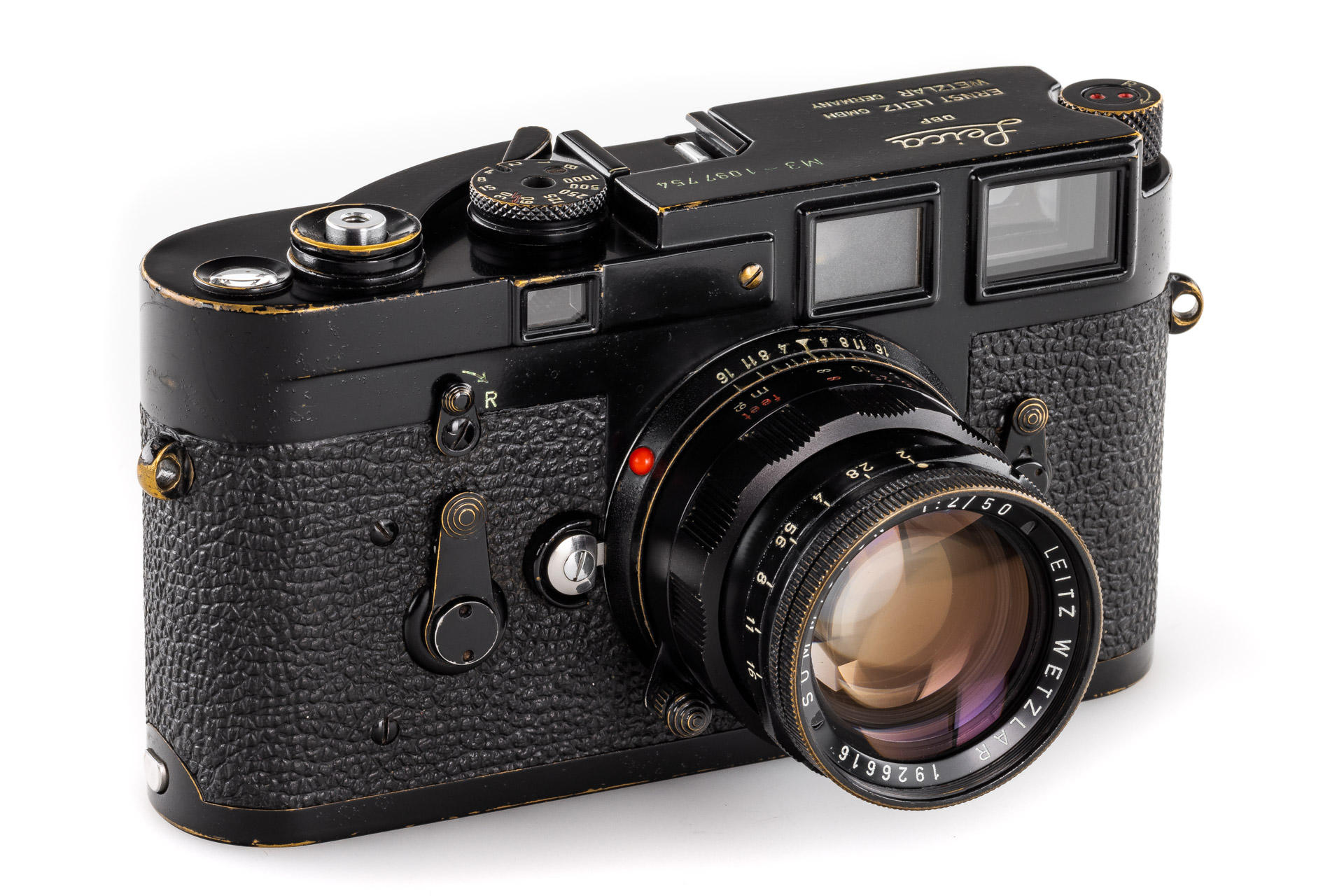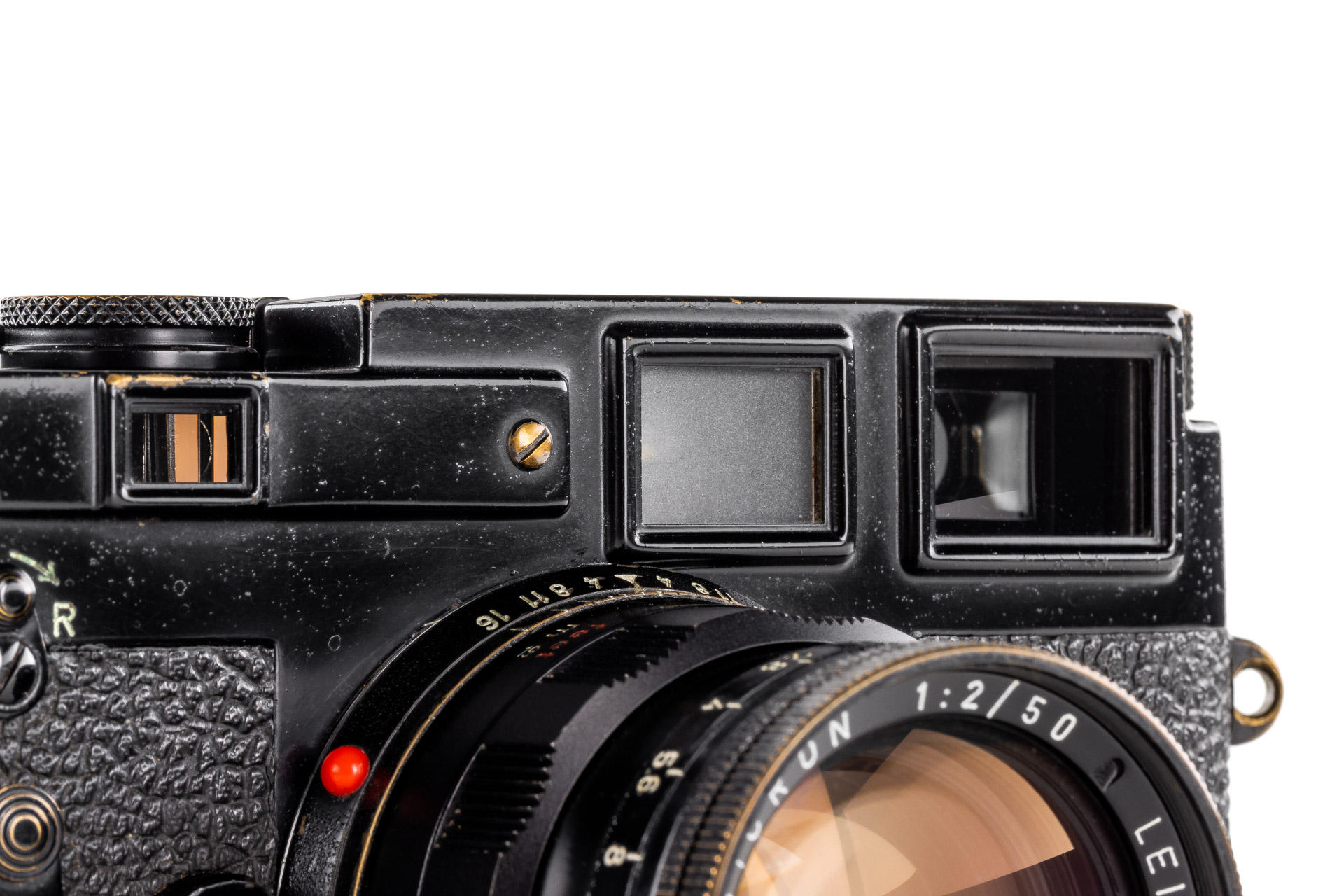 A black paint M3 from an official batch of 150 cameras delivered in 1964 (nos.1097701-1097850), in beautiful and original condition with its most desirable patina showing the typical bubbles appearing in the paint, a reference number hand-engraved on the bottom plate, with a beautiful, matching black paint Summicron 2/50mm no.1926616 issued in 1962, with very good optics including a black paint lens cap, a truly classic and sought-after combination, the camera was initially delivered to Brandt, Sweden, on 18.08.1965, the lens to Copenhagen, on 12.07.1966