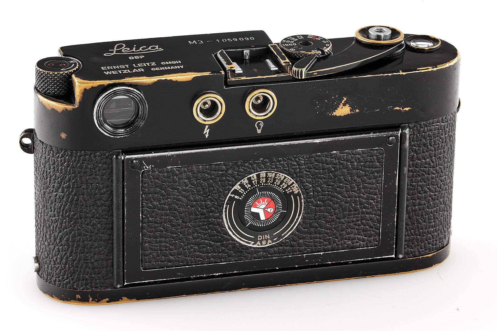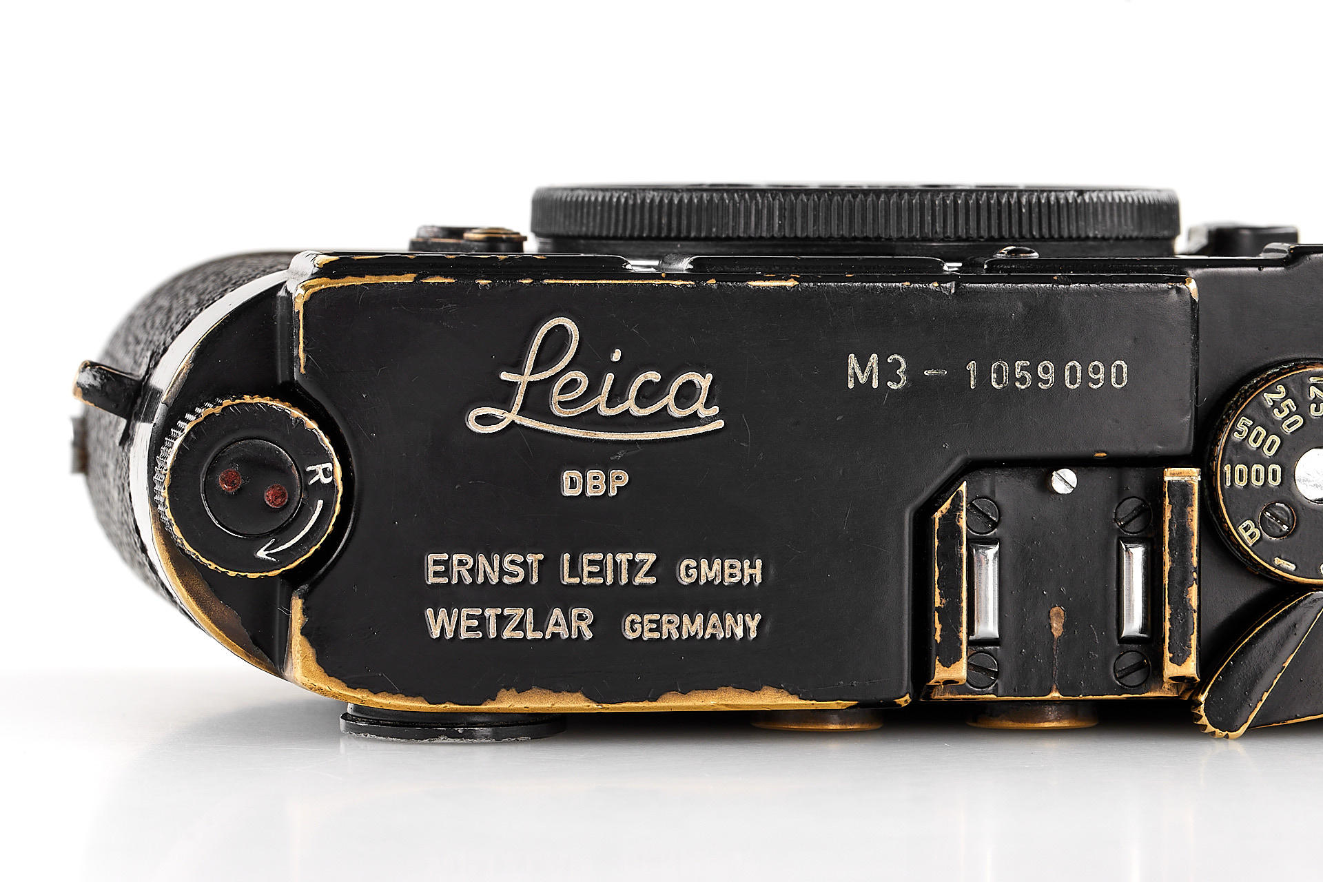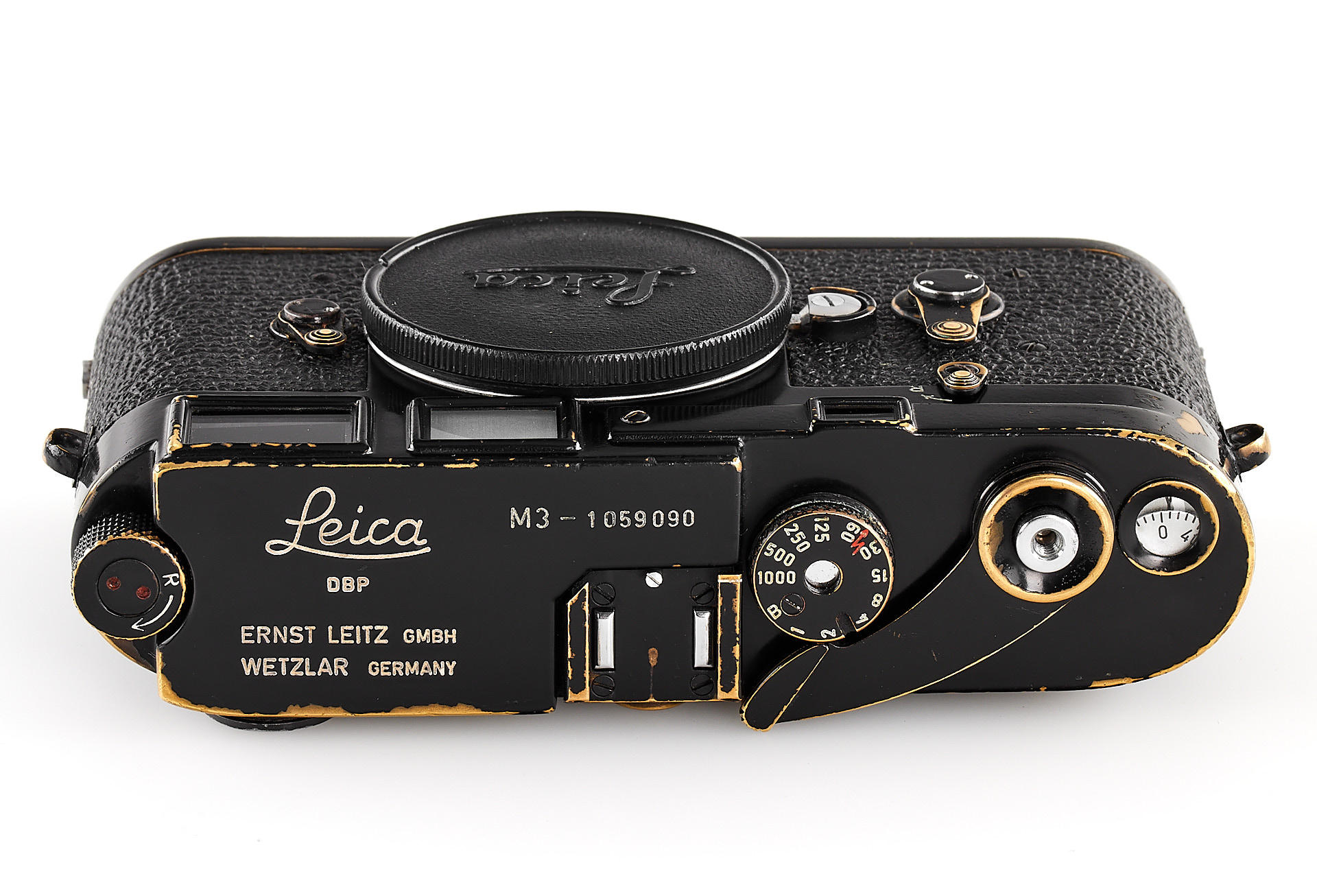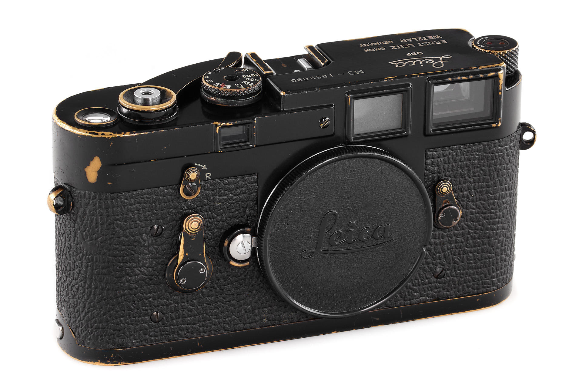 a sought-after, original black paint Leica M3, in good condition, with beautiful patina on the edges, from an official batch of 150 cameras (serial numbers 1059850-1059999), with body cap