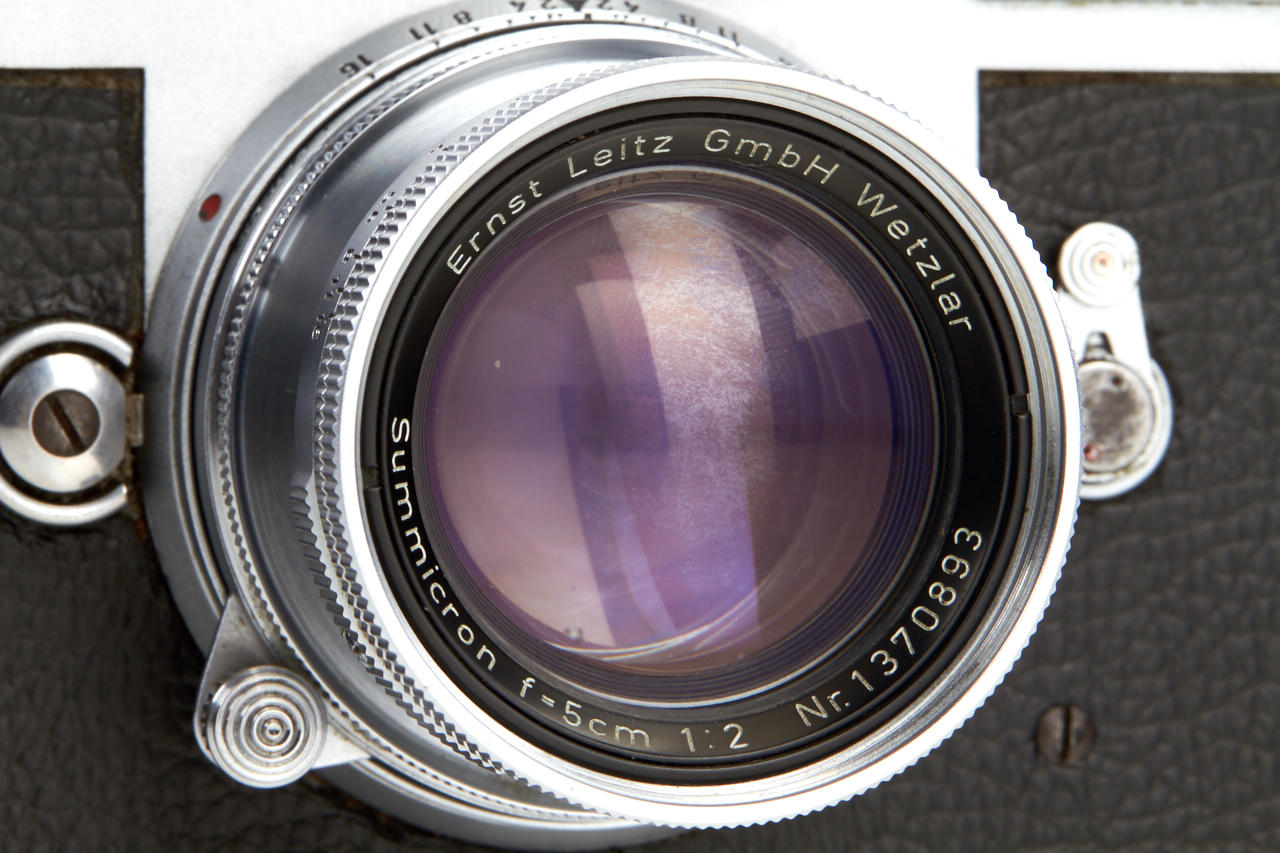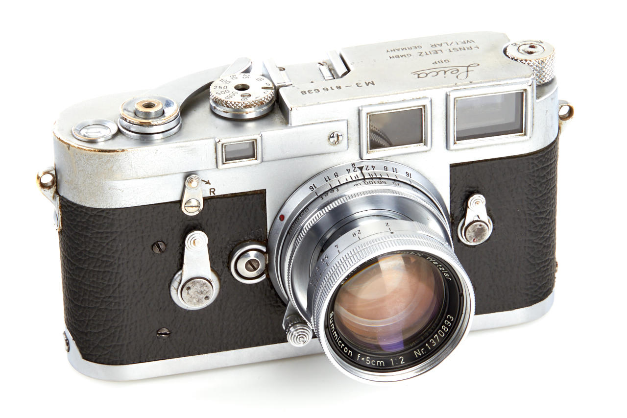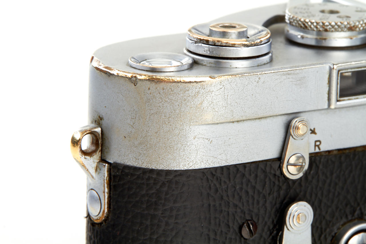 The camera from the estate of the famous New Zealand Magnum photographer Brian Brake, engraved by Leitz on rear of top plate 'Brian Brake Magnum', with matching Summicron 2/5cm no.1370893, cap, case - the book 'BRIAN BRAKE LENS ON THE WORLD' shows Brian Brake with his Leica M3 in China 1957 photographed by Marc Riboud - WestLicht sold Brian Brake's M3 no.853308 in the 30th auction - the offered camera has the patina of professional use over many years, the vulcanite was replaced