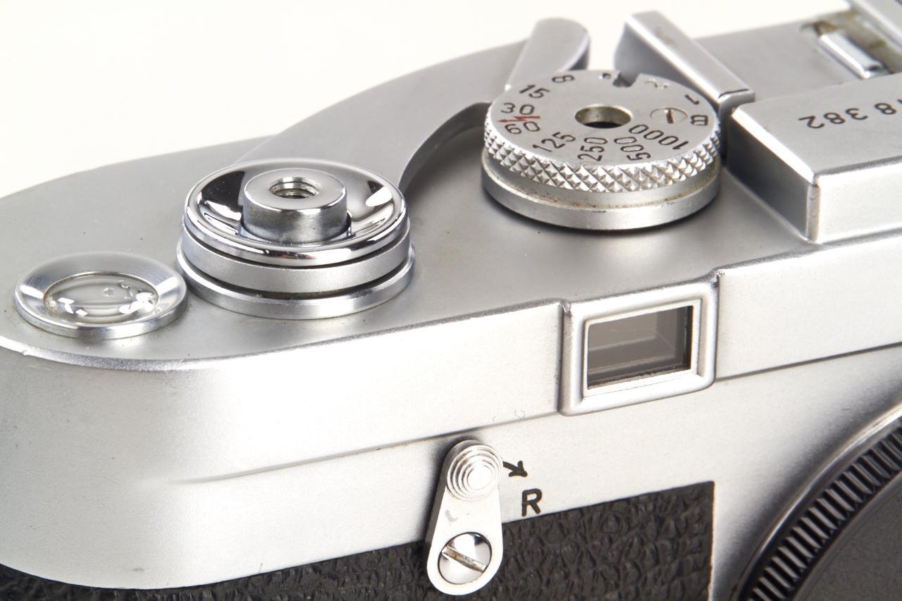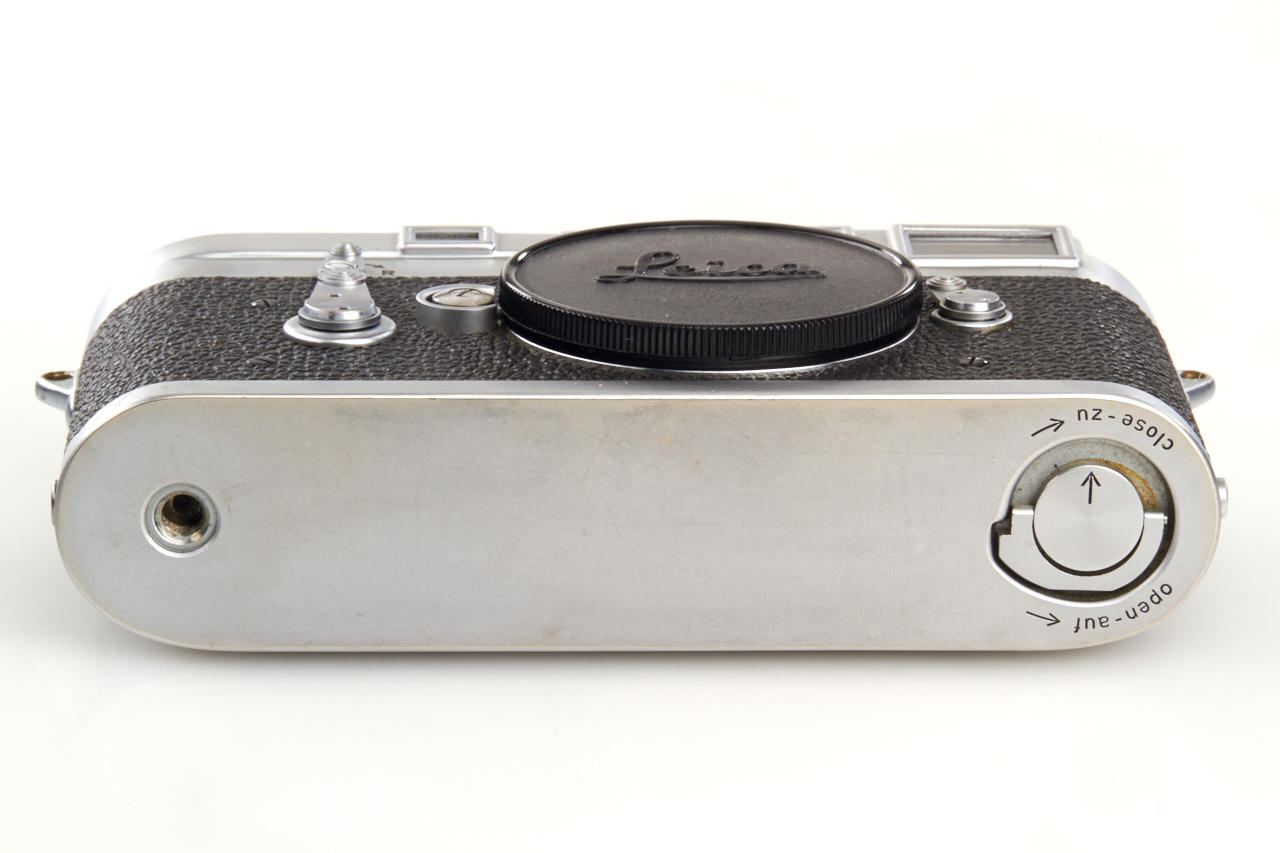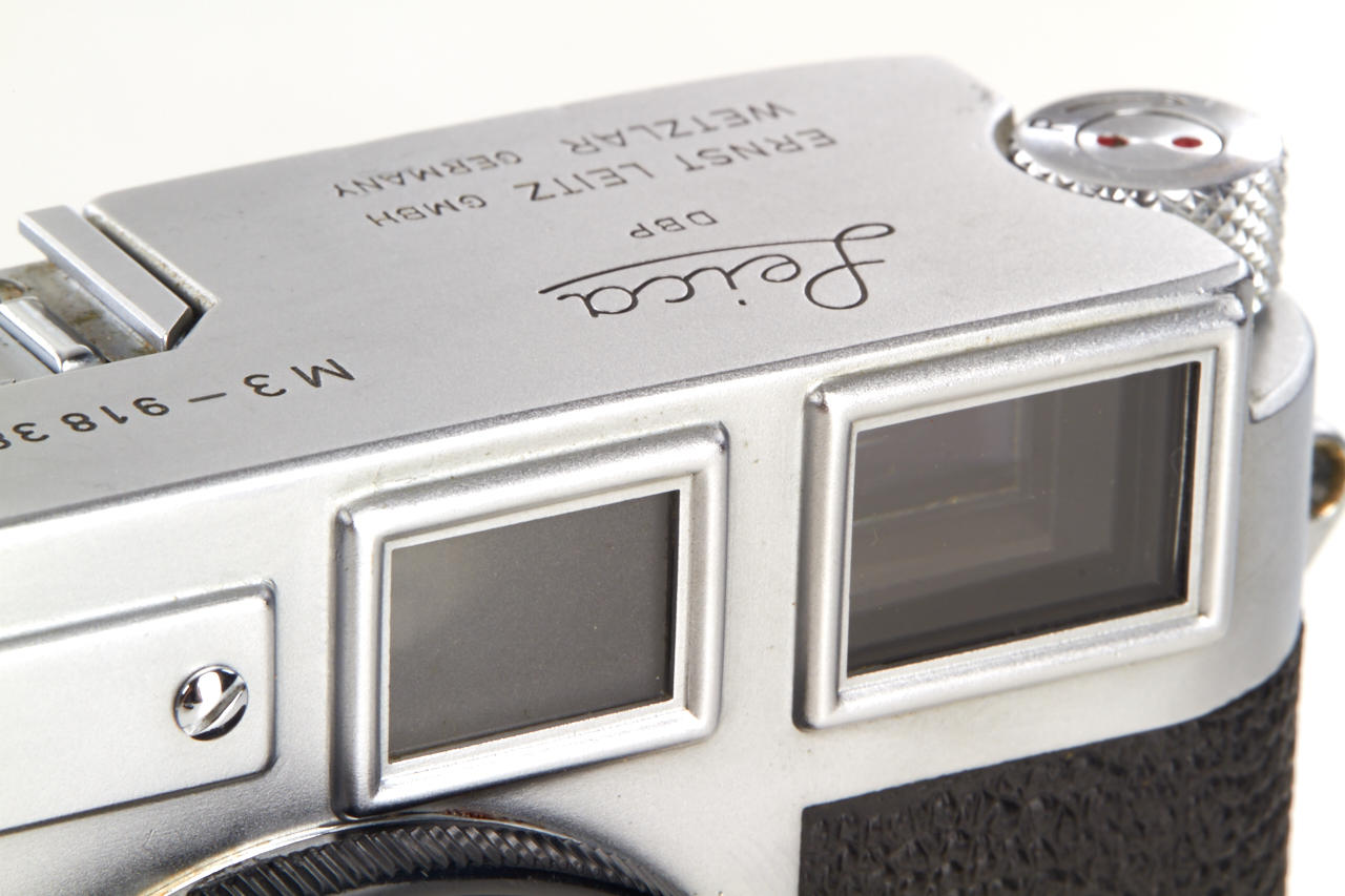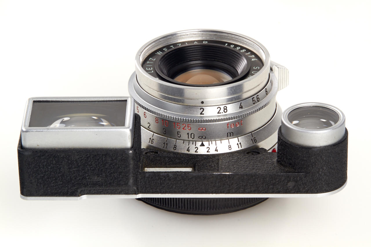 First owners outfit including fine double stroke body in perfect working order with red/gold inspections card (few little marks, condition B+), mint 8-element M3 Summicron 2/35mm no.1998174 with perfect optics (original maker's box, sales invoice from 1964, both caps), near mint Elmarit 2.8/90mm no.1693365 (both caps)