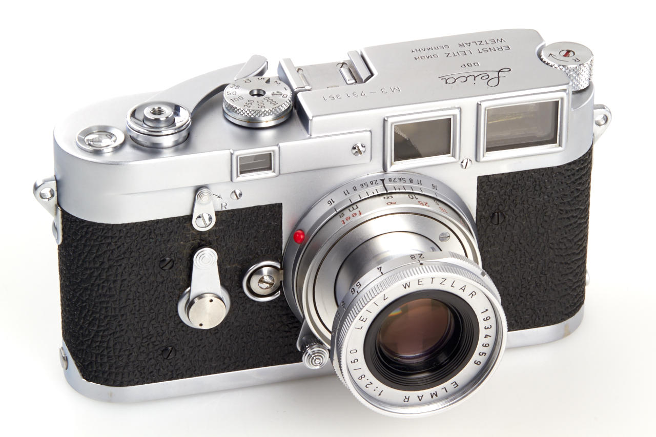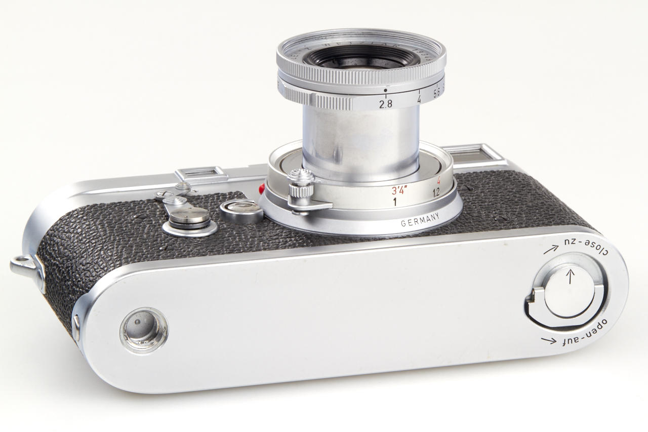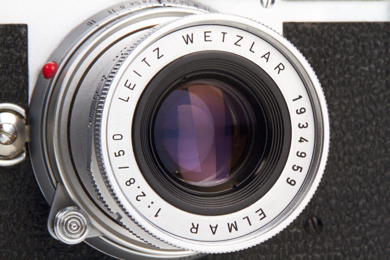 in very good condition and good working order (viewfinder with slight separation), with near mint Elmar 2.8/50mm no.1934959, UVa filter, front cap and everready case