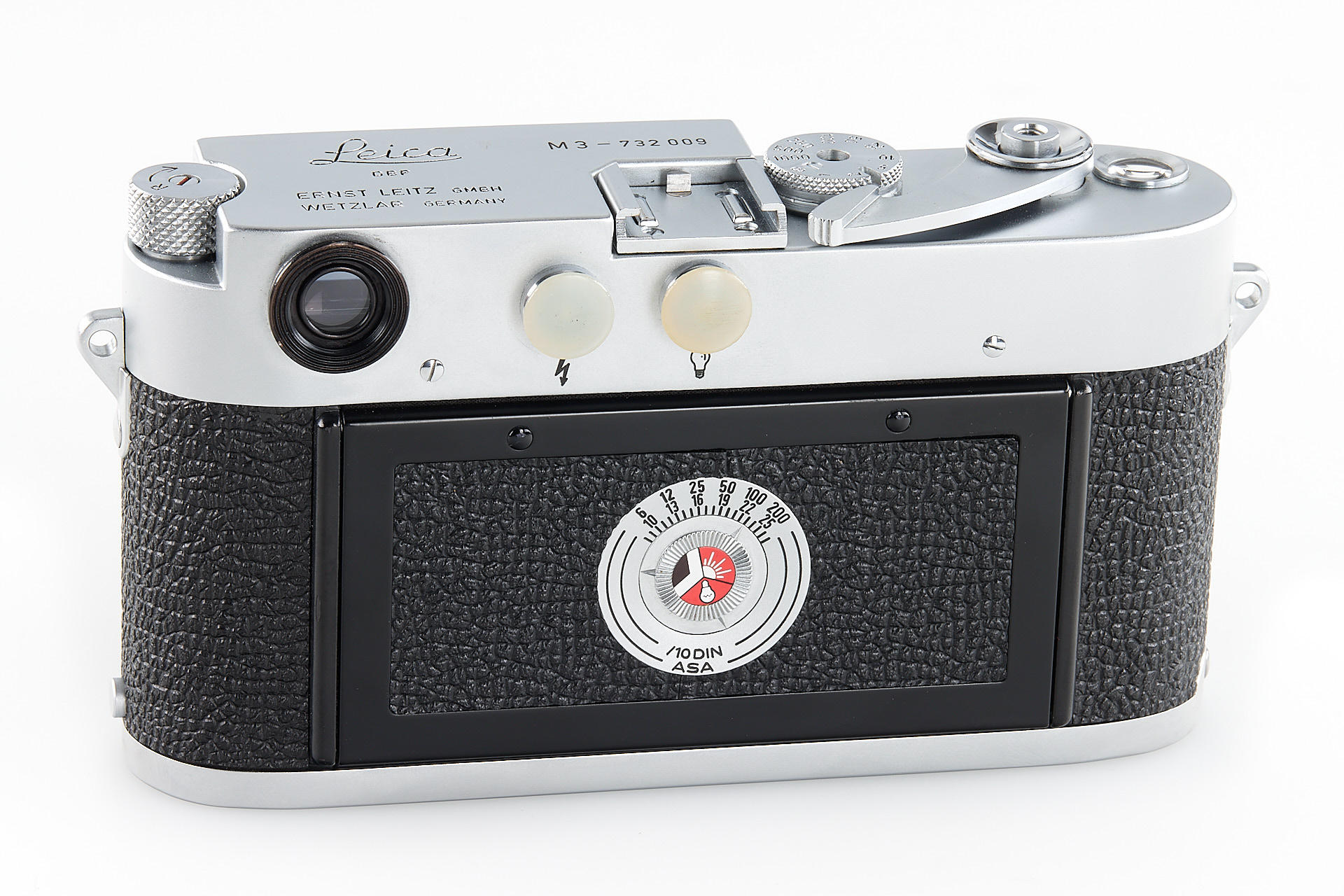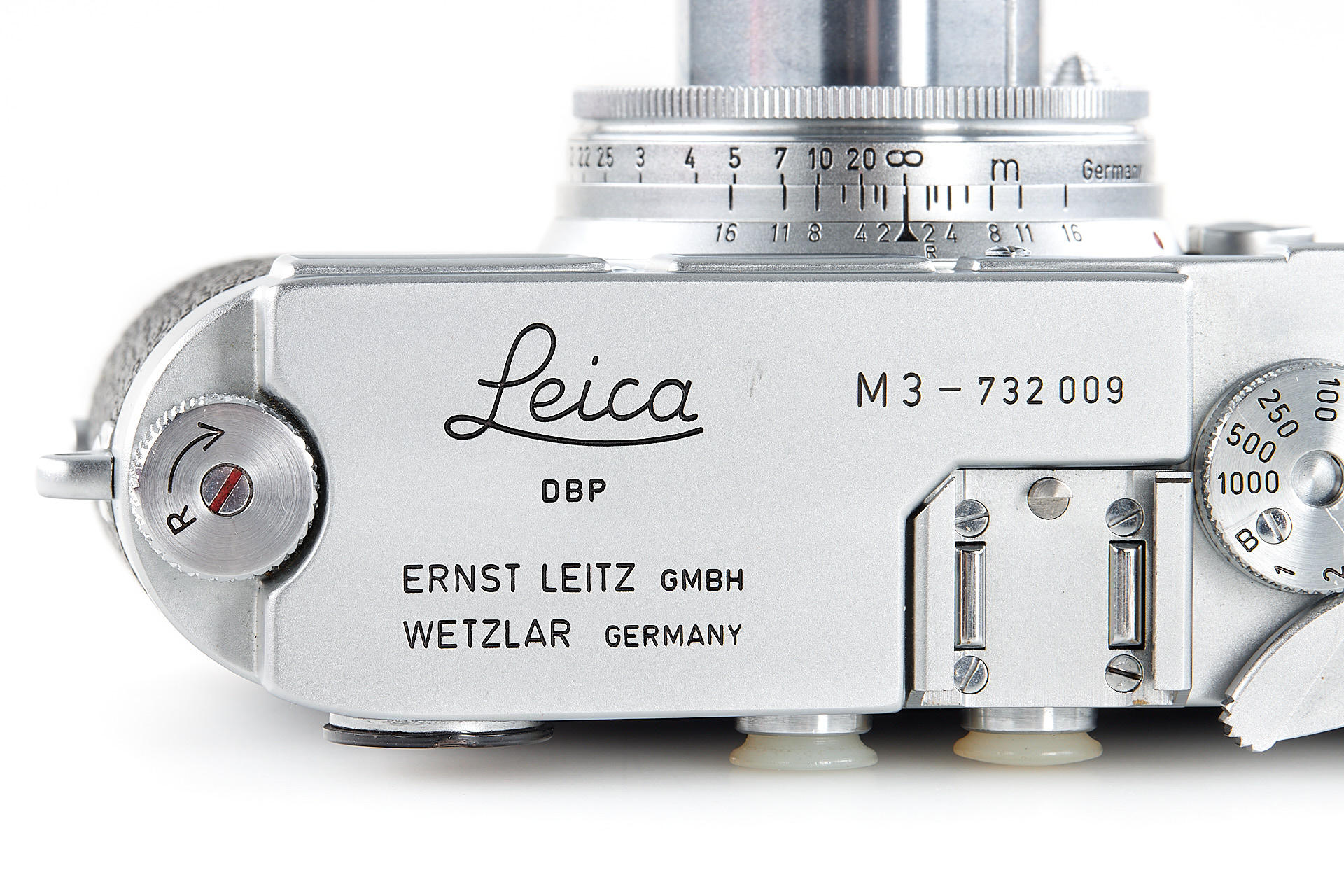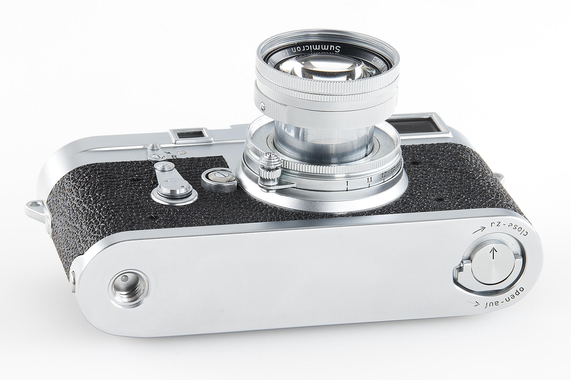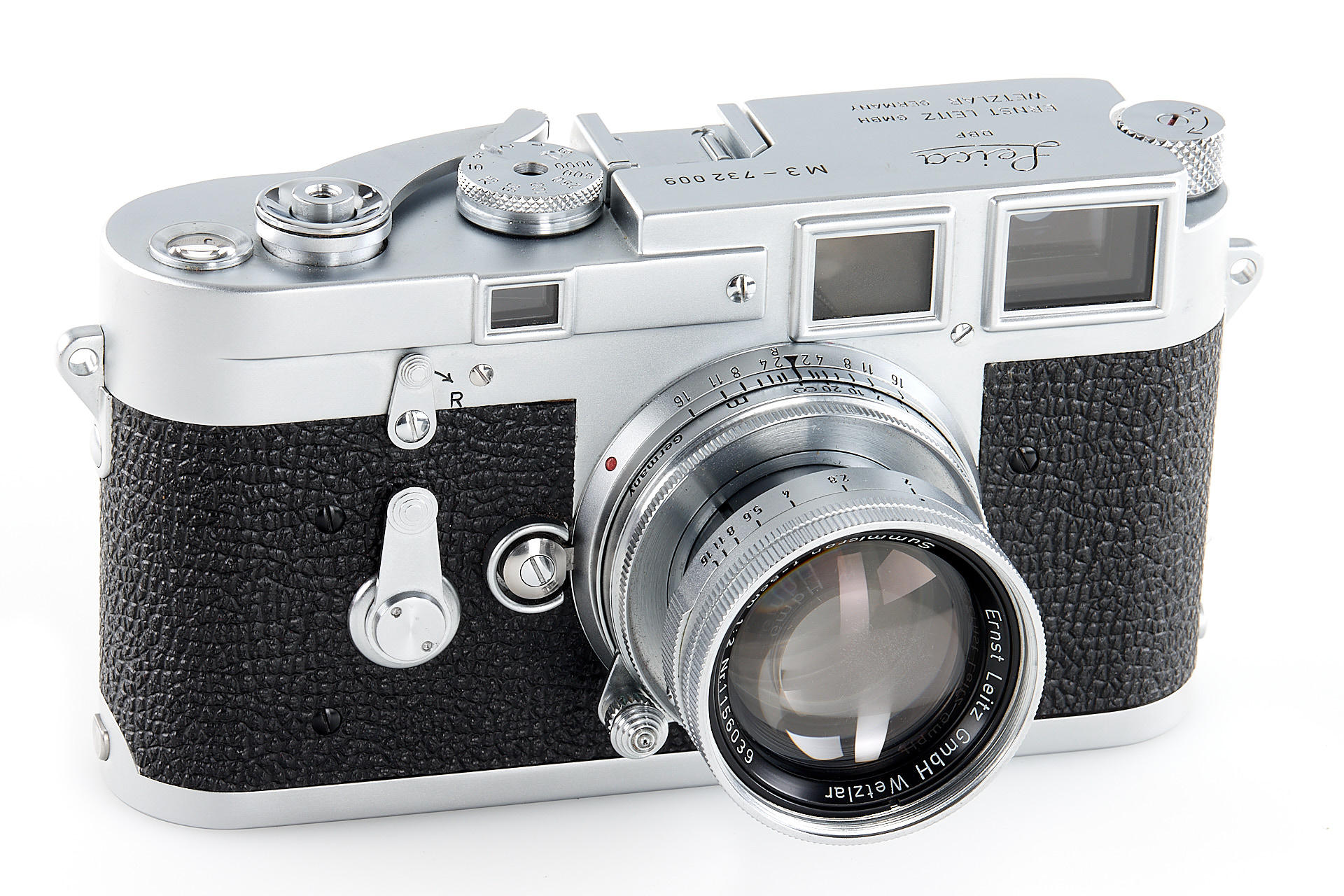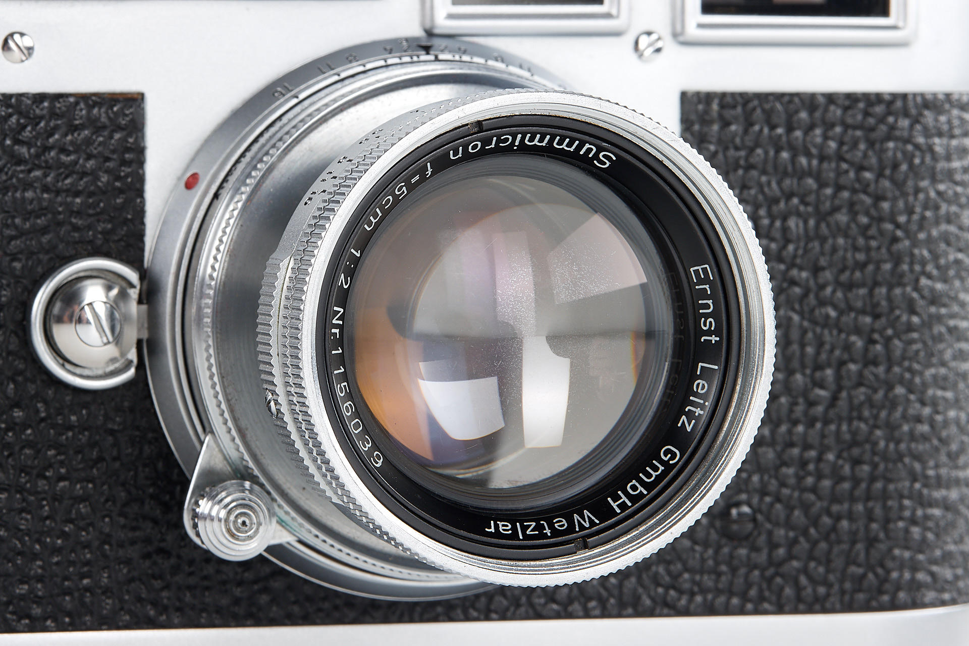 an early M3 body in beautiful, almost mint condition and very good working order, with matching early collapsible Summicron 2/5cm no.1156039 (near mint, slight cleaning marks on the front element, front cap), original control tag with matching number, red maker's box with matching camera number, leather case, Italian instructions and brochure from 1954, very uncommon certificate with matching serial number of the camera and the lens