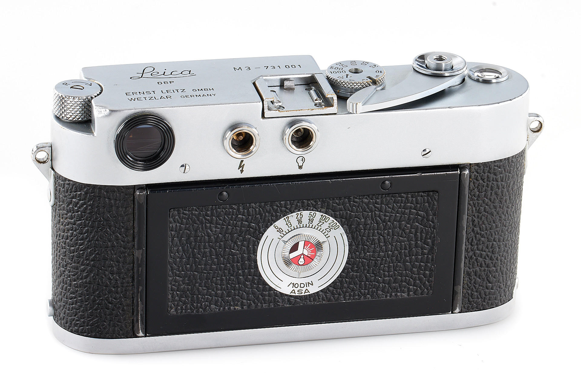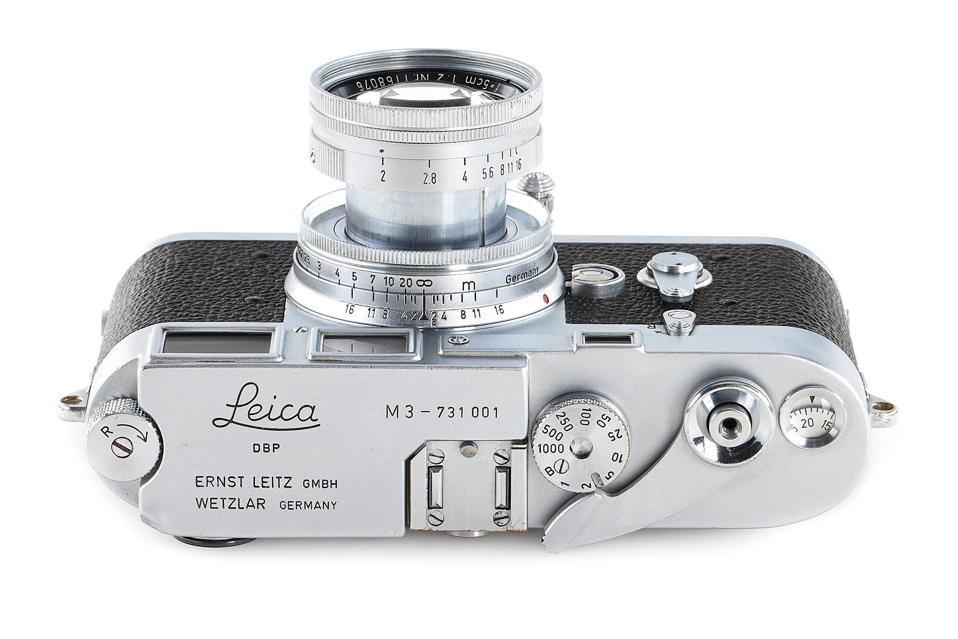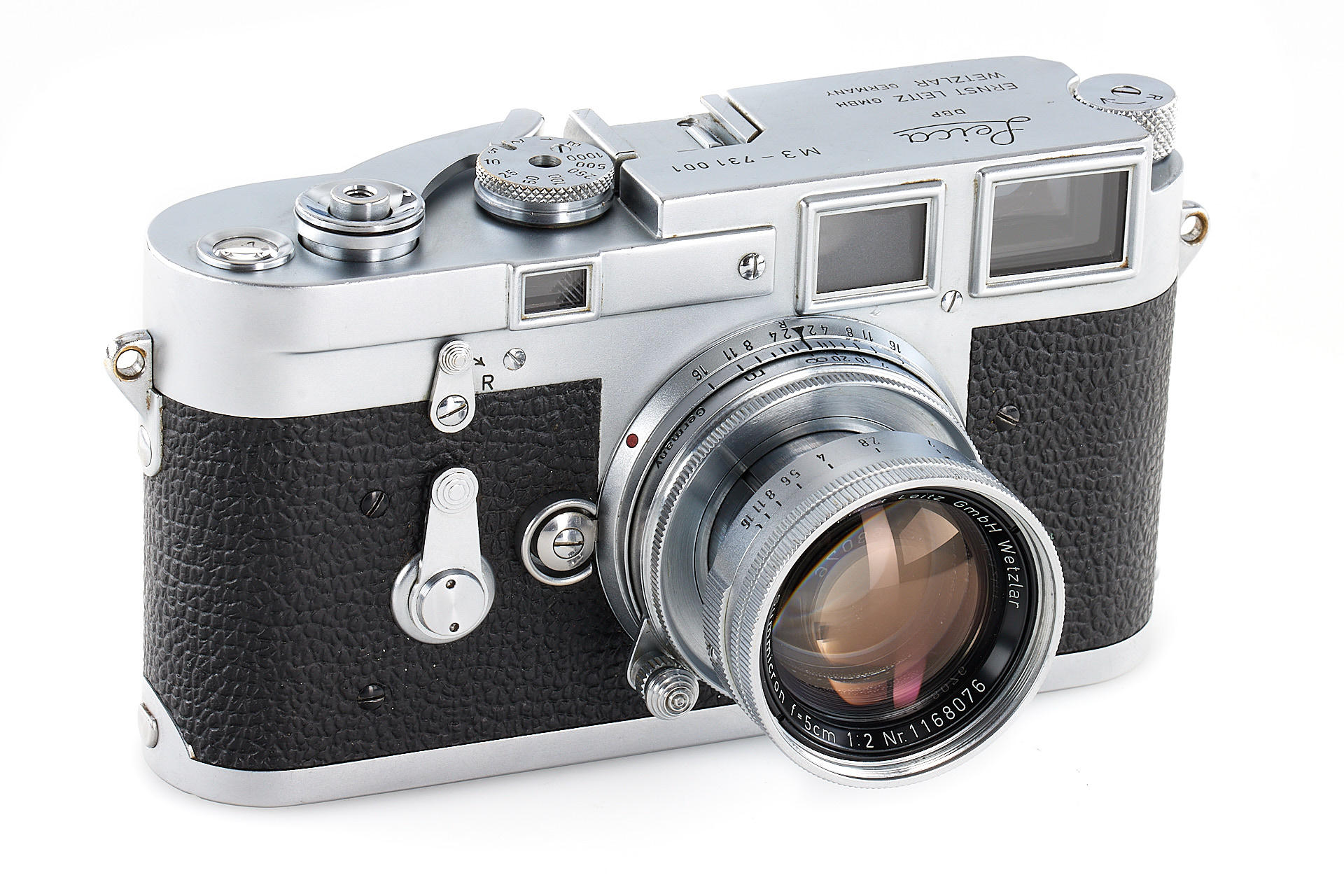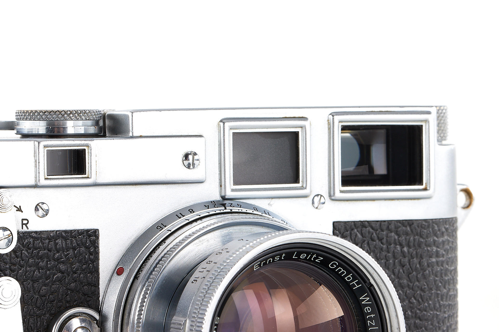 quite early body with all original features, in very good condition and working order, rangefinder with good contrast, with Summicron 2/5cm no.1168076 (1954) with good lenses only showing some light haze and very few cleaning marks, front lens cap, hood IROOA, Leicameter MC no.60545 (not reacting) German instructions, ever ready case and matching red maker's box