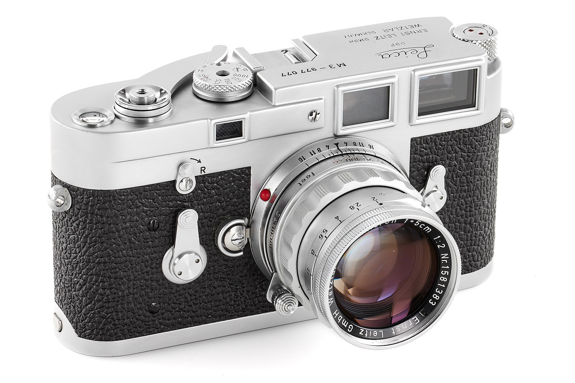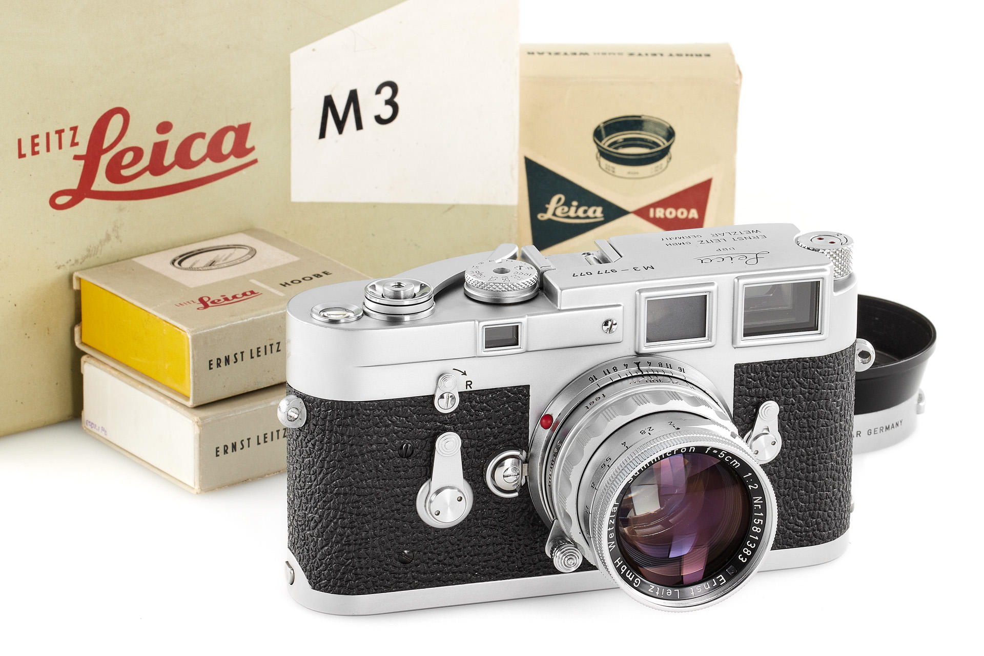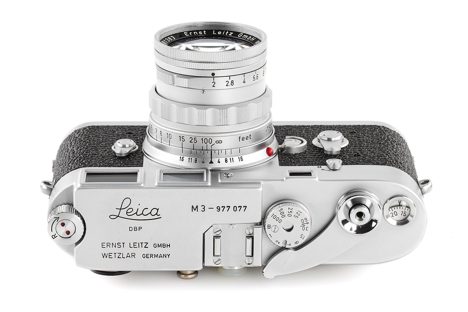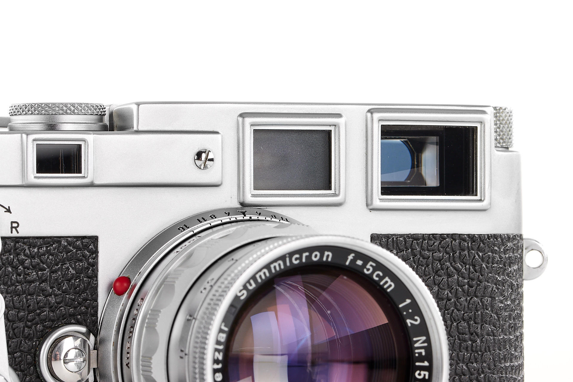 Body in near mint and original condition, in good working order, with matching Summicron rigid no.1581383 with almost perfect lenses (front lens cap), with IROOA hood, UV and yellow filters (all with maker's boxes), ever ready case and original maker's box with both body and lens matching serial numbers