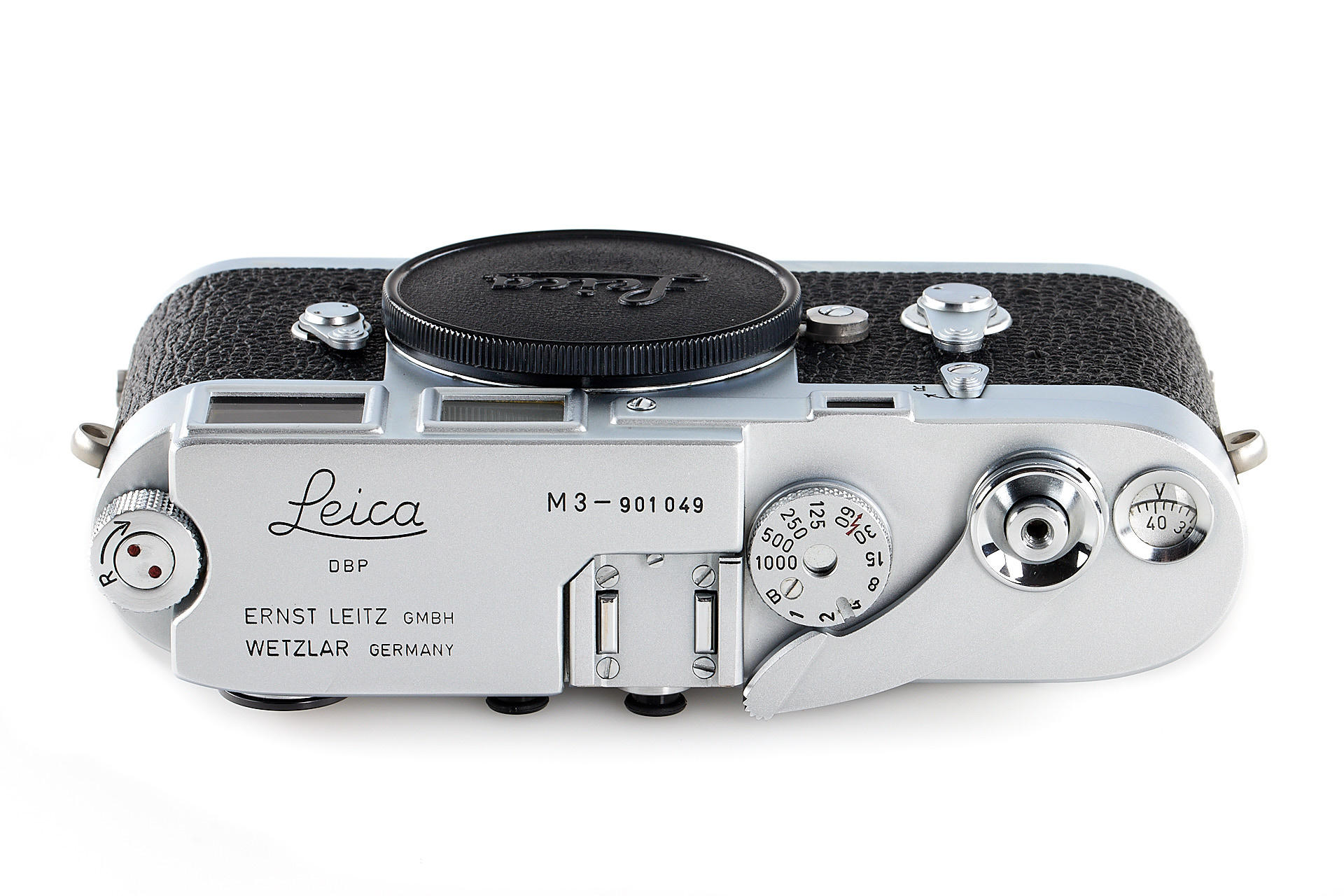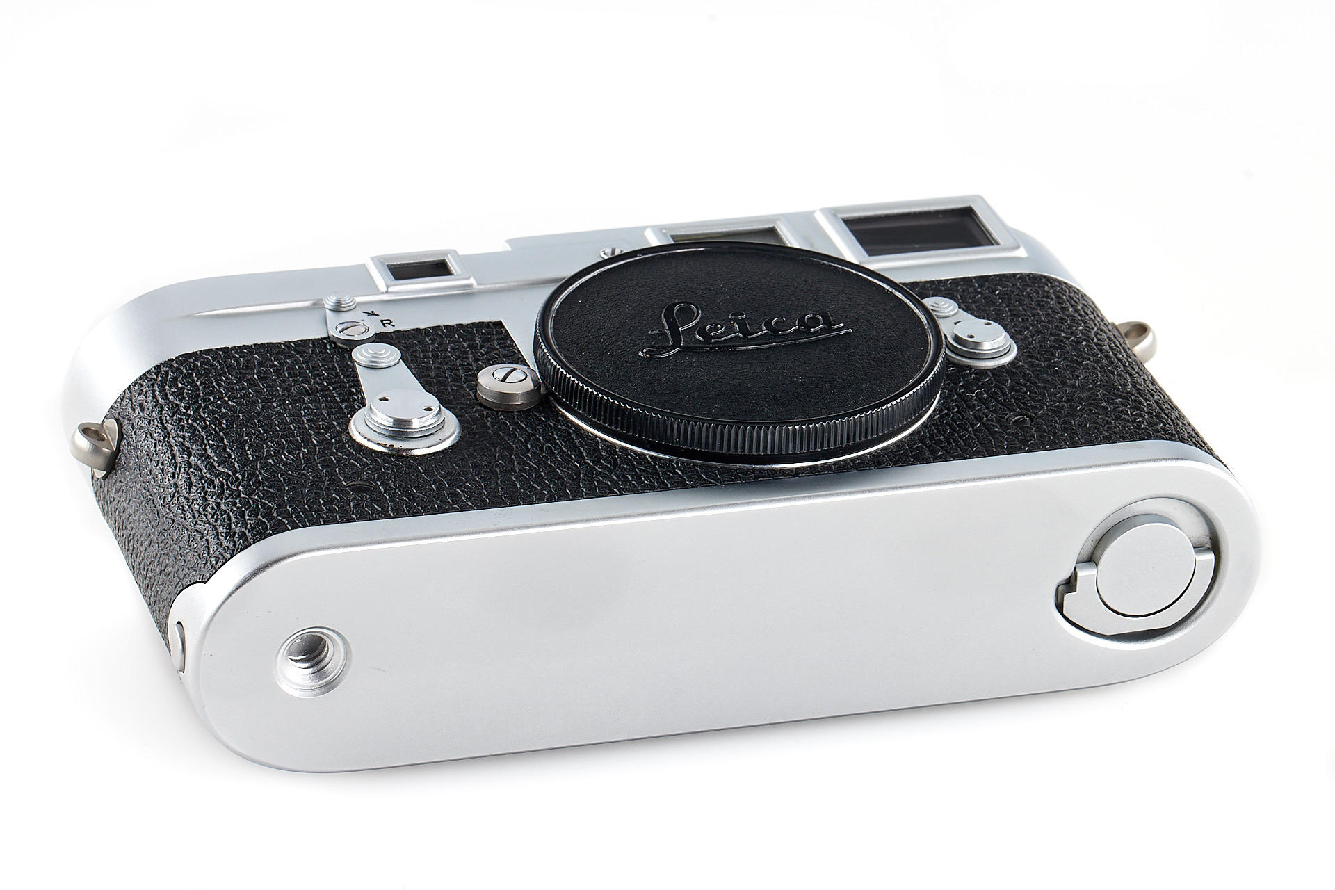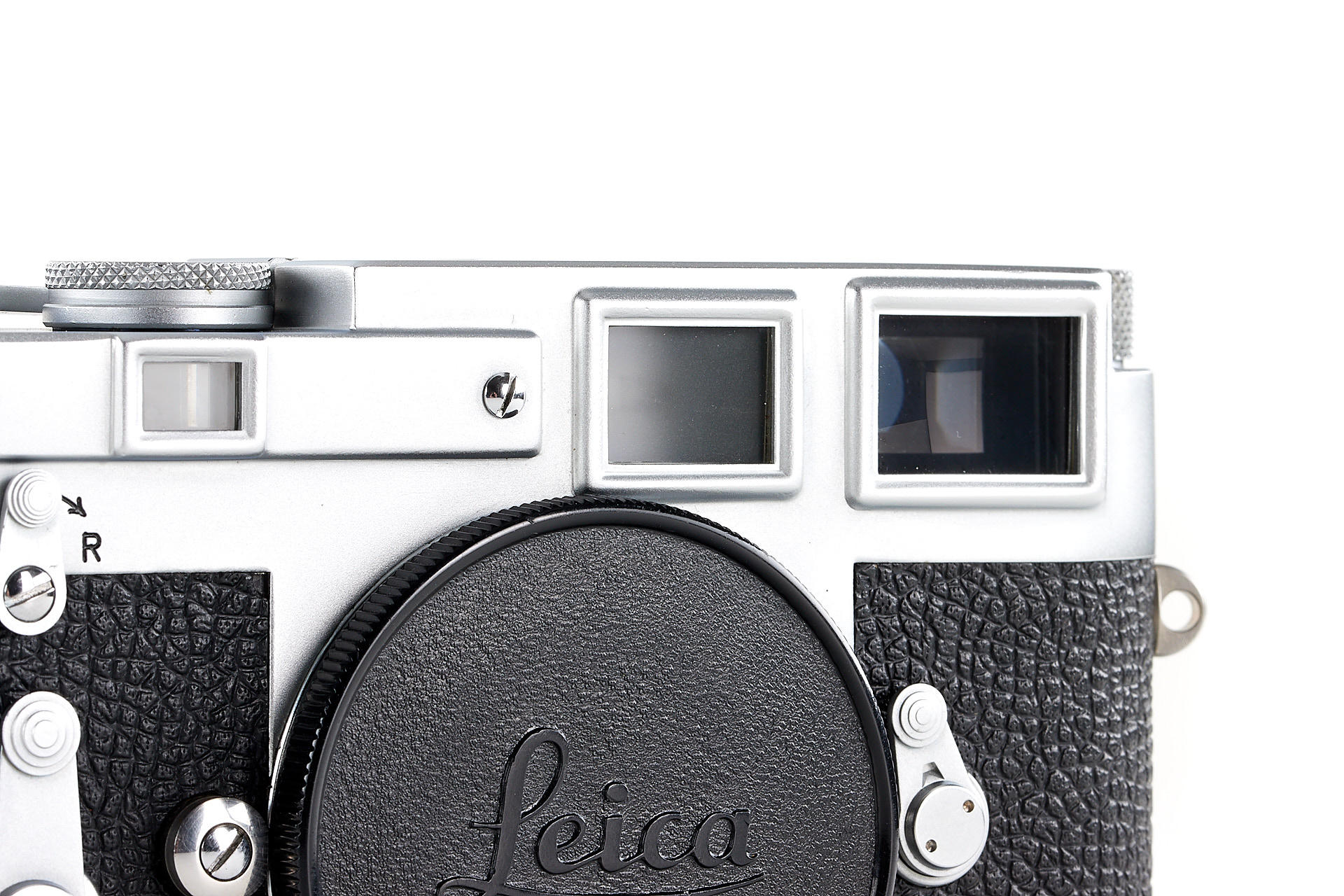 interesting body restored by Leica in the 1980s with some M4 parts, in mint condition and working order, rangefinder showing some separation but still with good contrast, with body cap and maker's box (serial number not matching)