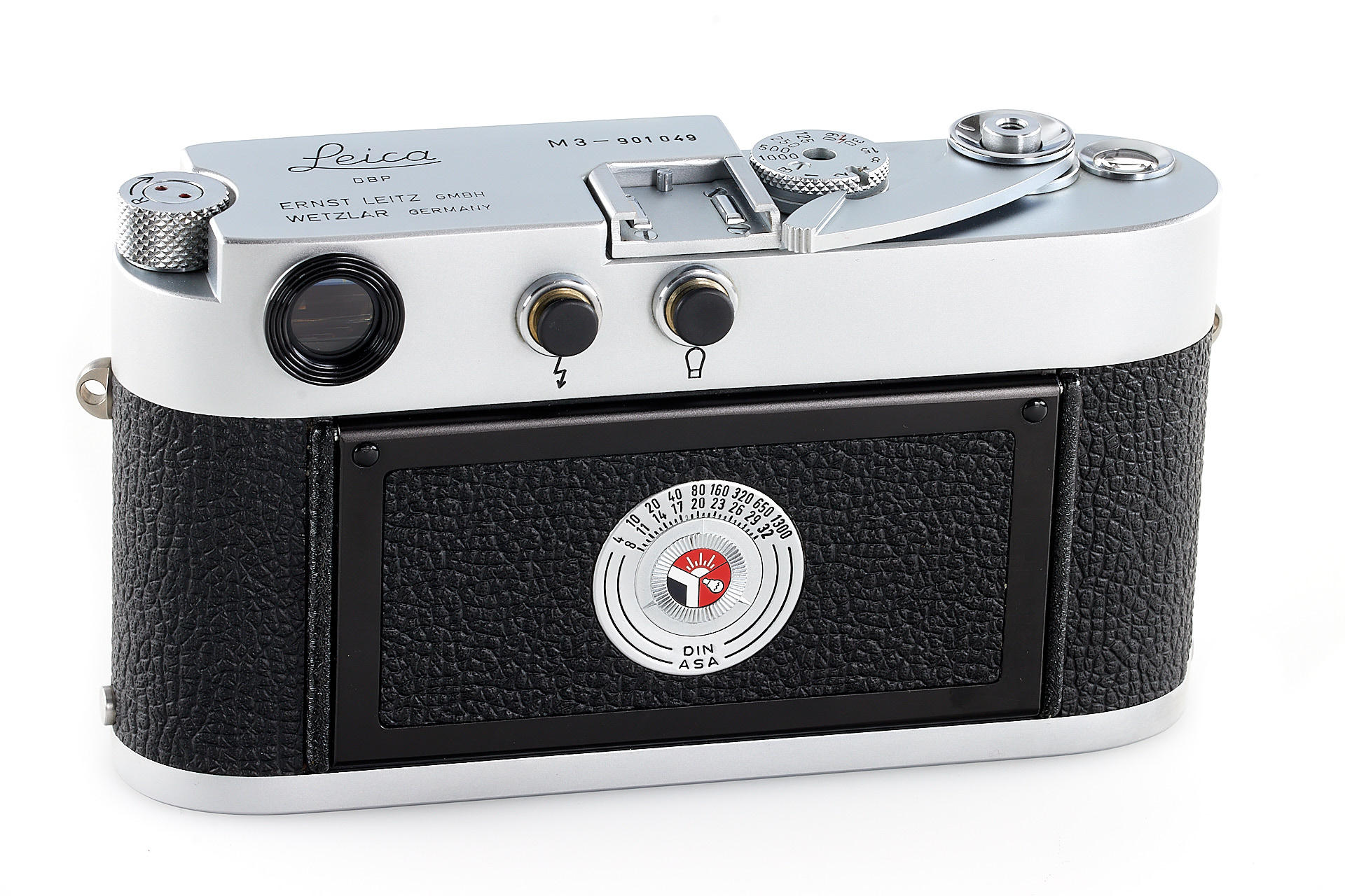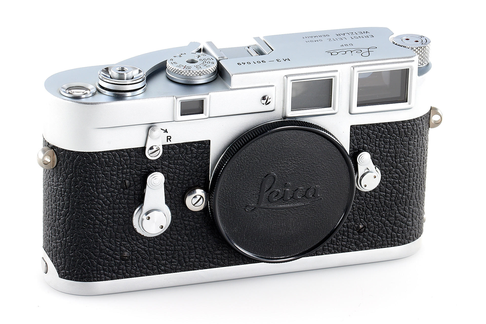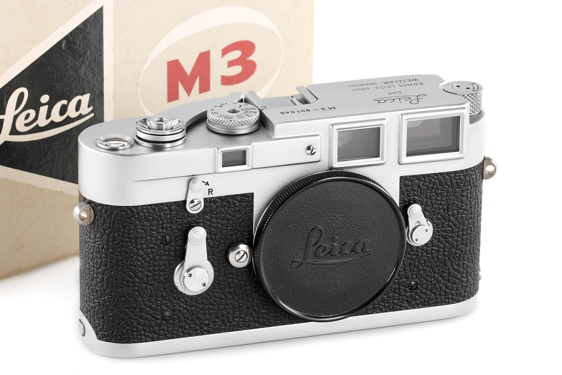 interesting body restored by Leica in the 1980s with some M4 parts, in mint condition and working order, rangefinder showing some separation but still with good contrast, with body cap and maker's box (serial number not matching)