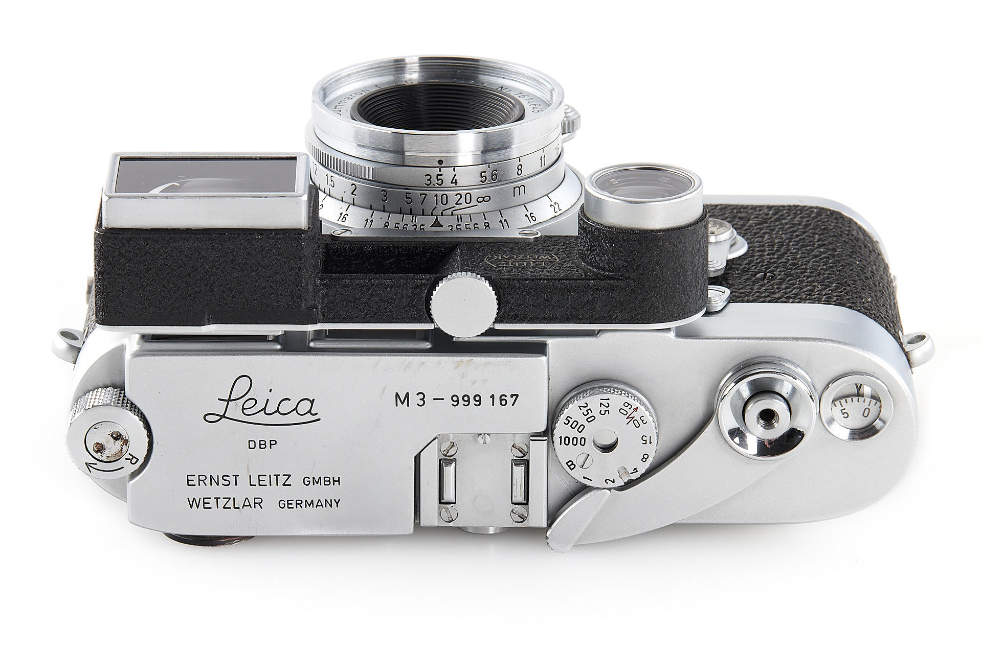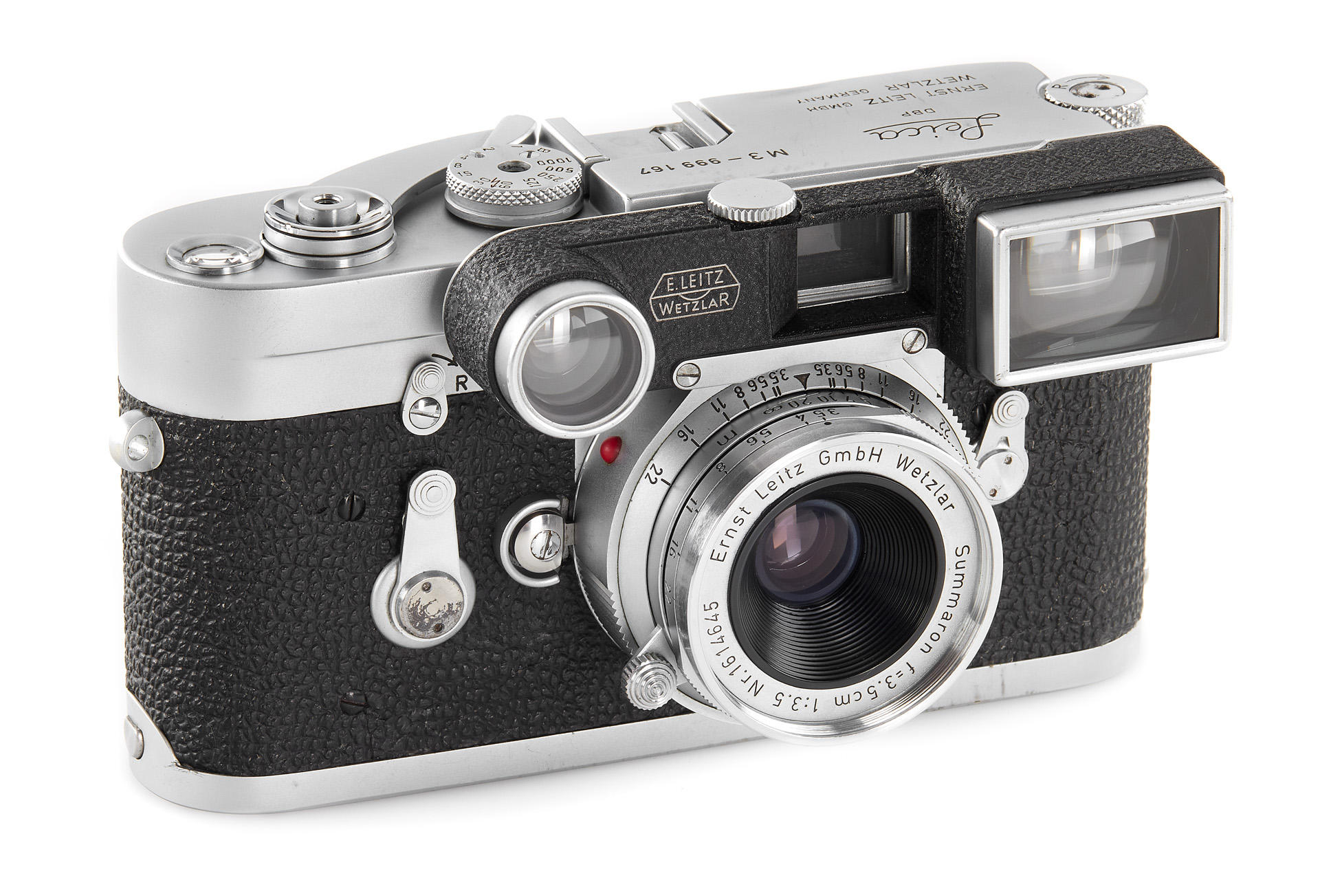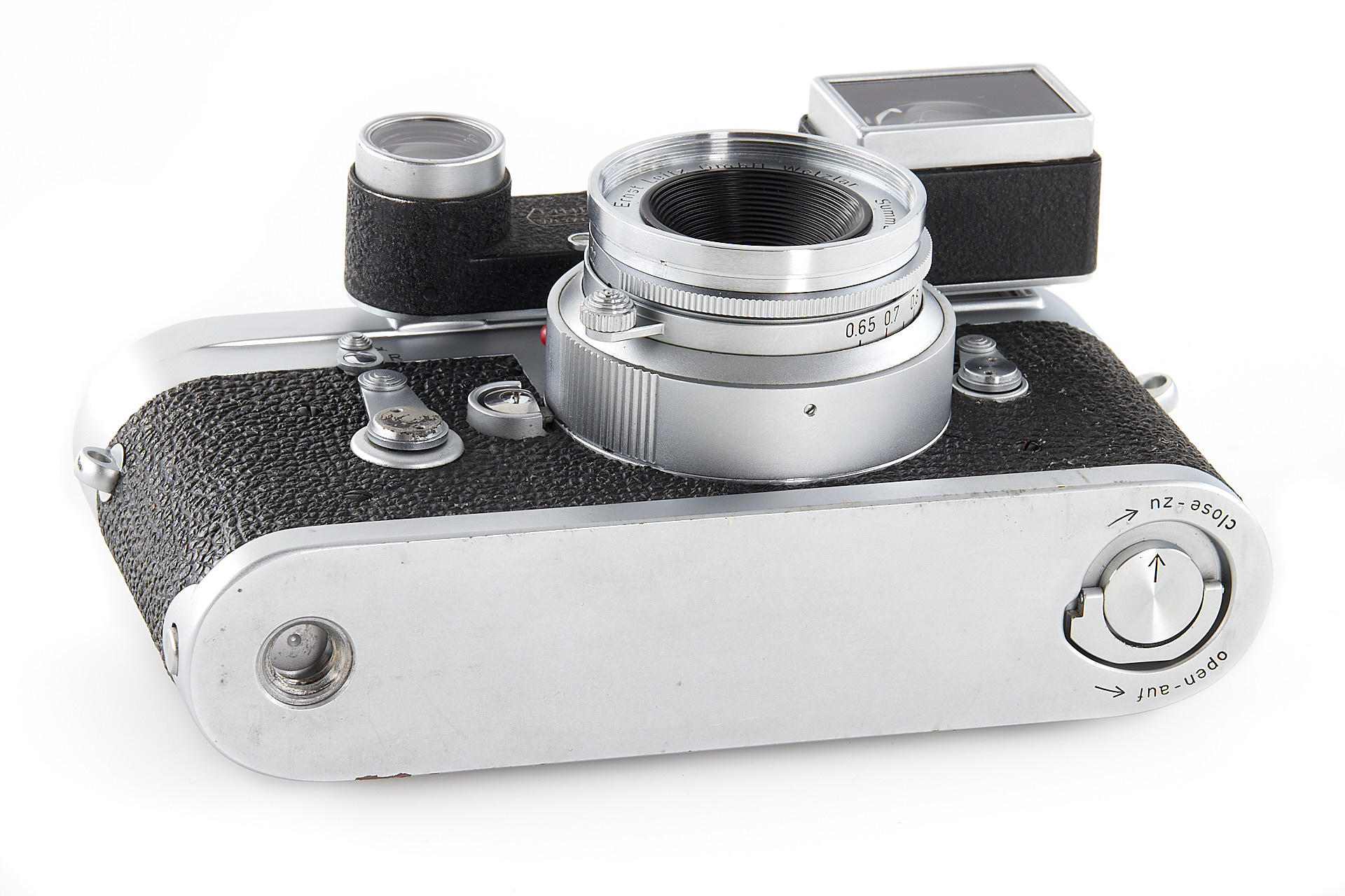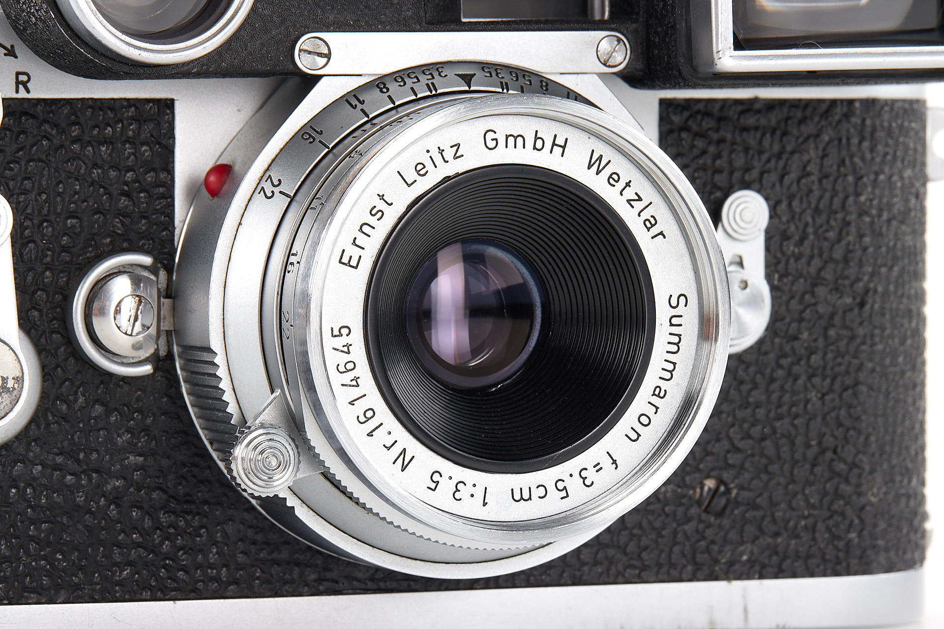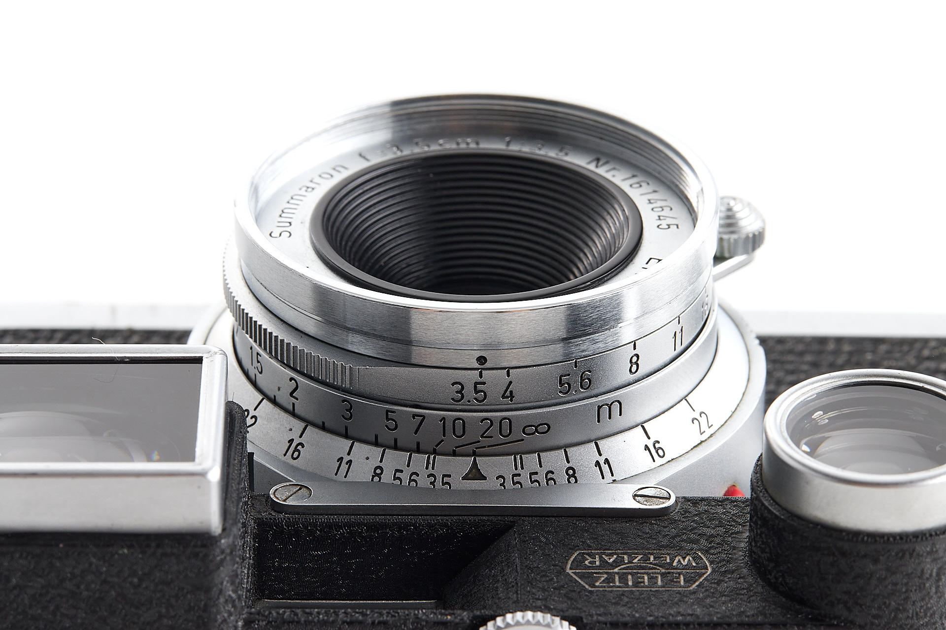 Single-stroke body in good cosmetic condition, rangefinder with light contrast but still usable, the shutter needs maintenance, with Summaron 3.5/3.5cm M3 no.1614645 showing some haze