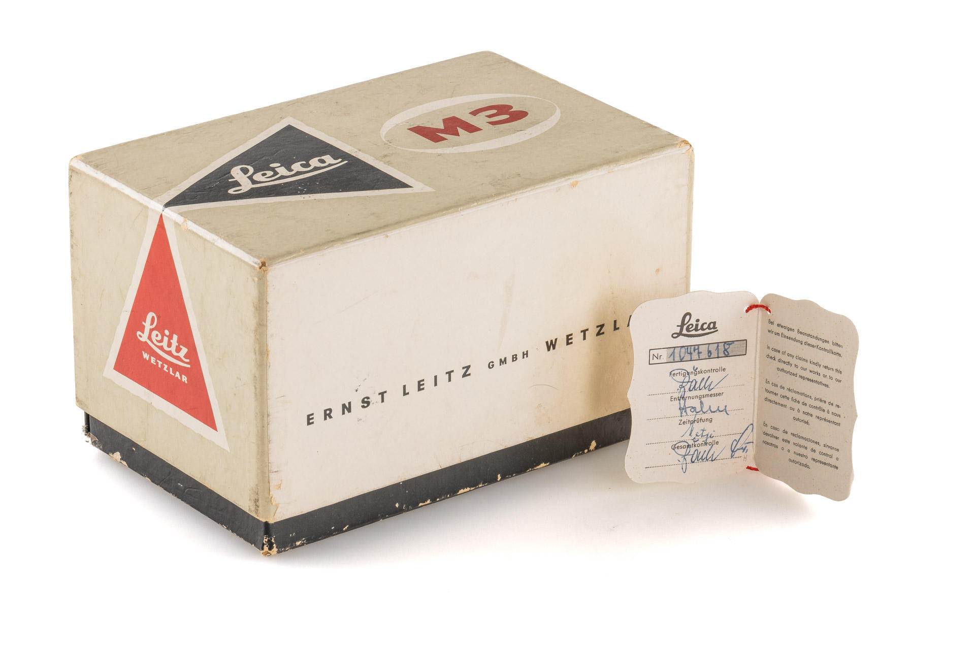 M3 body in beautiful, near mint condition (only minimal signs of use), and in perfect working order, good contrast in the rangefinder, with body cap and including maker's box and control tag with matching serial numbers